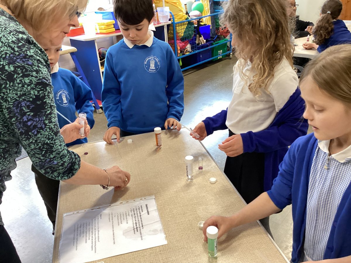 After talking to the children about his job he demonstrated several scientific experiments. The children explored:
