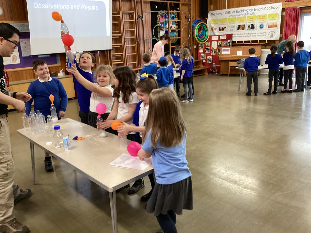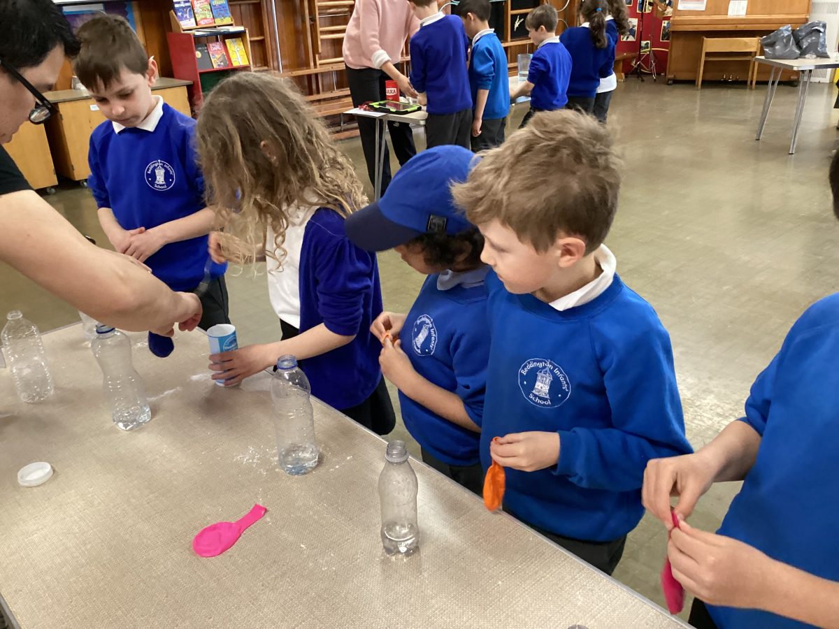 This exciting day of science investigations built on the children’s experiences of being scientists as part of their Muck Mess and Mixtures topic and learning about scientists as part of British Science Week.