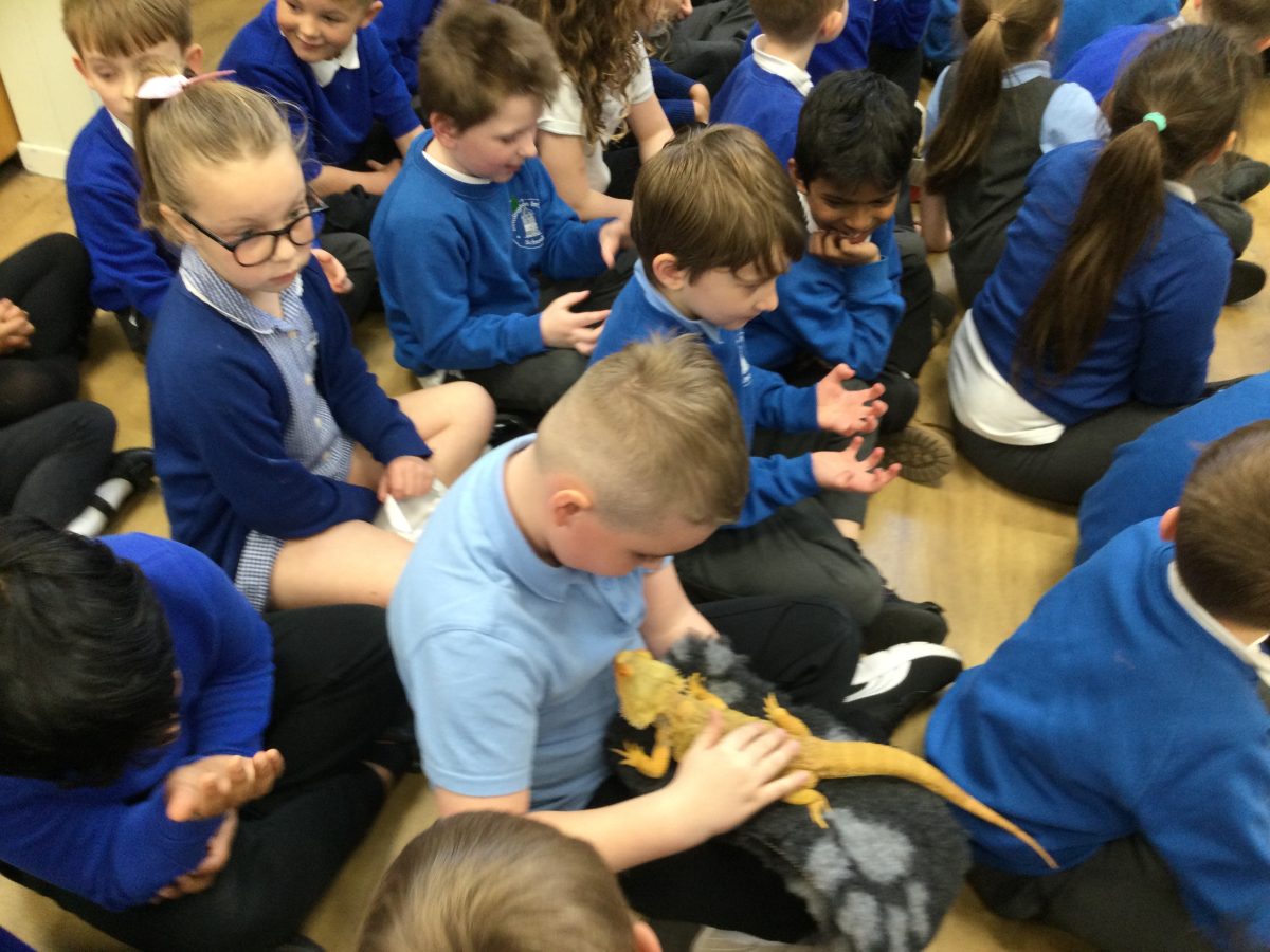 The children in Year 1 and Year 2 were excited to meet iguanas, snakes, bearded dragons, a tortoise, a frog and a cockerel all who are cared for by The Dragon Shelter. Anna explained what each animal needs to stay healthy and happy. Then everybody who wanted to, had a chance to hold, touch and make friends with all the amazing animals she had brought with her. Some children who were reluctant initially changed their minds throughout the session. Children and adults really enjoyed the visit! Thank you animals, Anna, Barry and June.