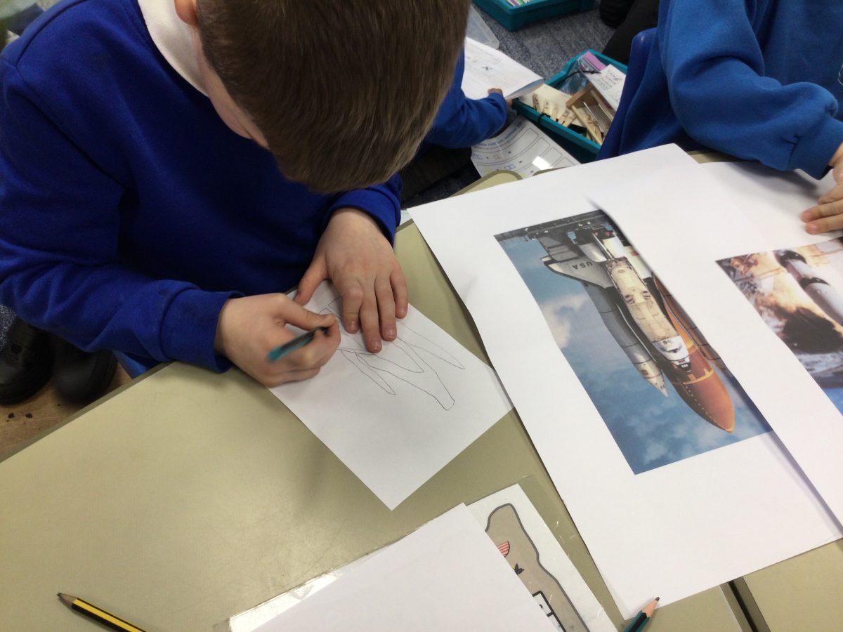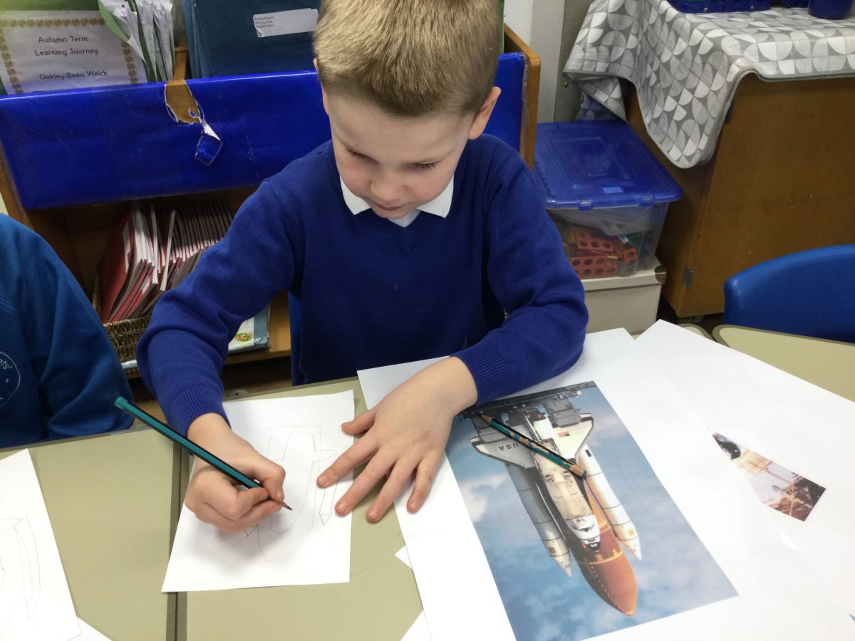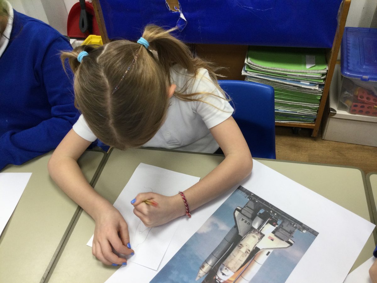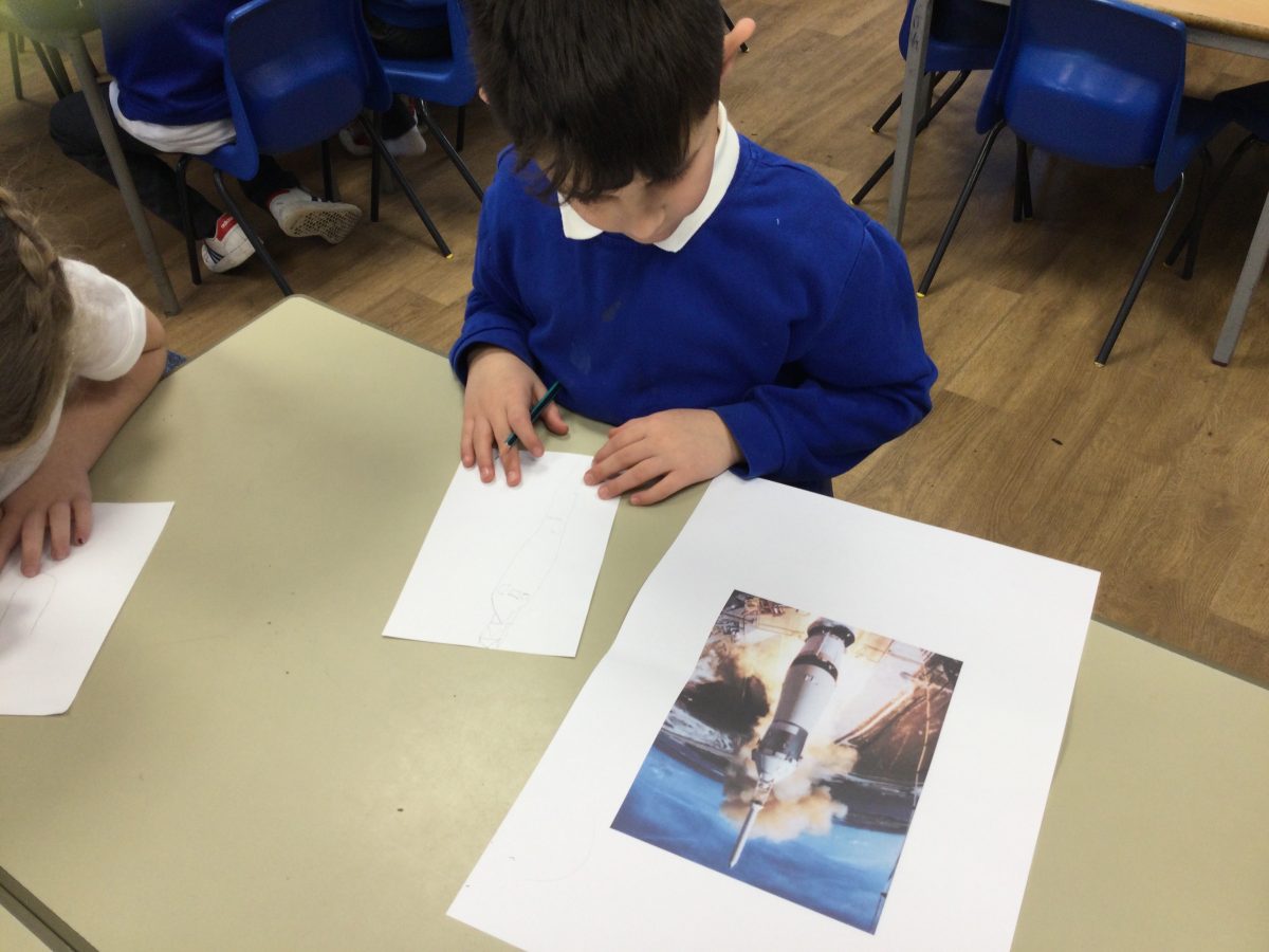 The children in Year 2 have enjoyed learning about the artwork created by Robert Rauchenberg. He is a famous American artist who incorporated everyday objects into his artwork. Year 2 have particularly enjoyed looking at his artwork inspired by space travel. They used images of space shuttles to create their own sketches.