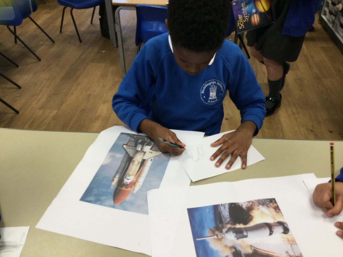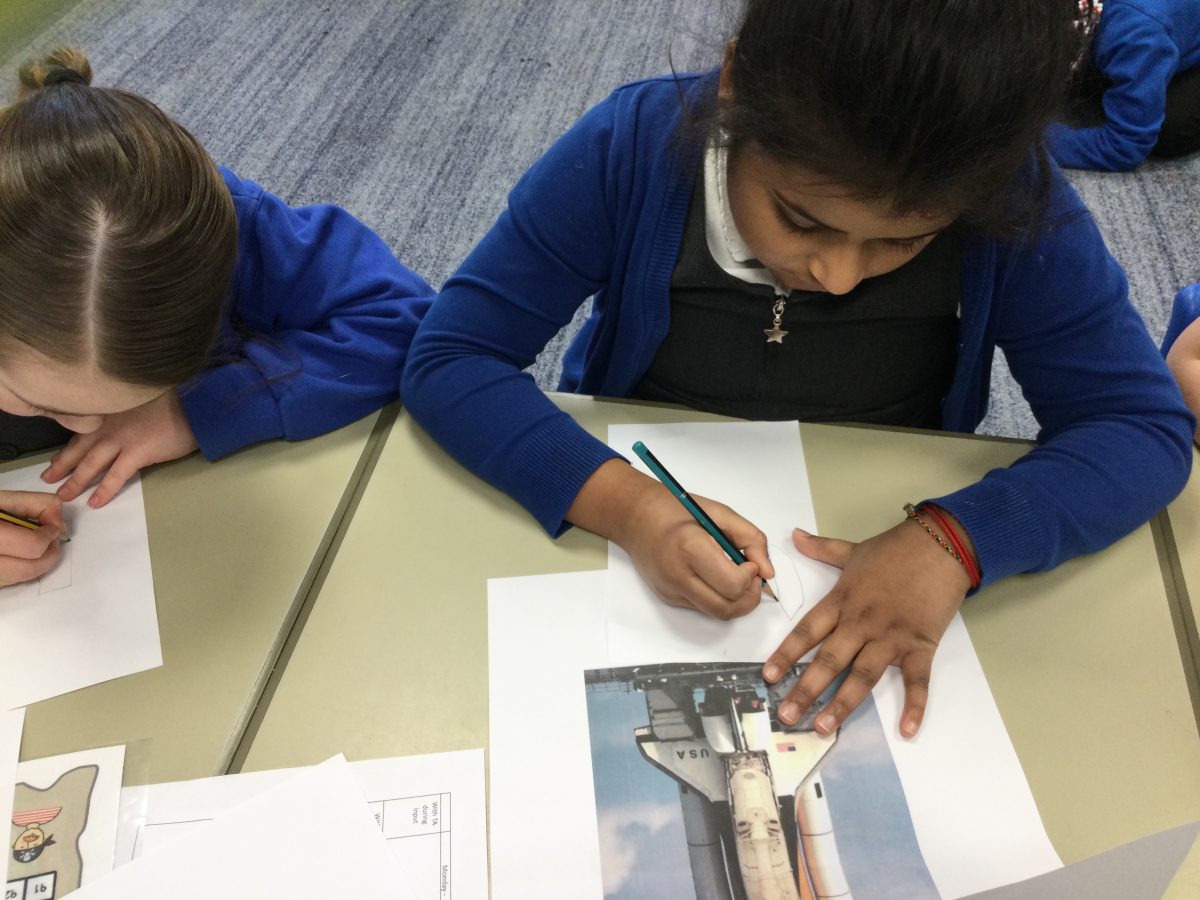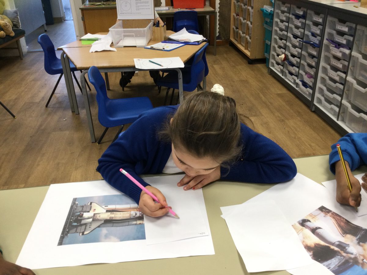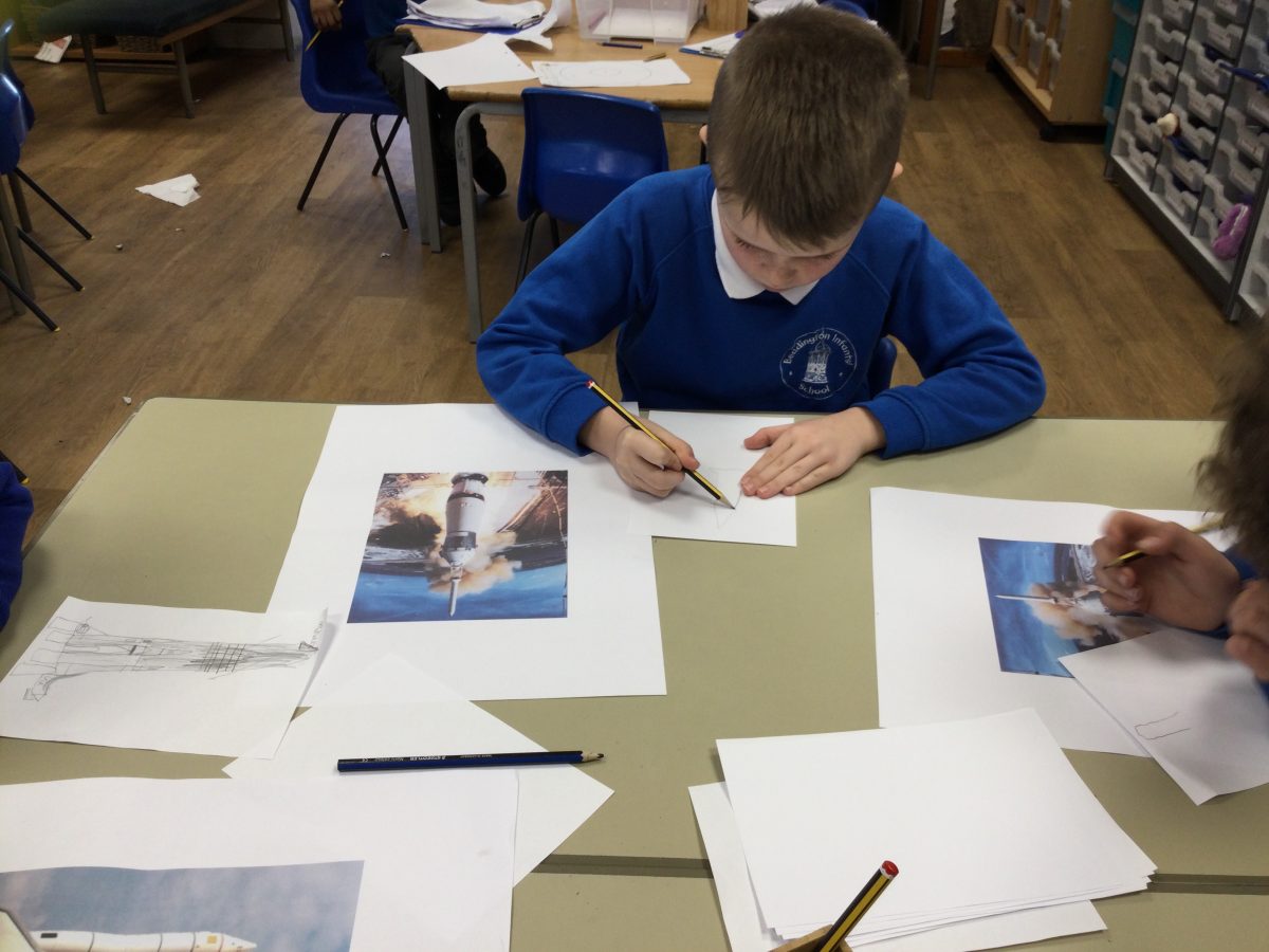 The children in Year 2 have enjoyed learning about the artwork created by Robert Rauchenberg. He is a famous American artist who incorporated everyday objects into his artwork. Year 2 have particularly enjoyed looking at his artwork inspired by space travel. They used images of space shuttles to create their own sketches.