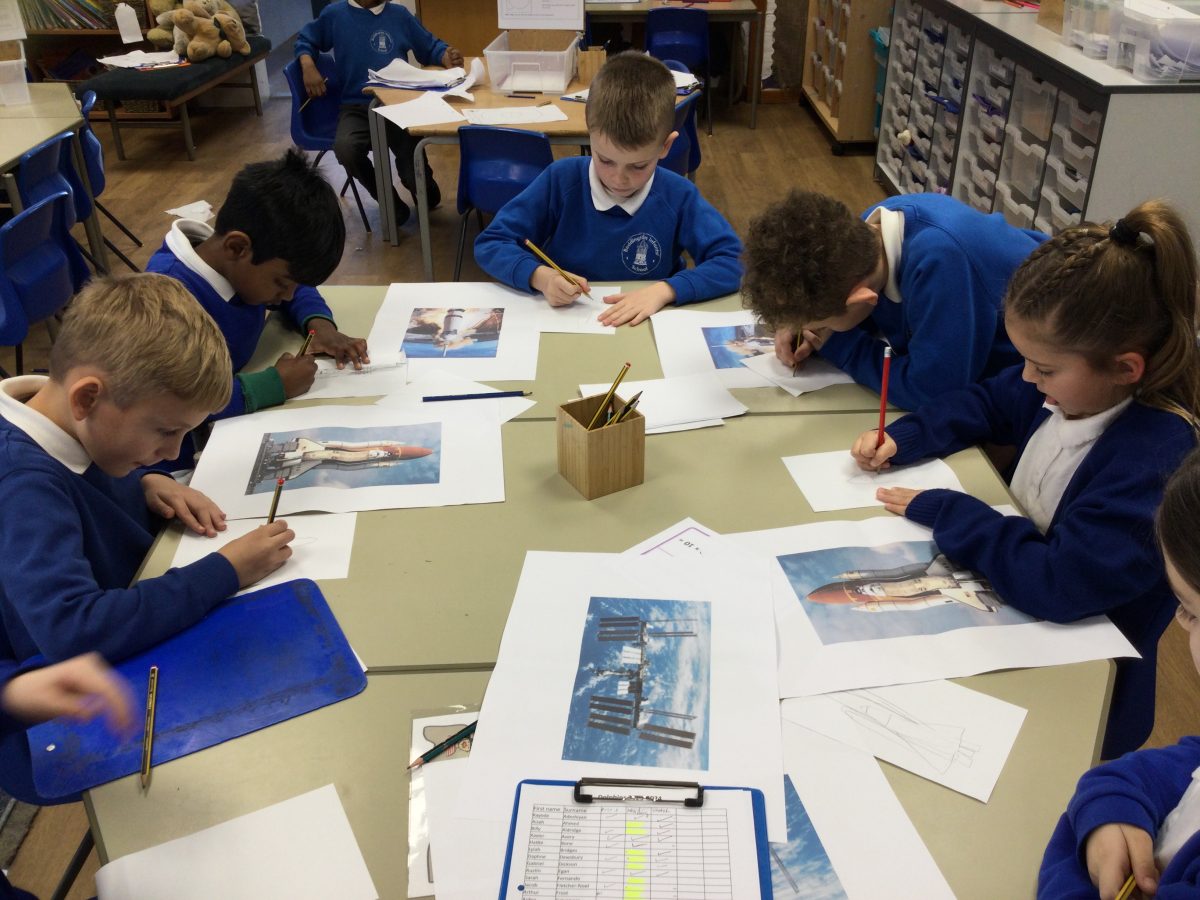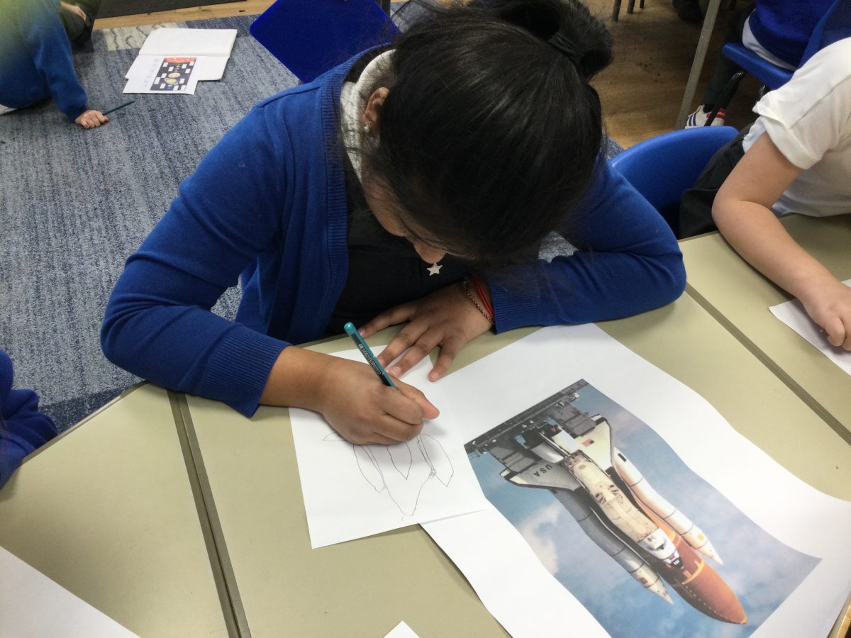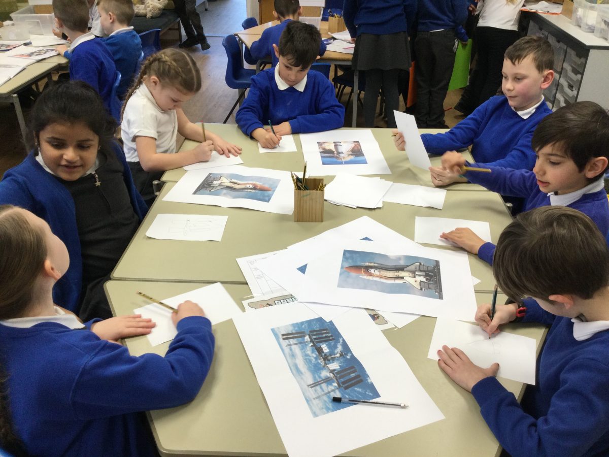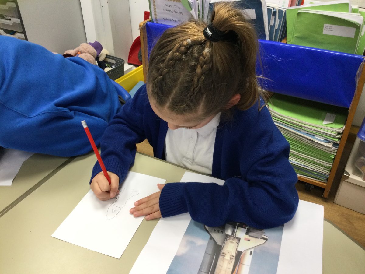 The children in Year 2 have enjoyed learning about the artwork created by Robert Rauchenberg. He is a famous American artist who incorporated everyday objects into his artwork. Year 2 have particularly enjoyed looking at his artwork inspired by space travel. They used images of space shuttles to create their own sketches.