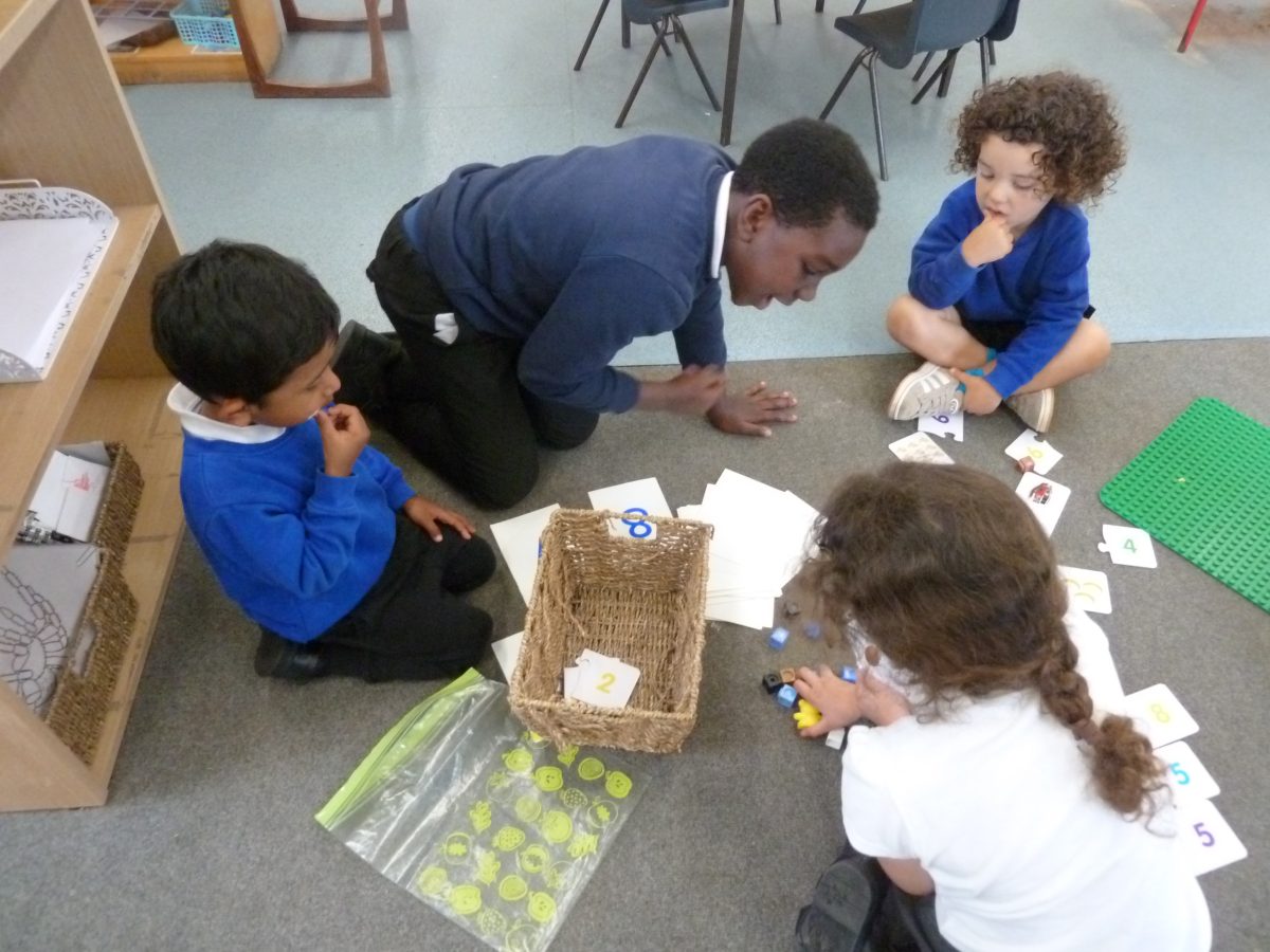 The children in Year 2 were excited to visit the Nursery and read with the children. This term each Year 2 class designed and constructed their own maths game to help the children in Nursery develop their counting skills. Each week two children from each Year 2 class visit the Nursery to play their game with the children. The grown-ups in the Nursery were impressed by how confidently and professionally the Year 2 children learned with their new friends. The Nursery children demonstrated their amazing listening and attention skills, thoroughly enjoying the whole experience. How lucky we are to be part of such a great learning community!