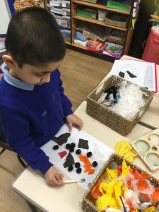 In Reception we are really enjoying our topic:`Explorers’. We have particularly loved learning about penguins. In Art we have been creating penguins using mixed media. We have been using different materials such as: card, string, wool, pens and many more!