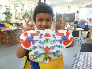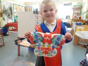 Inspired by our beautiful butterflies, we made our own symmetrical butterflies and learned about different ways to create patterns.