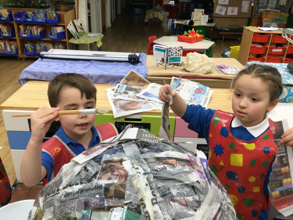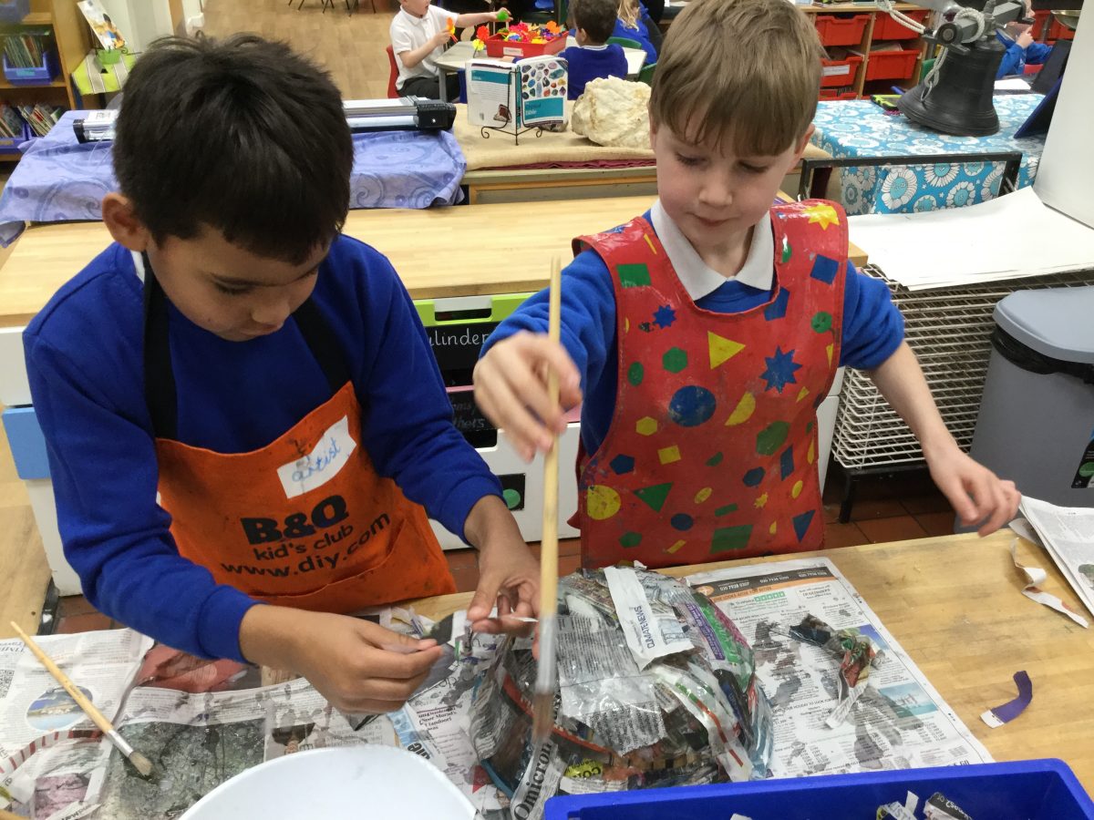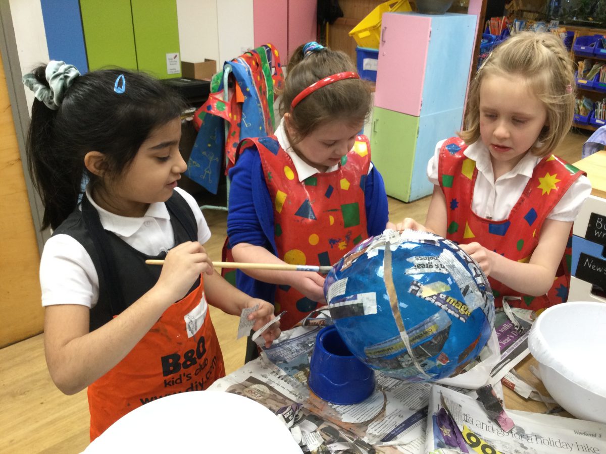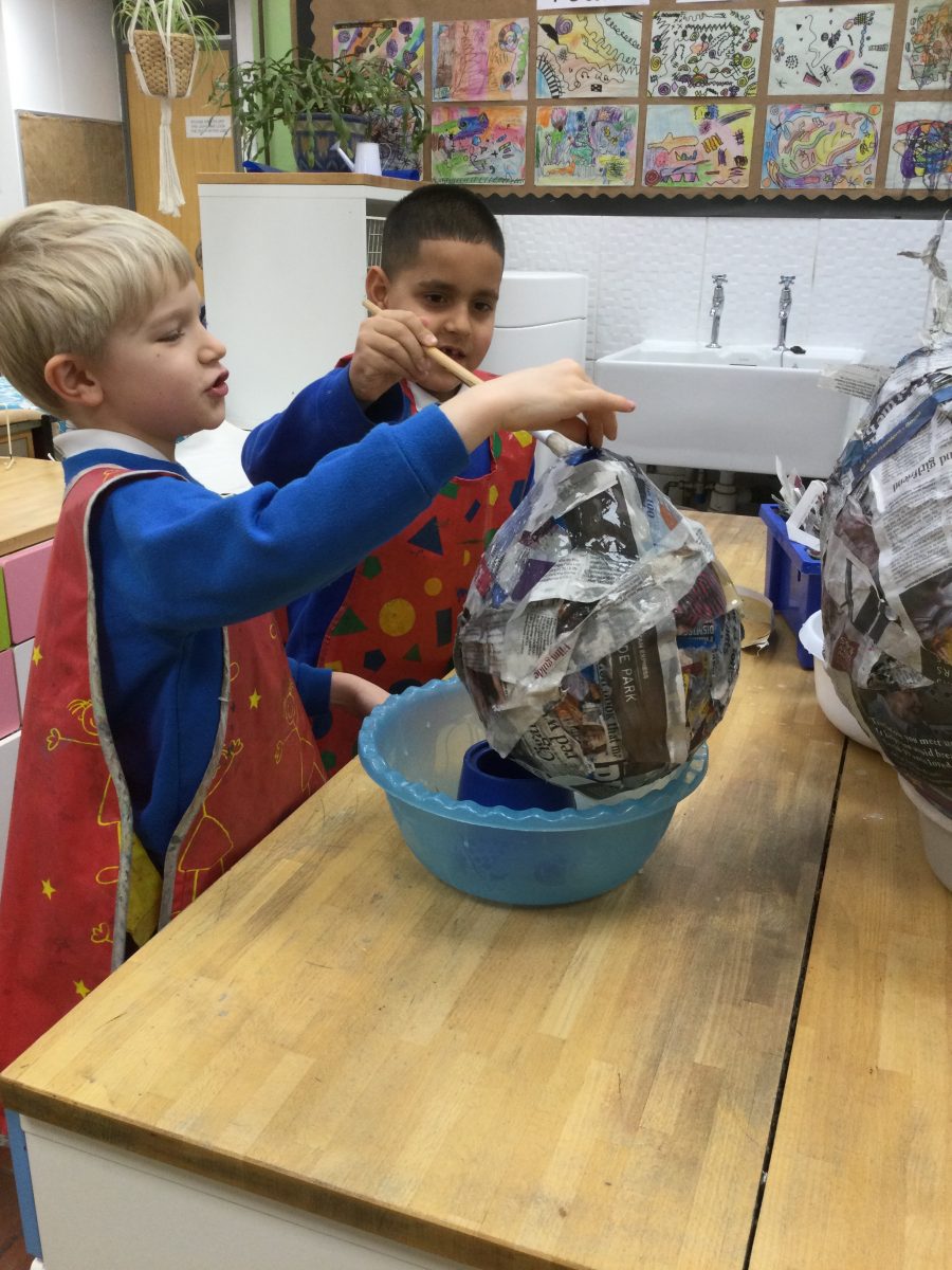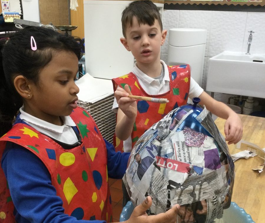 They carefully laid layers of paper over the balloons, covered them with glue and waited for them to dry. Then they added two more layers to make sure each planet was strong. Once they were dry the children painted them to represent each planet based on what they now know about the Solar System.