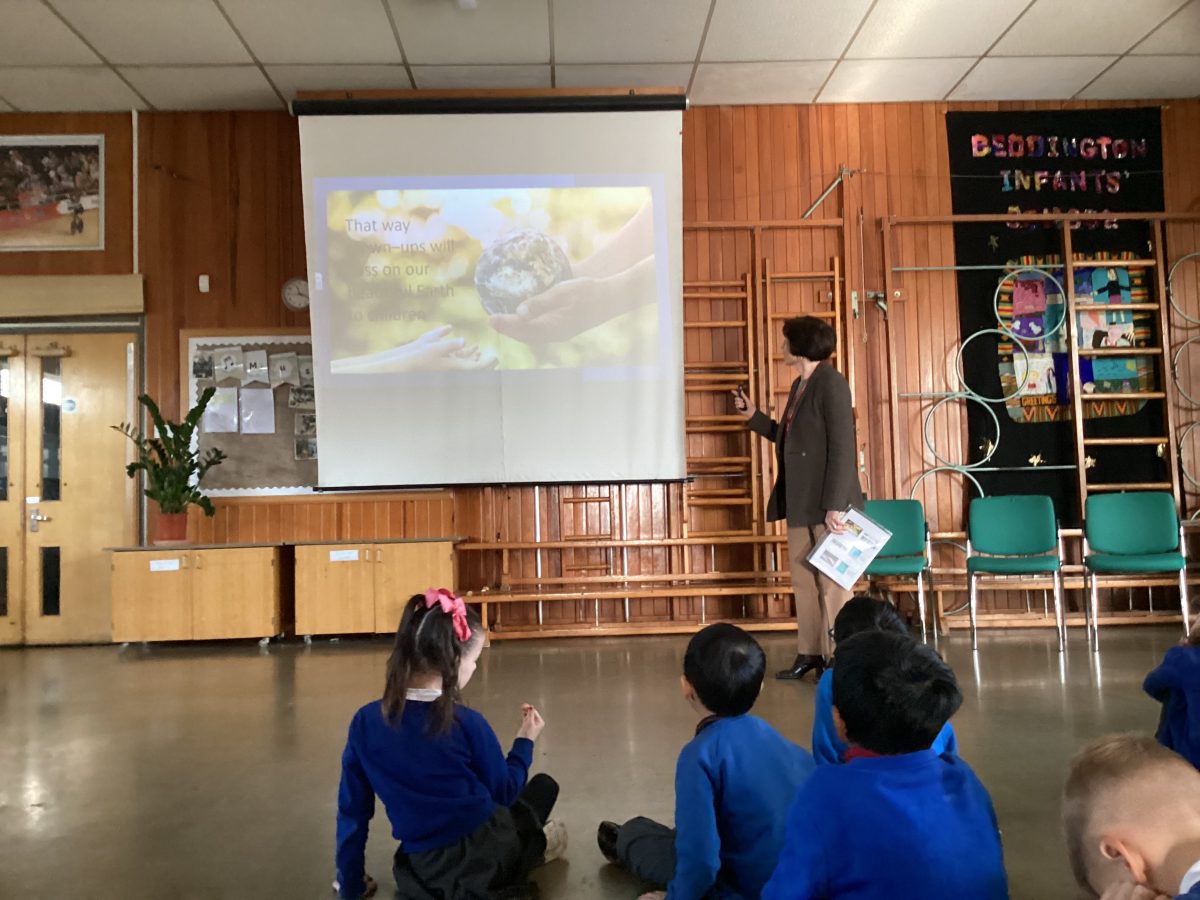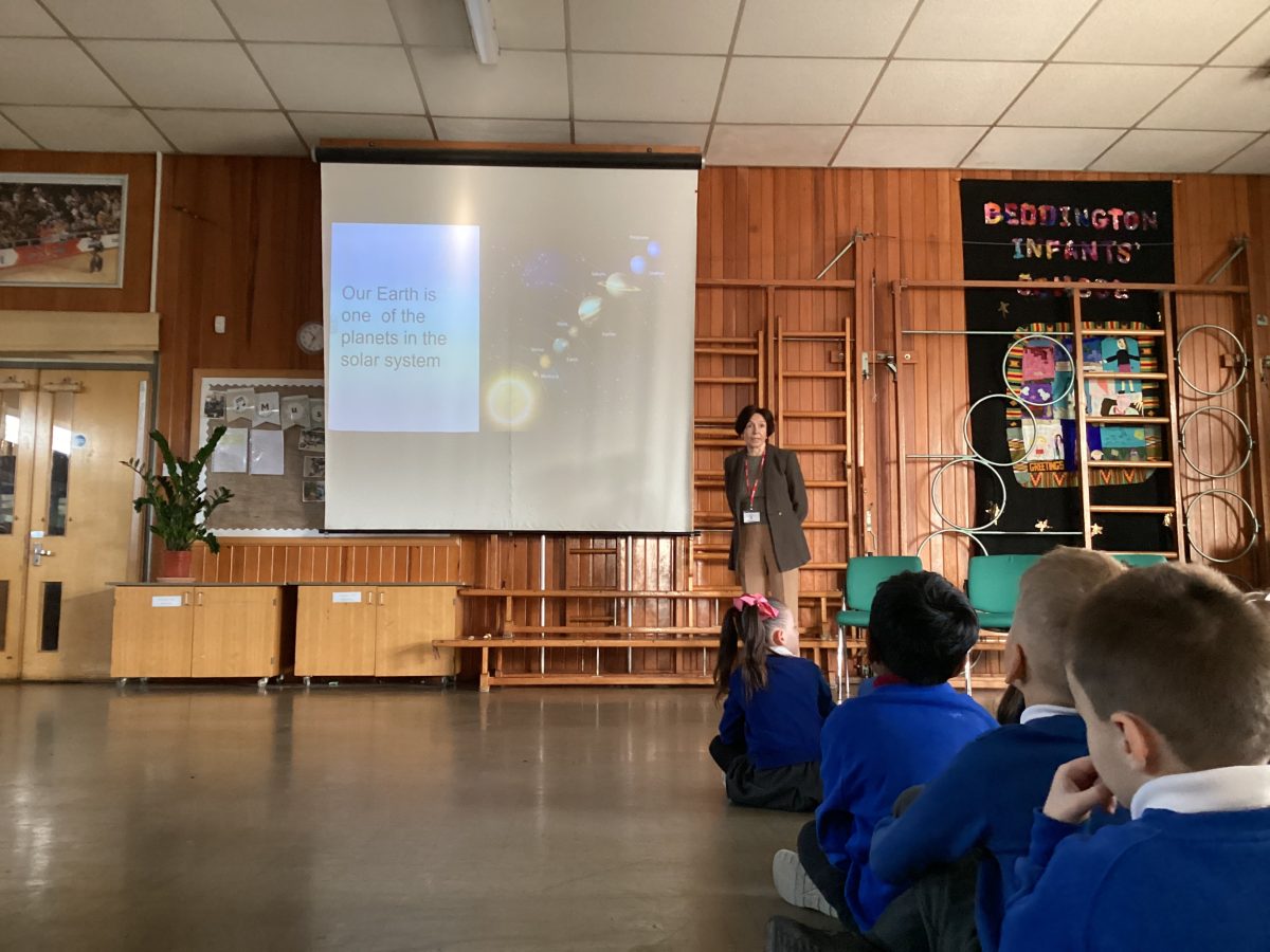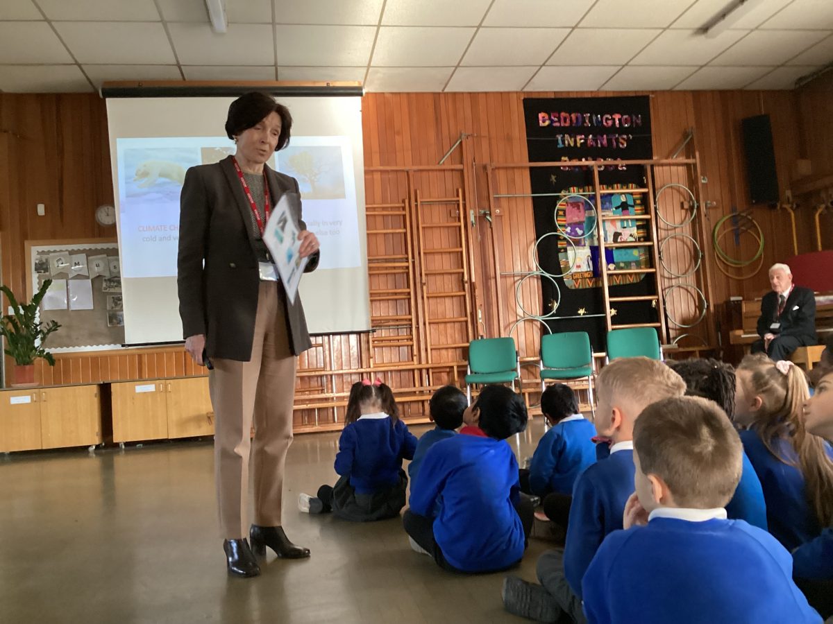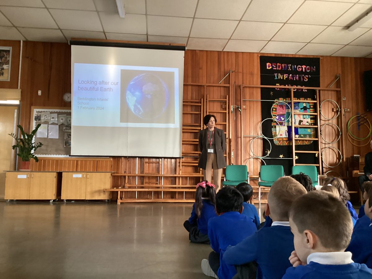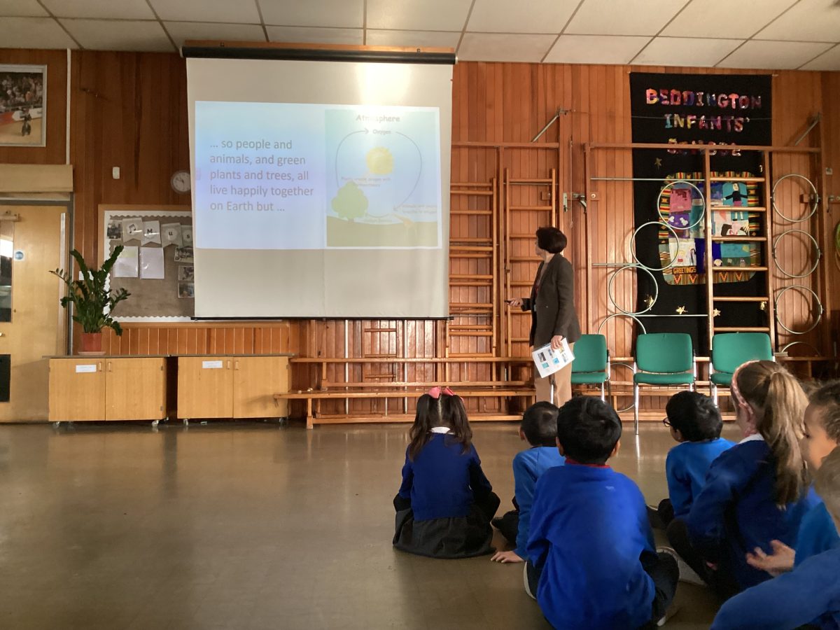 We were delighted to welcome Dame Mary Archer to Beddington Infants’ School. Thank you to Barry Williams for inviting such a celebrated scientist to our school. Dame Mary spoke to the children about our amazing planet and explained why and how we should take care of it.