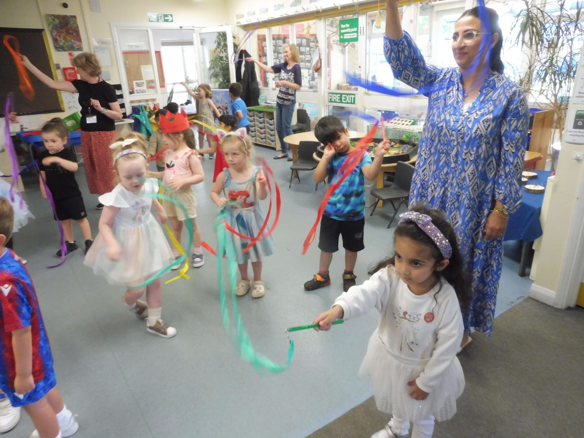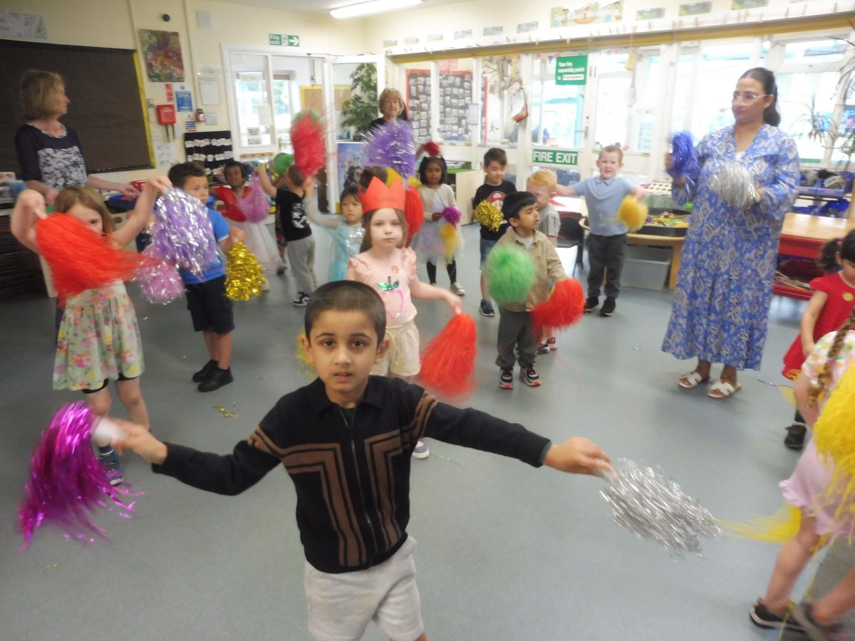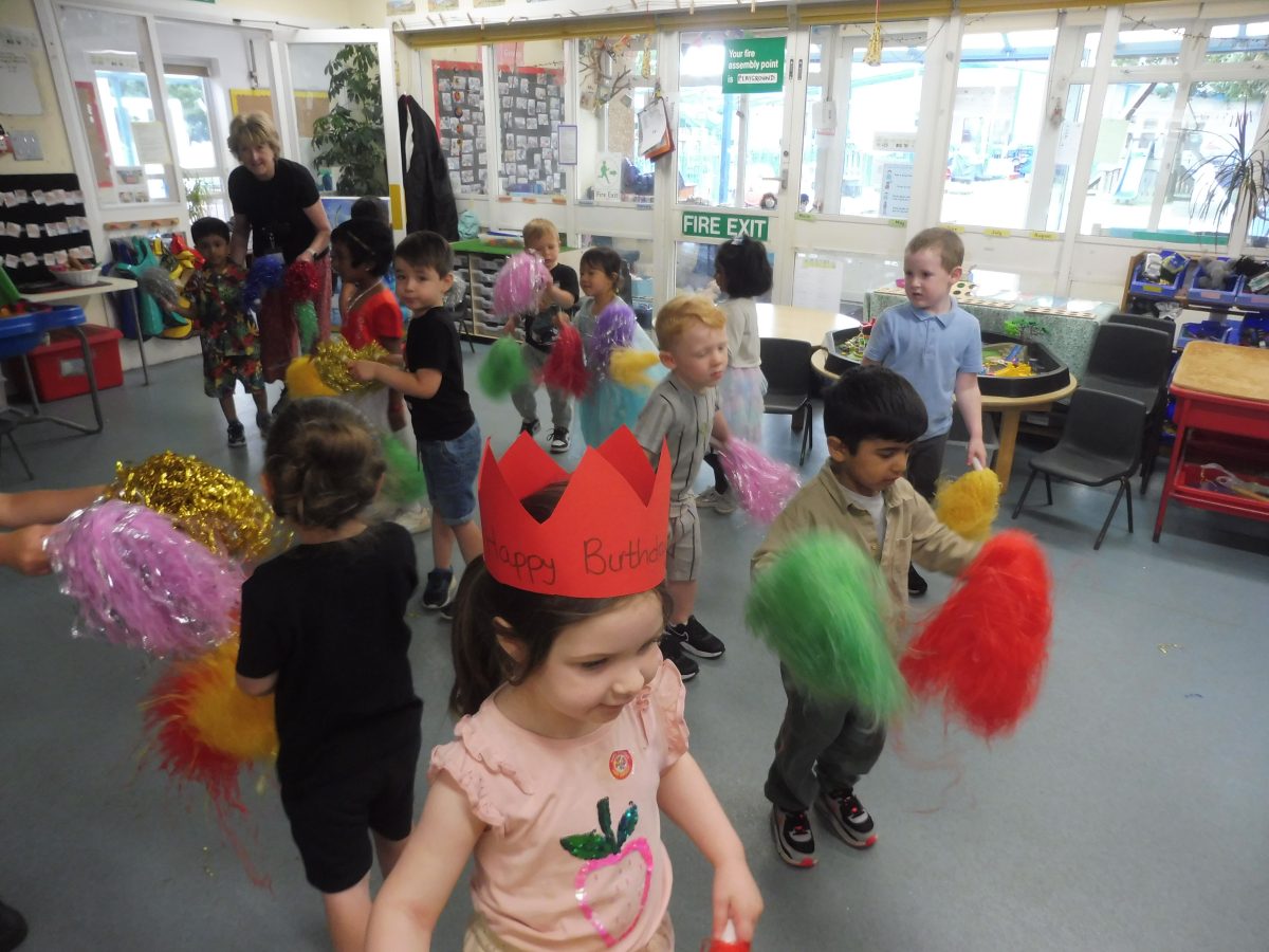 We had a fun end of term with streamers, pom poms, dancing and bubbles thanks to Mrs Doggett, mother of William – what a great way to finish a wonderful year in Nursery!