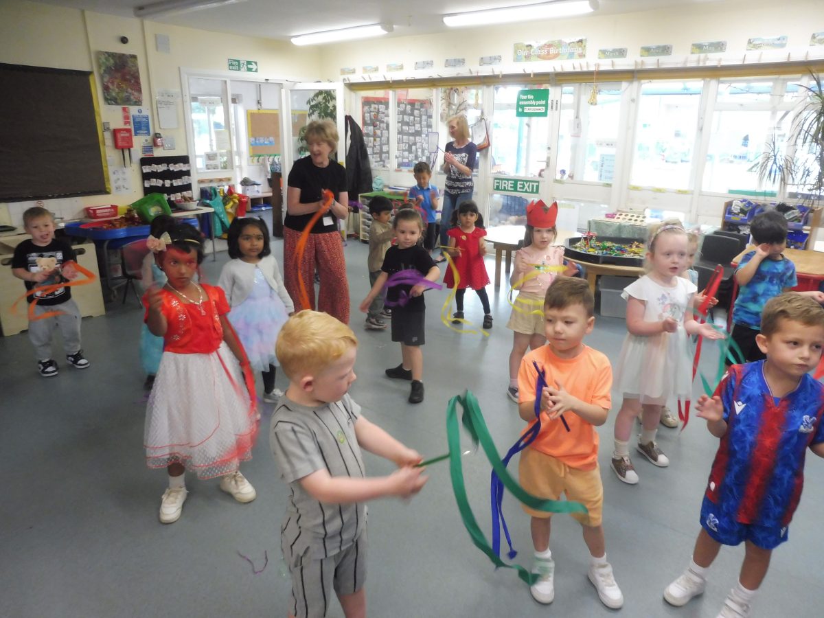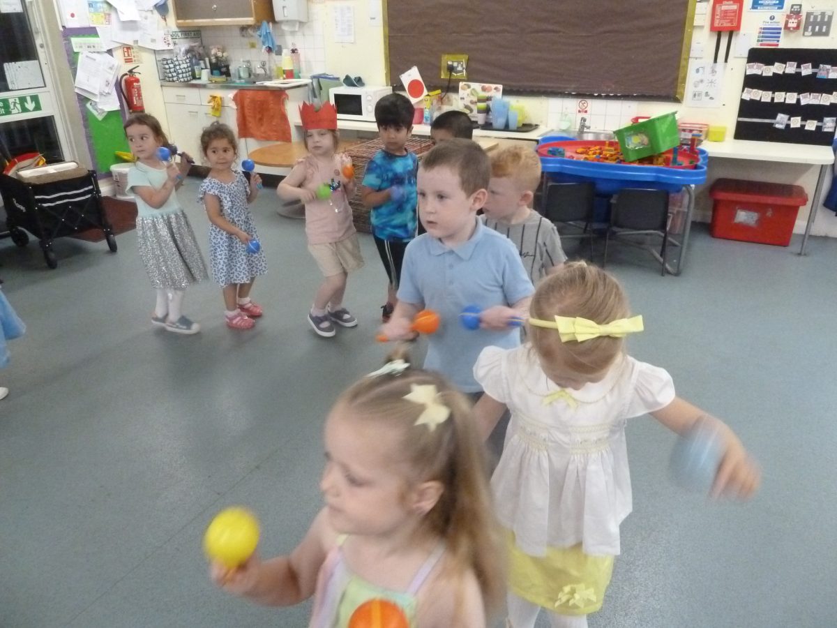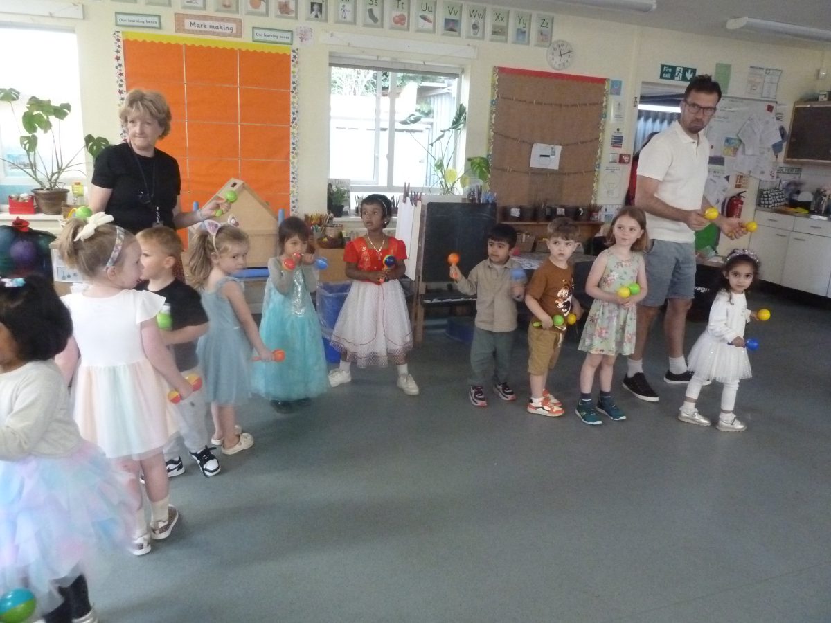 We had a fun end of term with streamers, pom poms, dancing and bubbles thanks to Mrs Doggett, mother of William – what a great way to finish a wonderful year in Nursery!
