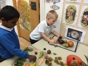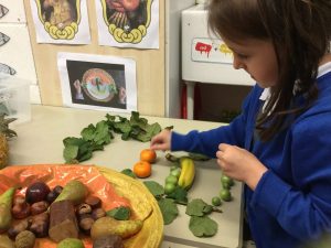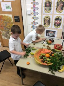In Reception we have been learning about an artist called Giuseppe Arcimboldo. He has inspired us to create our own faces, using fruits, vegetables and natural materials. We are very proud of the results.