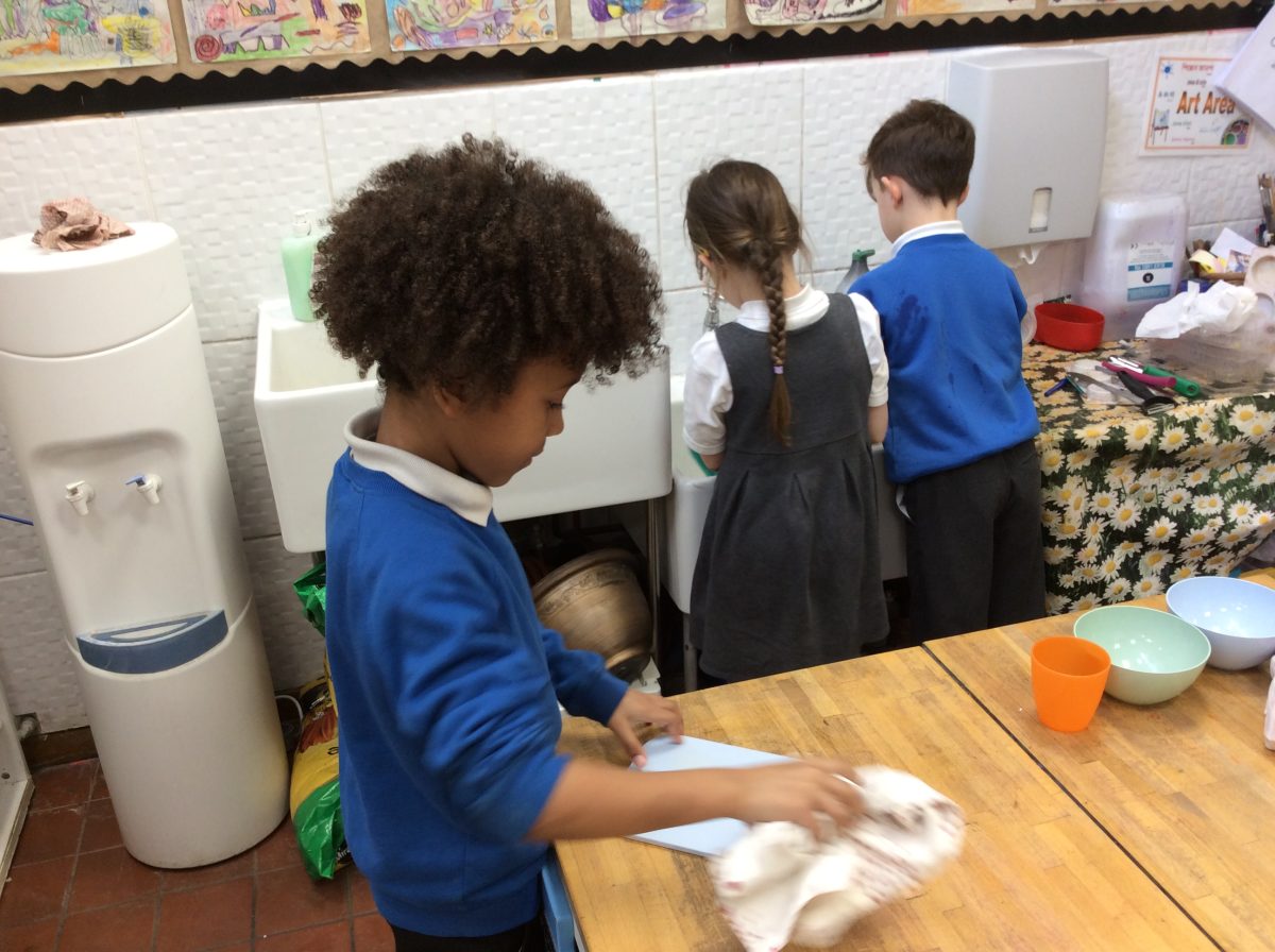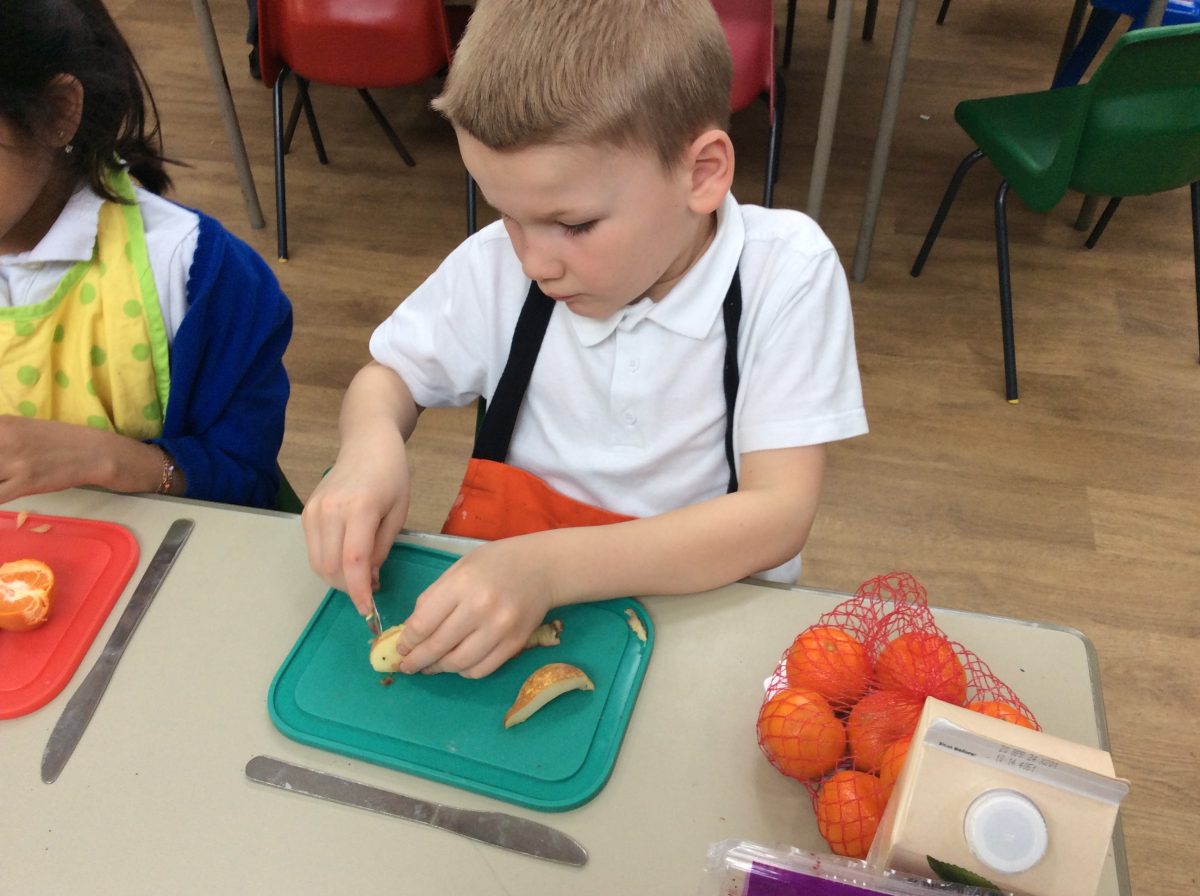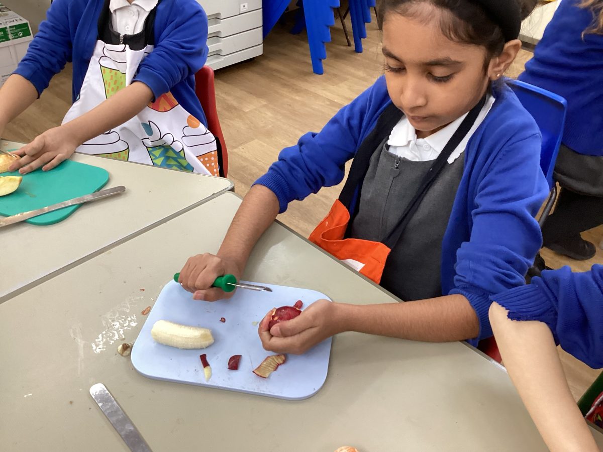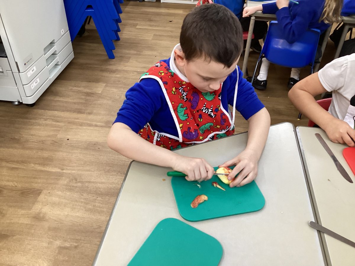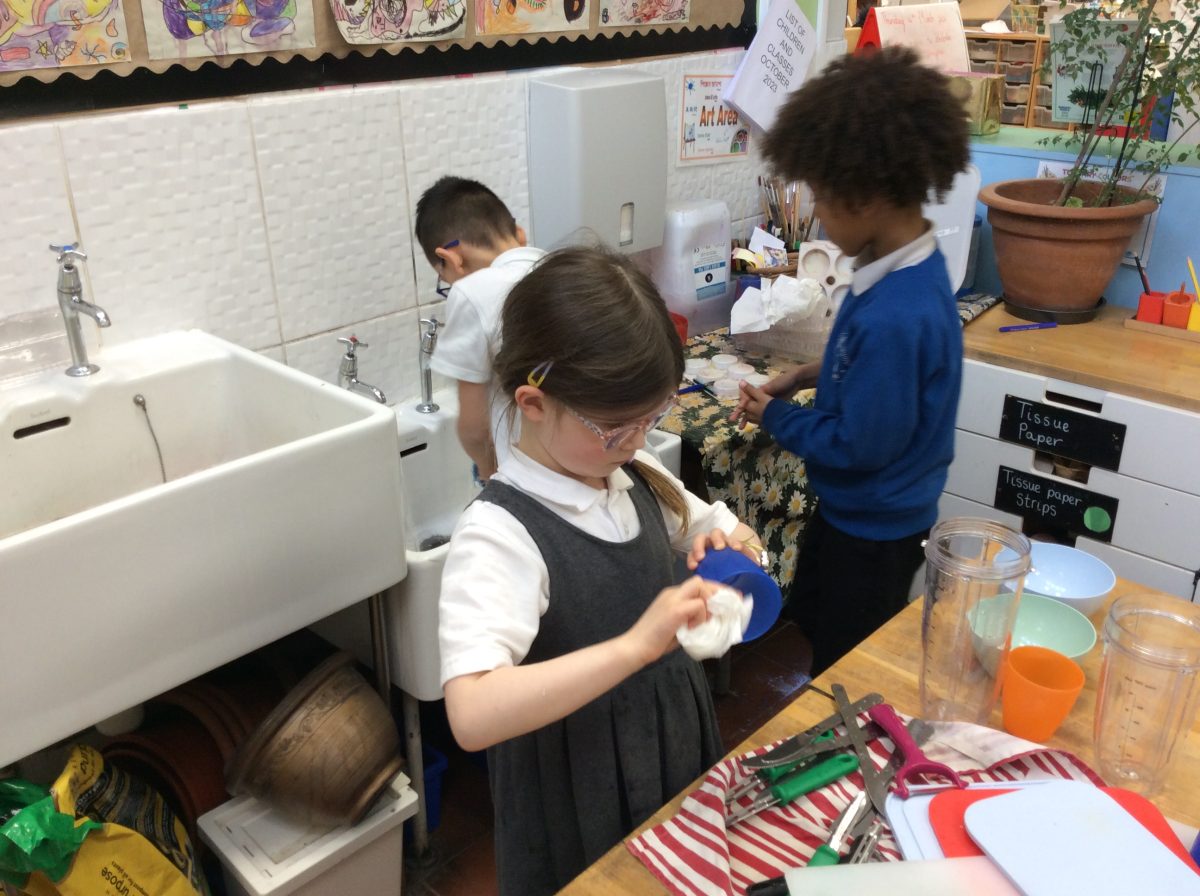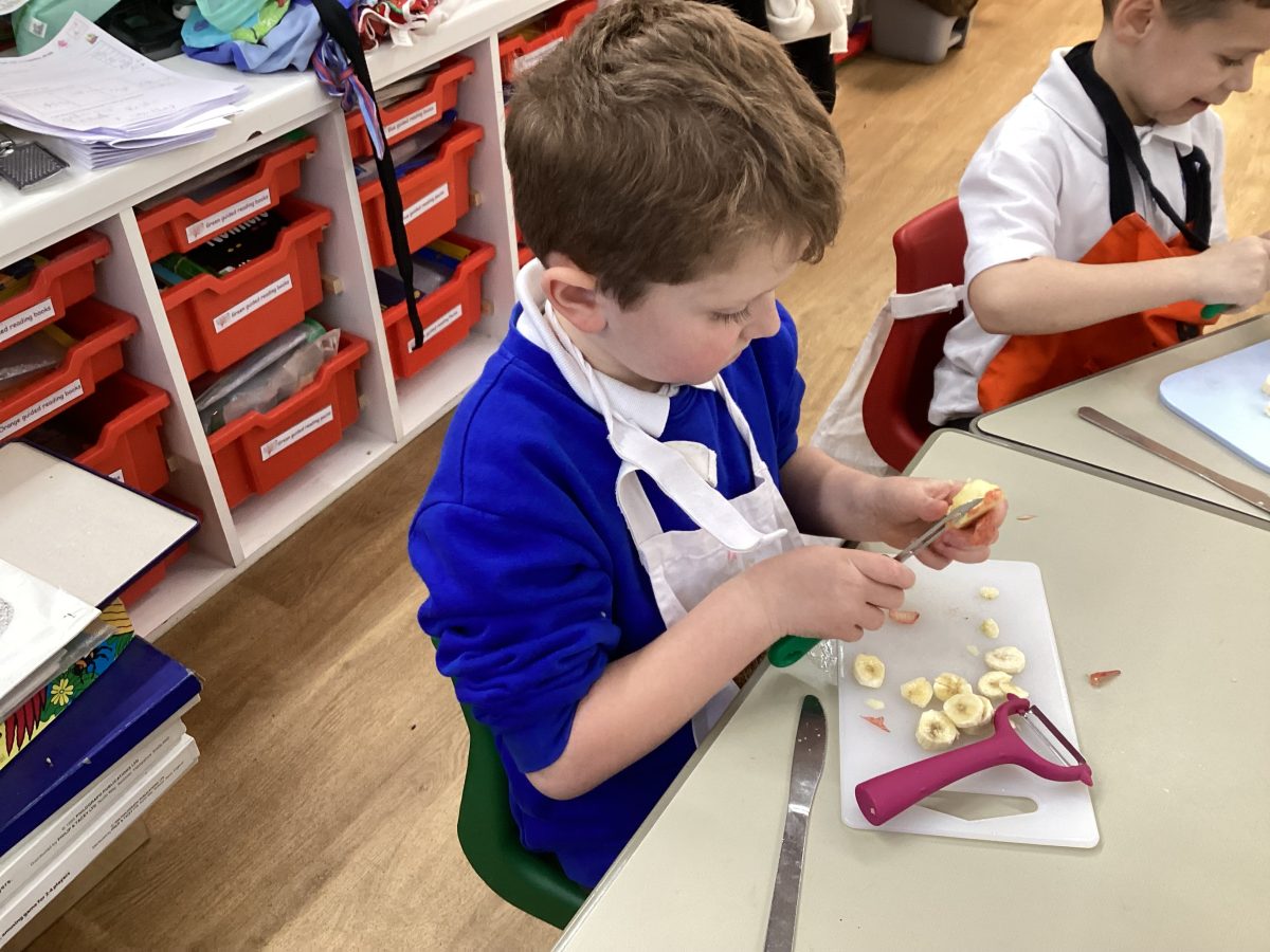 The children in Year 2 have each created their very own unique healthy drink. They used their learning in Science, Relationship and Health Education (RHE) to identify healthy foods to include in their drink. They then used their Design Technology skills to plan their drinks. They selected the ingredients and equipment they needed. In small groups with an adult the children learnt new skills such as safely using a peeler and knife to cut their fruit. They then used a blender to combine their ingredients, creating a delicious drink. They used DeBono’s Thinking Hats to evaluate their creations. It was a great way to end their topic Muck, Mess and Mixtures!