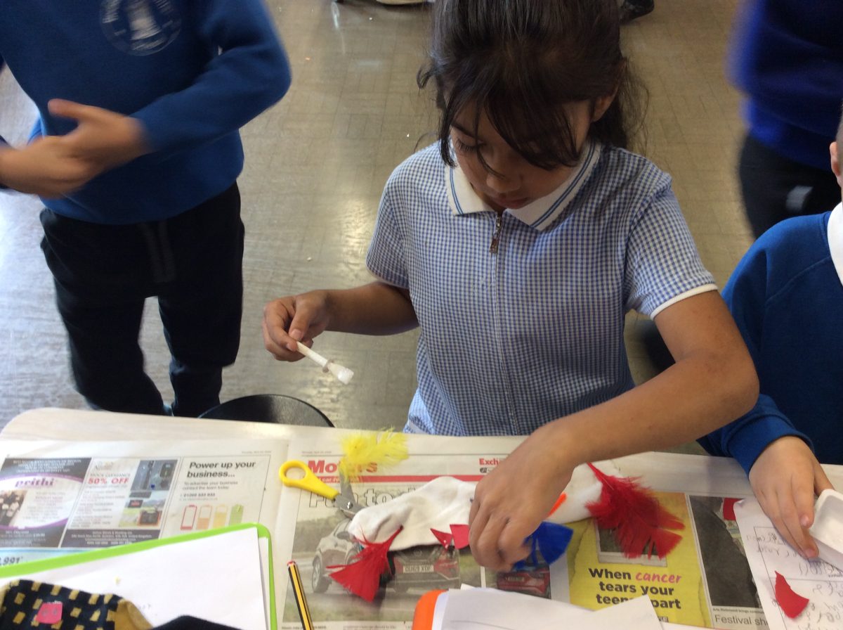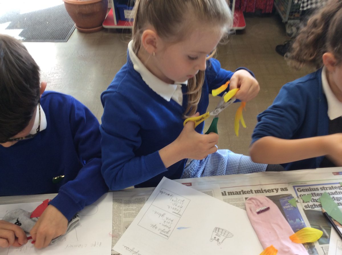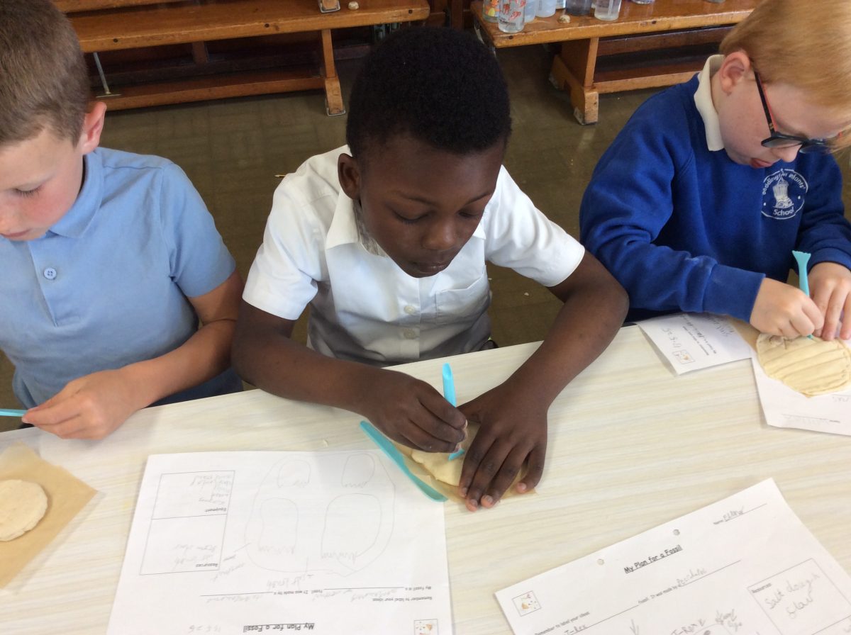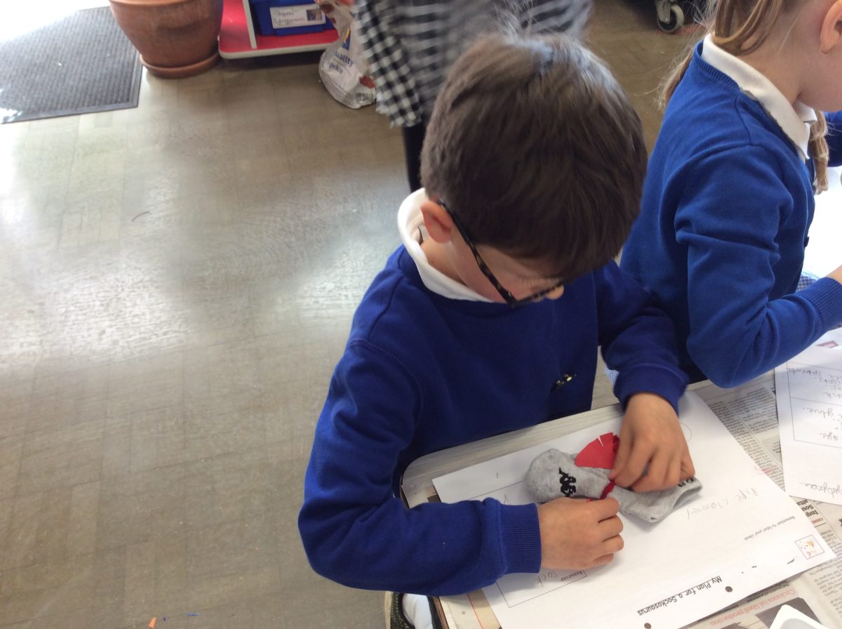 The children have used the research they have done about dinosaurs to design and create a sockosaurus, thinking carefully about the resources they wanted to use. The children have even used their knowledge of fossils to design and make their own ‘fossils’! Some children made trace fossils and some children made bone fossils; everyone thought really carefully about the equipment they needed to make their artefacts.