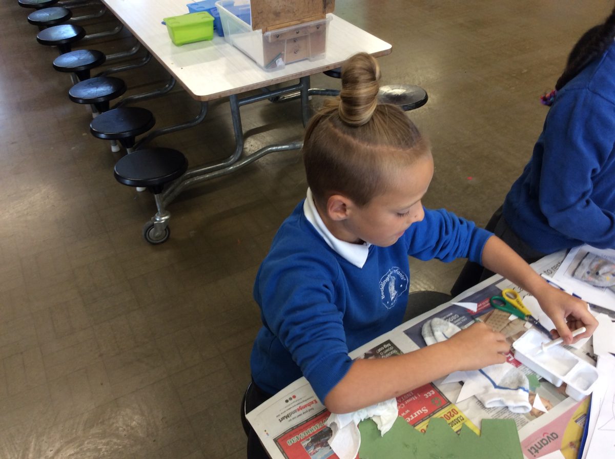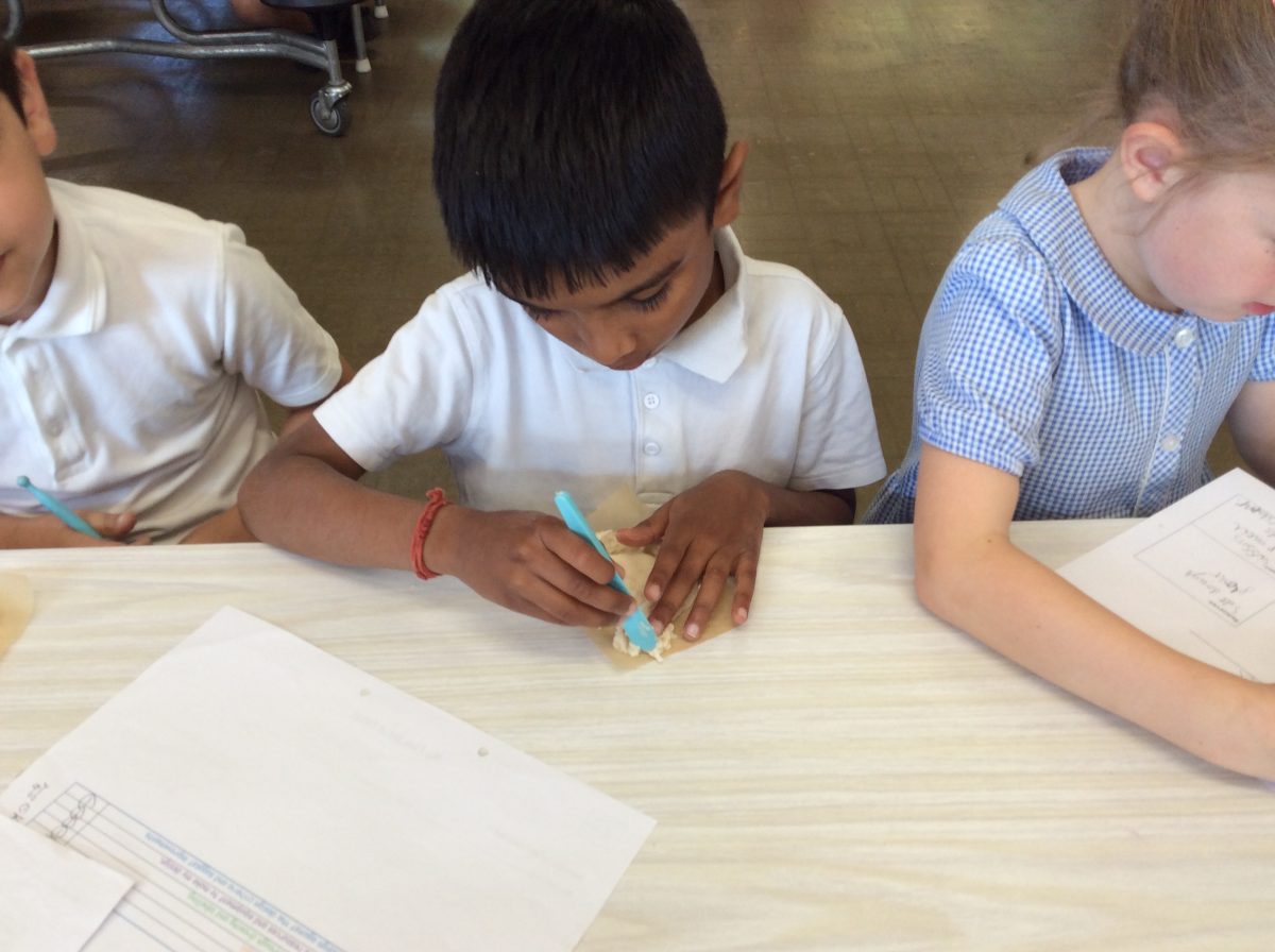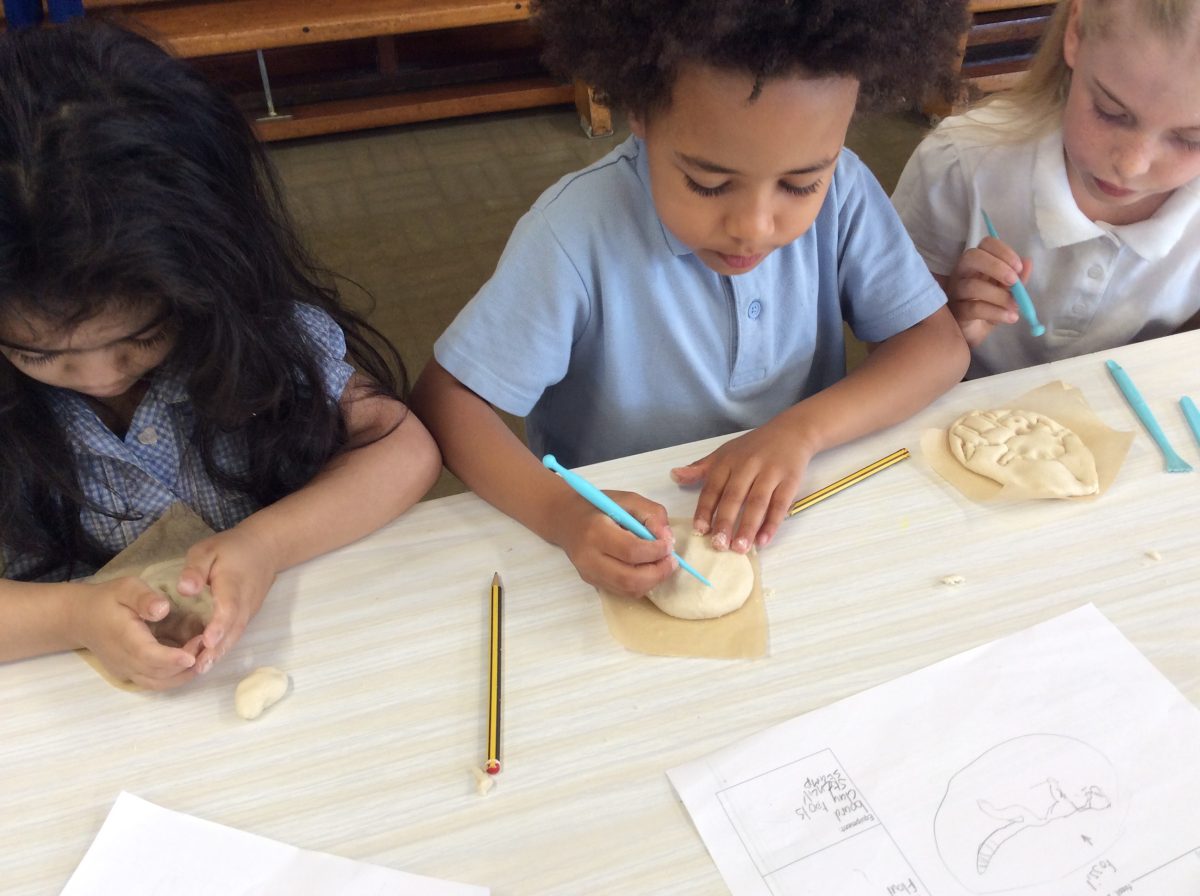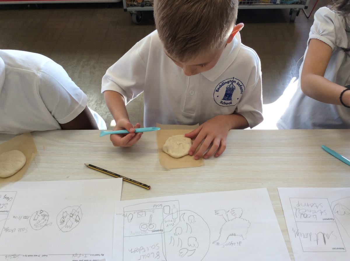 The children have used the research they have done about dinosaurs to design and create a sockosaurus, thinking carefully about the resources they wanted to use. The children have even used their knowledge of fossils to design and make their own ‘fossils’! Some children made trace fossils and some children made bone fossils; everyone thought really carefully about the equipment they needed to make their artefacts.