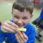 This week in Year 1 we have been learning about healthy eating and exploring new flavours. We all made a celery caterpillar with cream cheese and grapes as a healthy snack!