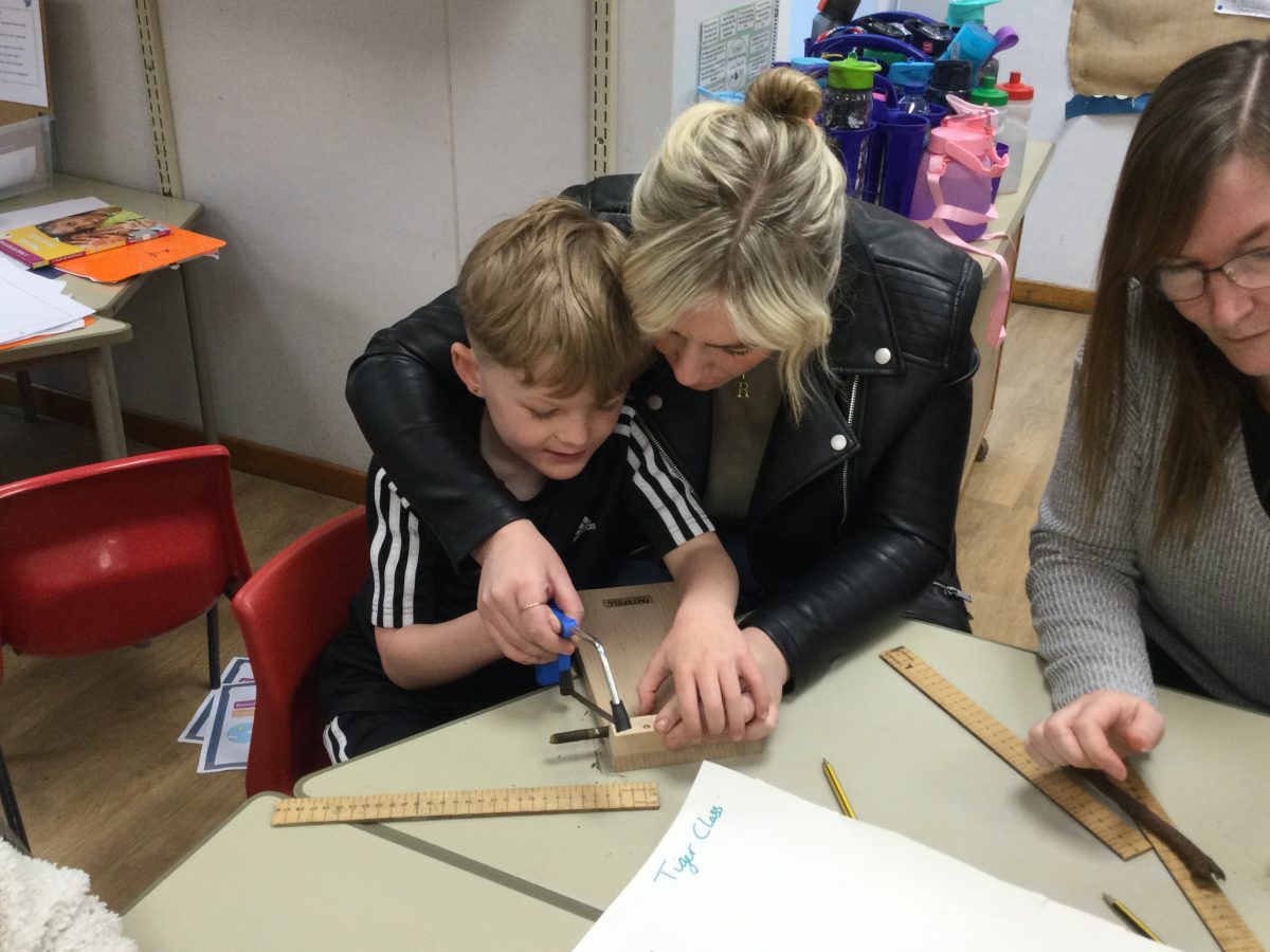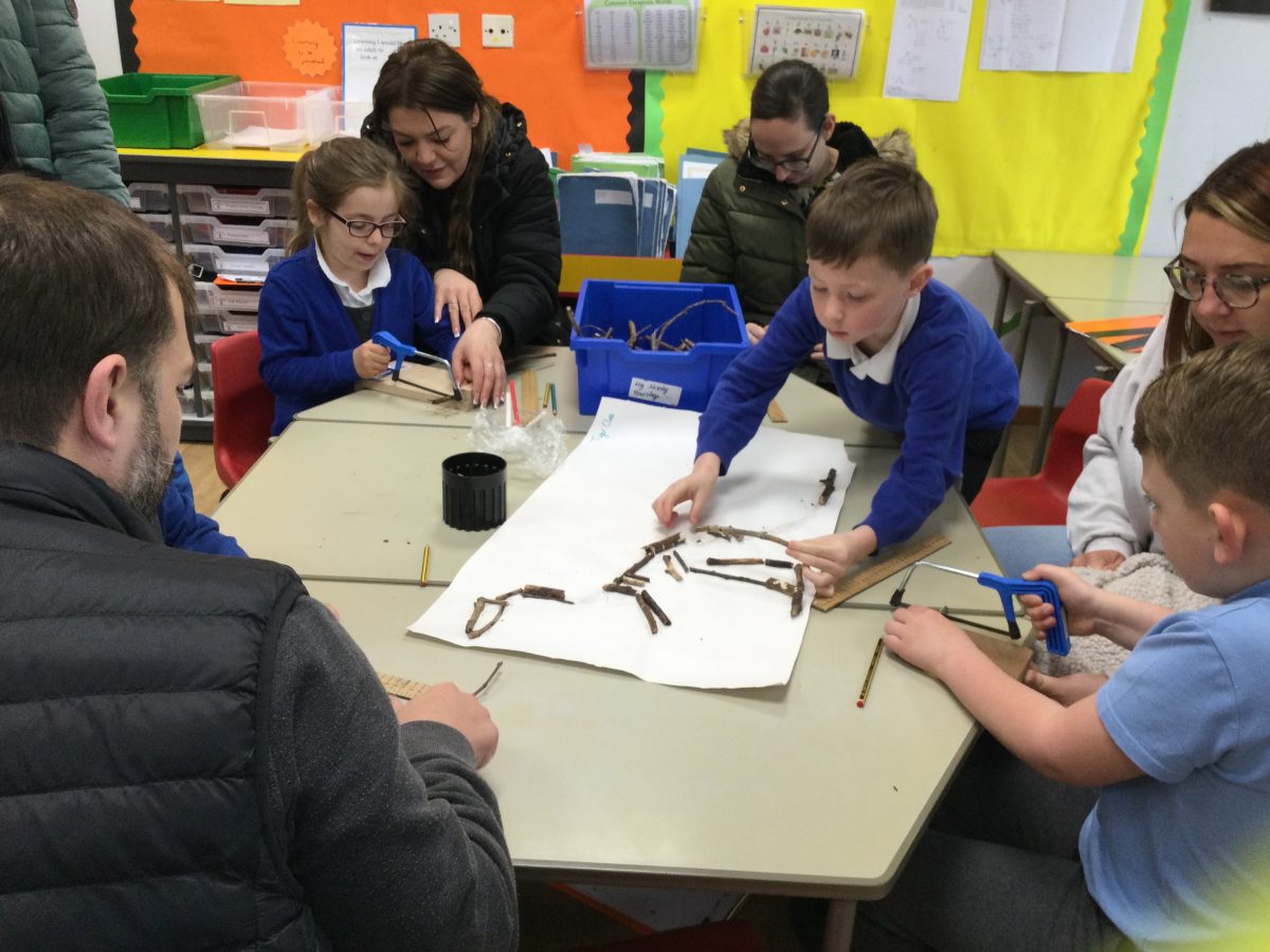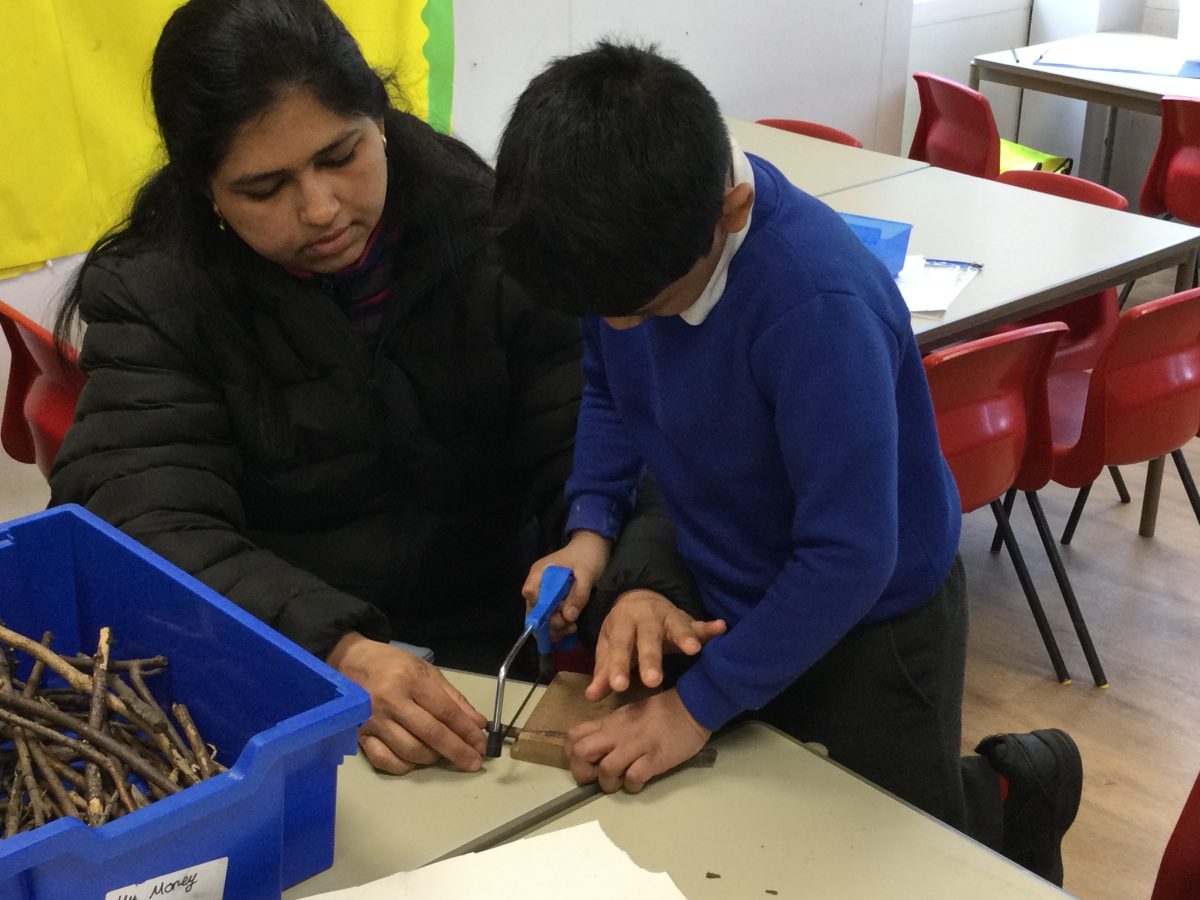 One parent commented: ‘The session was very useful to go over expectations for Maths and DT for Year 2. We both really enjoyed the activity together – lots of learning in a fun and creative way using natural materials.’