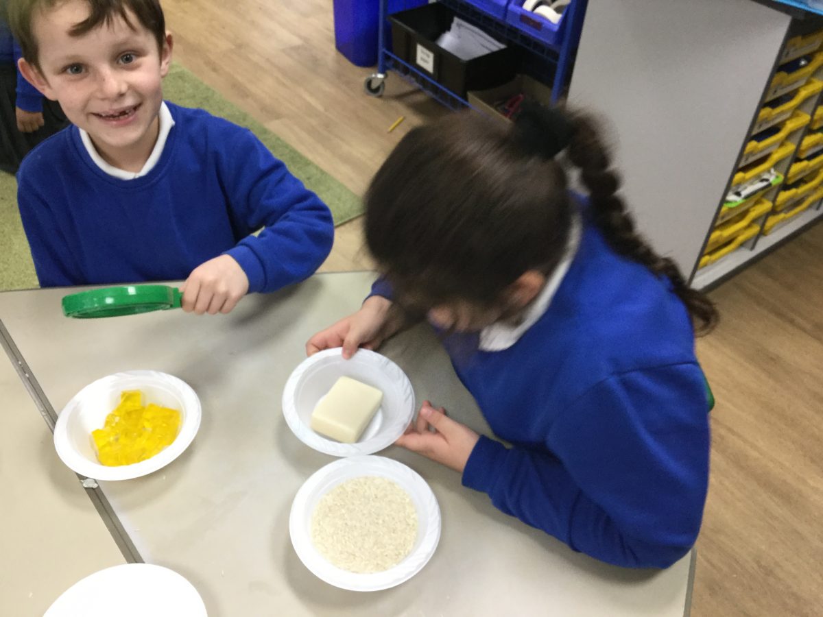 Year 2 are already enjoying their topic for this term; Muck, Mess and Mixtures! They have used their observational skills to explore how a range of substances looked, smelt and felt. They explored substances such as shaving foam, bubble bath, toothpaste, jelly, flour, porridge, food colouring and many more. They used their amazing writing skills to describe each substance. Which substance would you like to have explored?