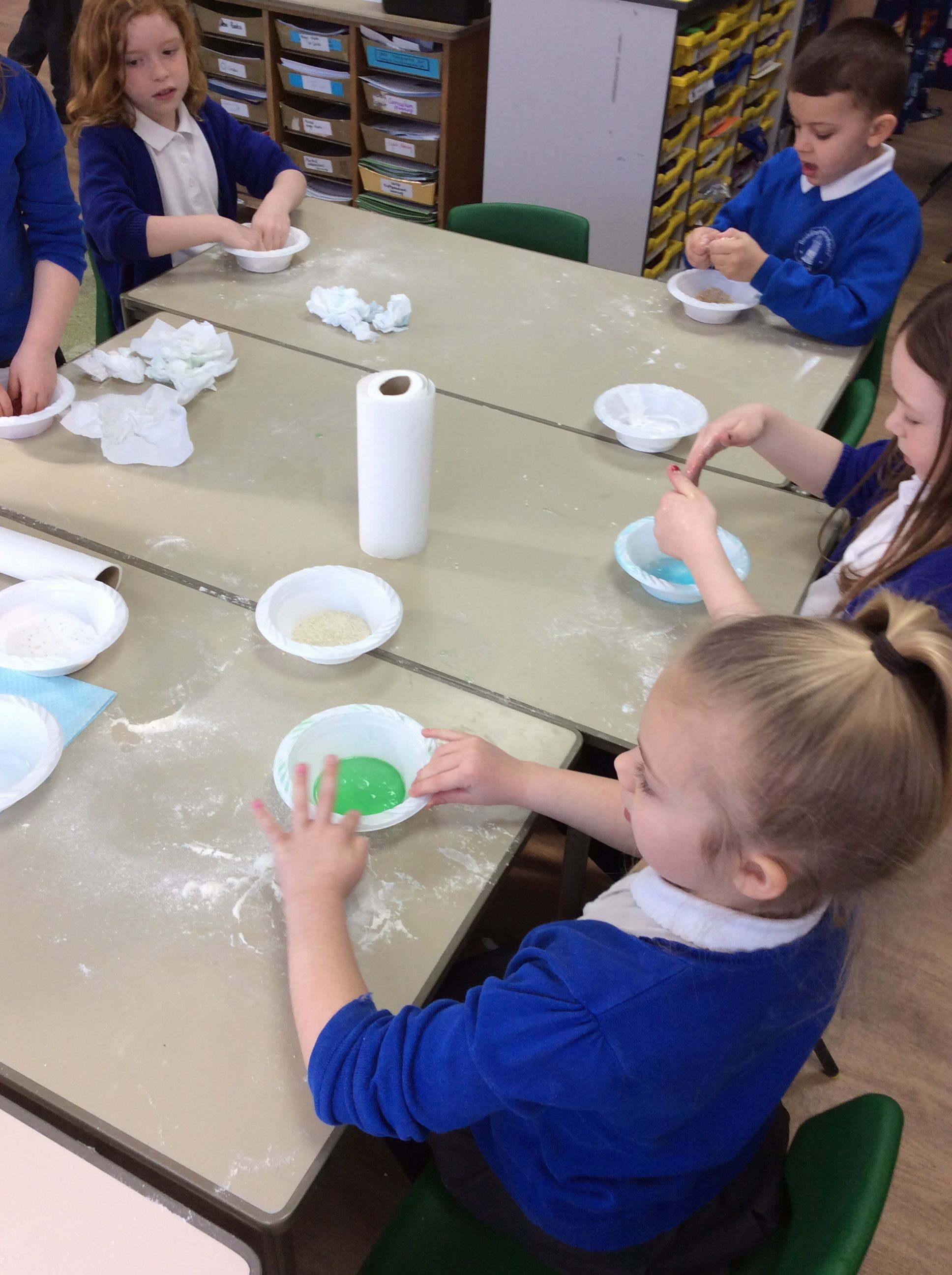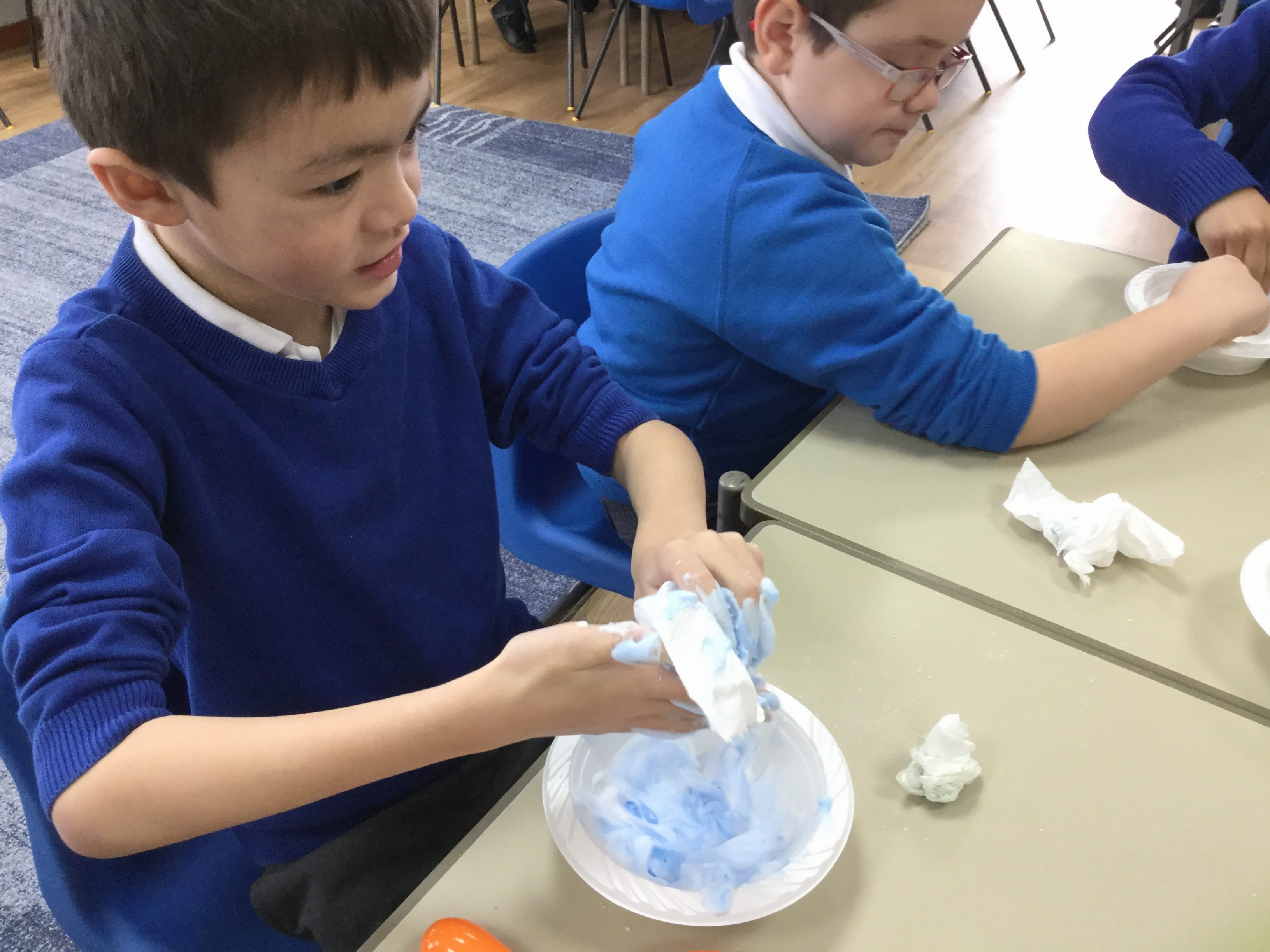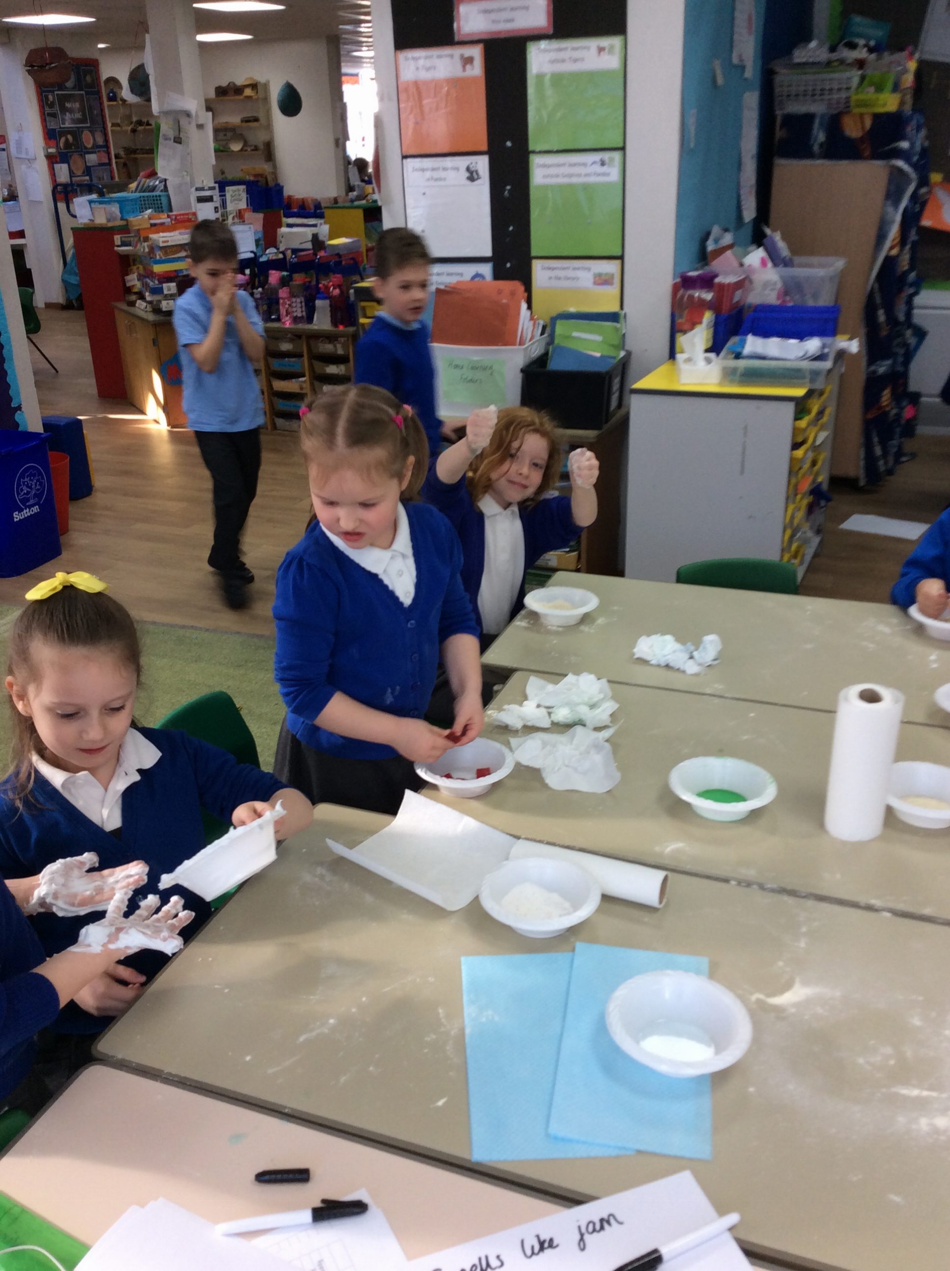 As the Engage stage of Muck Mess and Mixtures the children in Year 2 explored a range of substances. They used their observation skills to see how each one looked, smelt and felt. We got very messy!