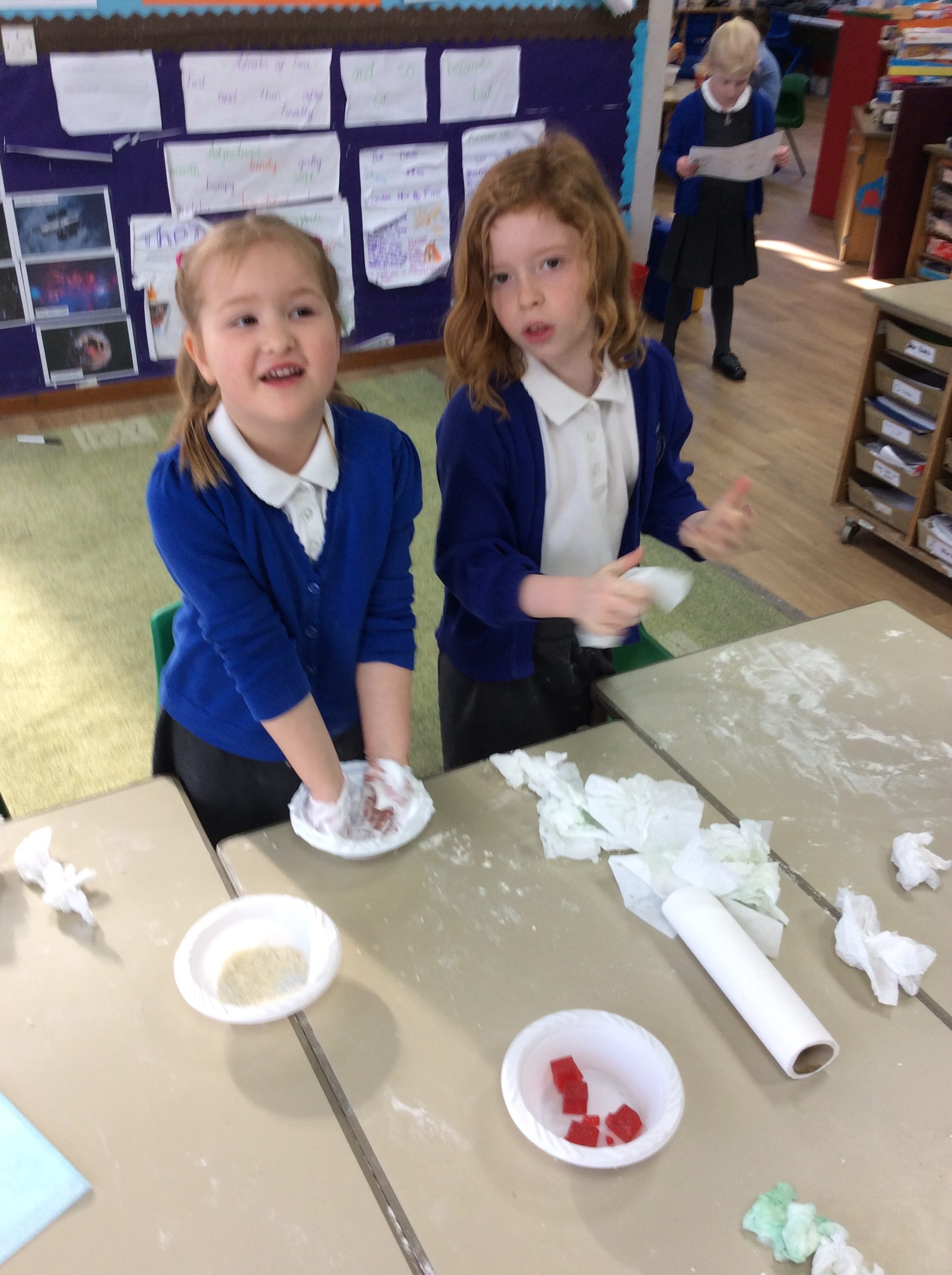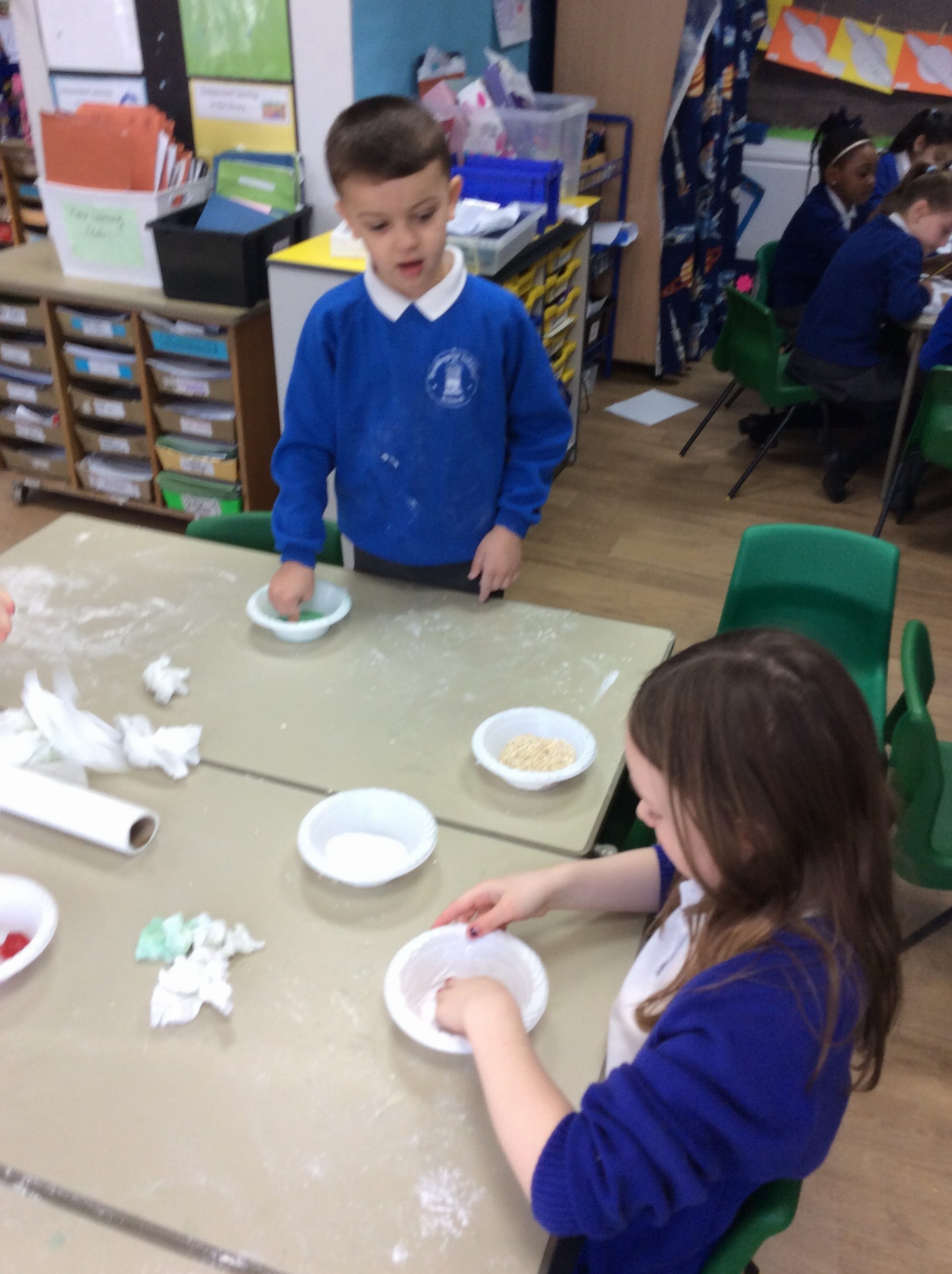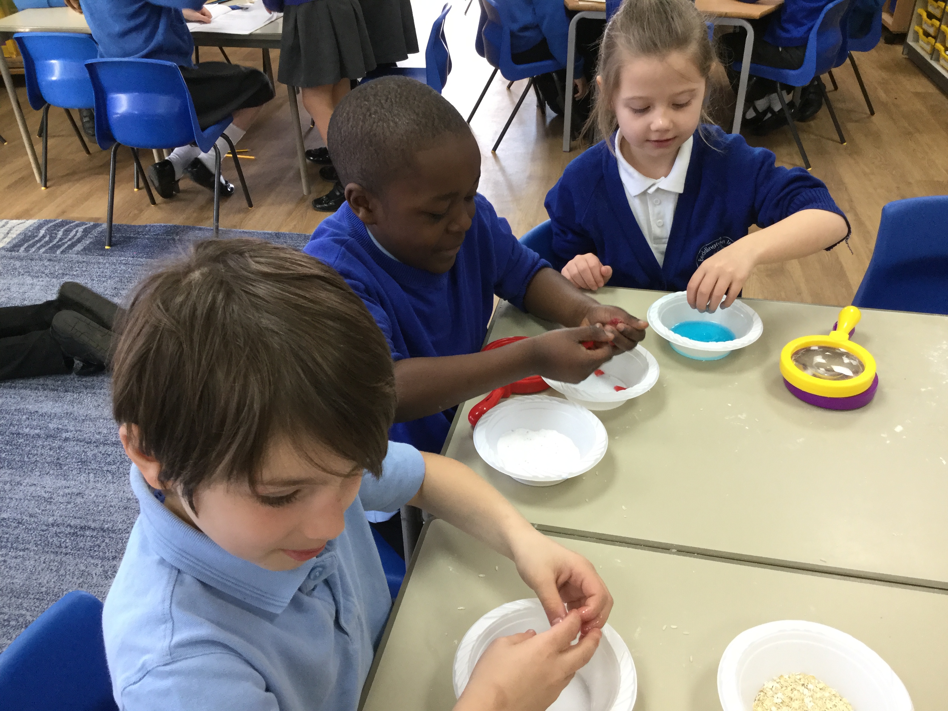 As the Engage stage of Muck Mess and Mixtures the children in Year 2 explored a range of substances. They used their observation skills to see how each one looked, smelt and felt. We got very messy!