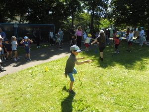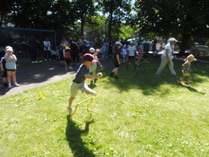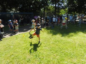 The sun was shining, our grown ups joined in and we all had a lot of fun. Here are a few pictures to show us in action: