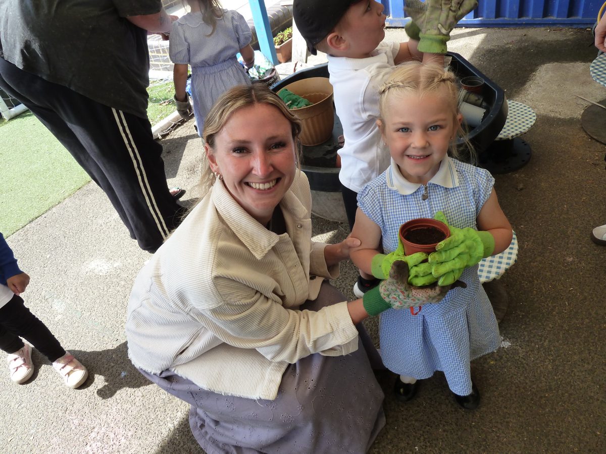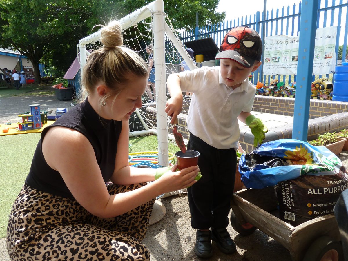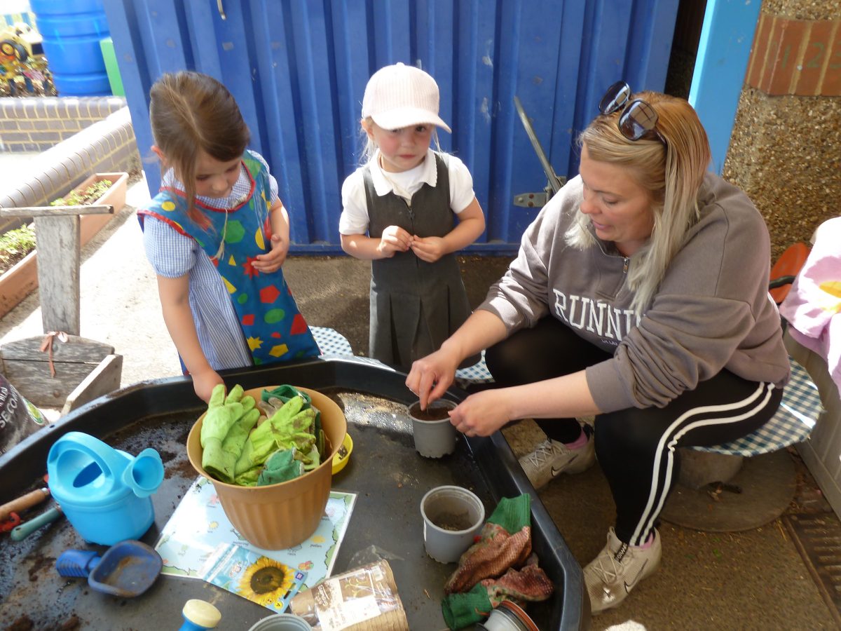 Before half term we welcomed our grown ups into Nursery for the summer Learning Together Session. We planted a sunflower seed, painted a picture of a sunflower, created a symmetrical butterfly and showed off our favourite learning activities. We have enjoyed learning about the world around us, watching the caterpillars grow, pupate and change into butterflies as well as finding out about how plants grow from seeds. We were able to share all our new knowledge with our grown ups. Well done everyone!