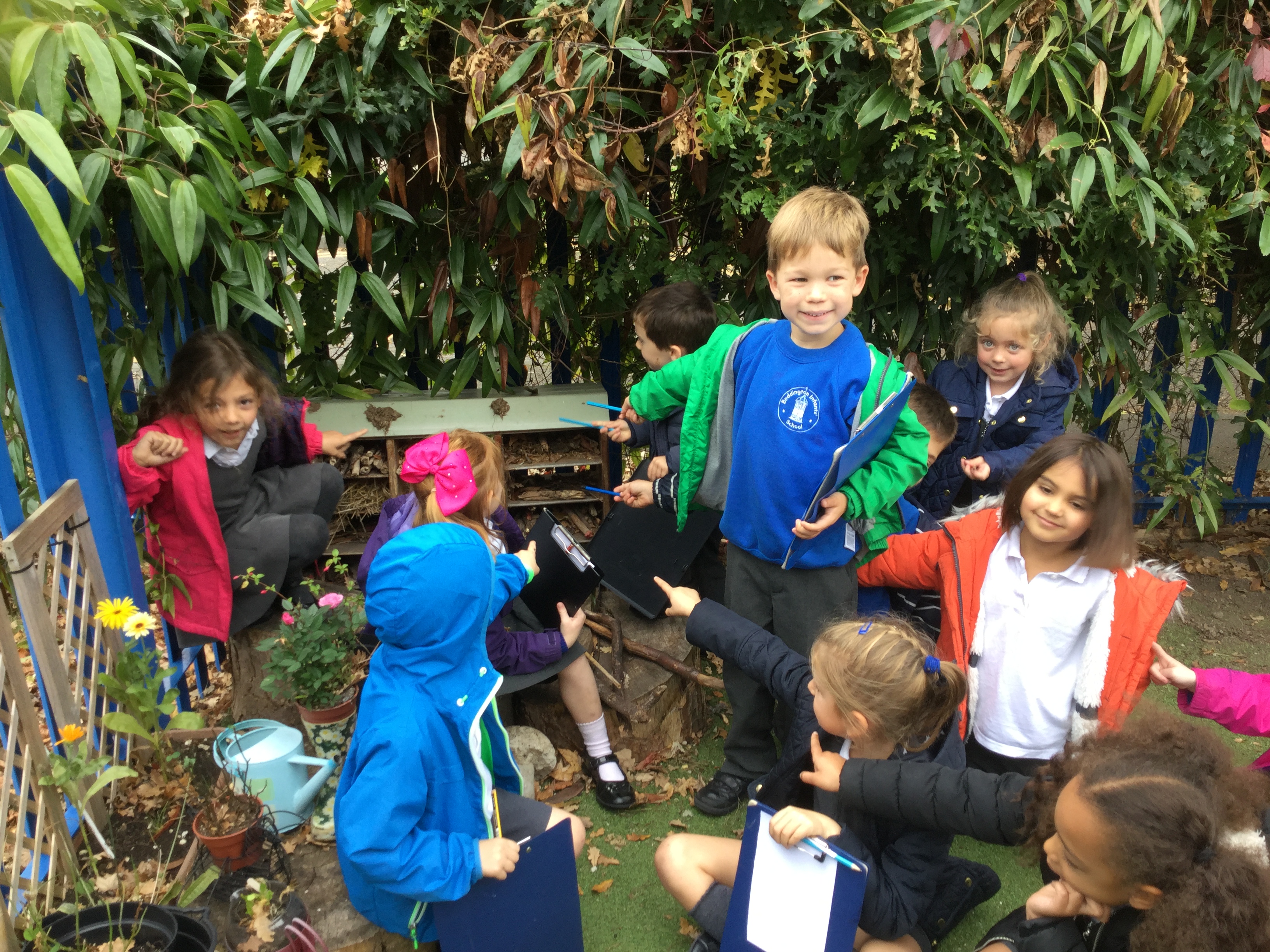 We have been doing so much outside learning this half term. We have particularly been enjoying searching for animal habitats around the school