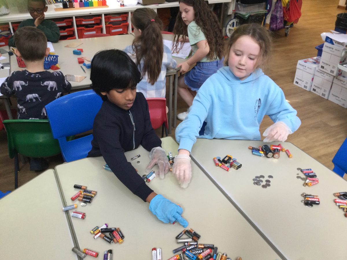 Children who attended the school council made collection boxes and posters to share with their class to help remind everyone to collect as many batteries as possible. Children in Year 2 were Full Members of their Community by co-operating as a team to count all the batteries. Well done everyone!