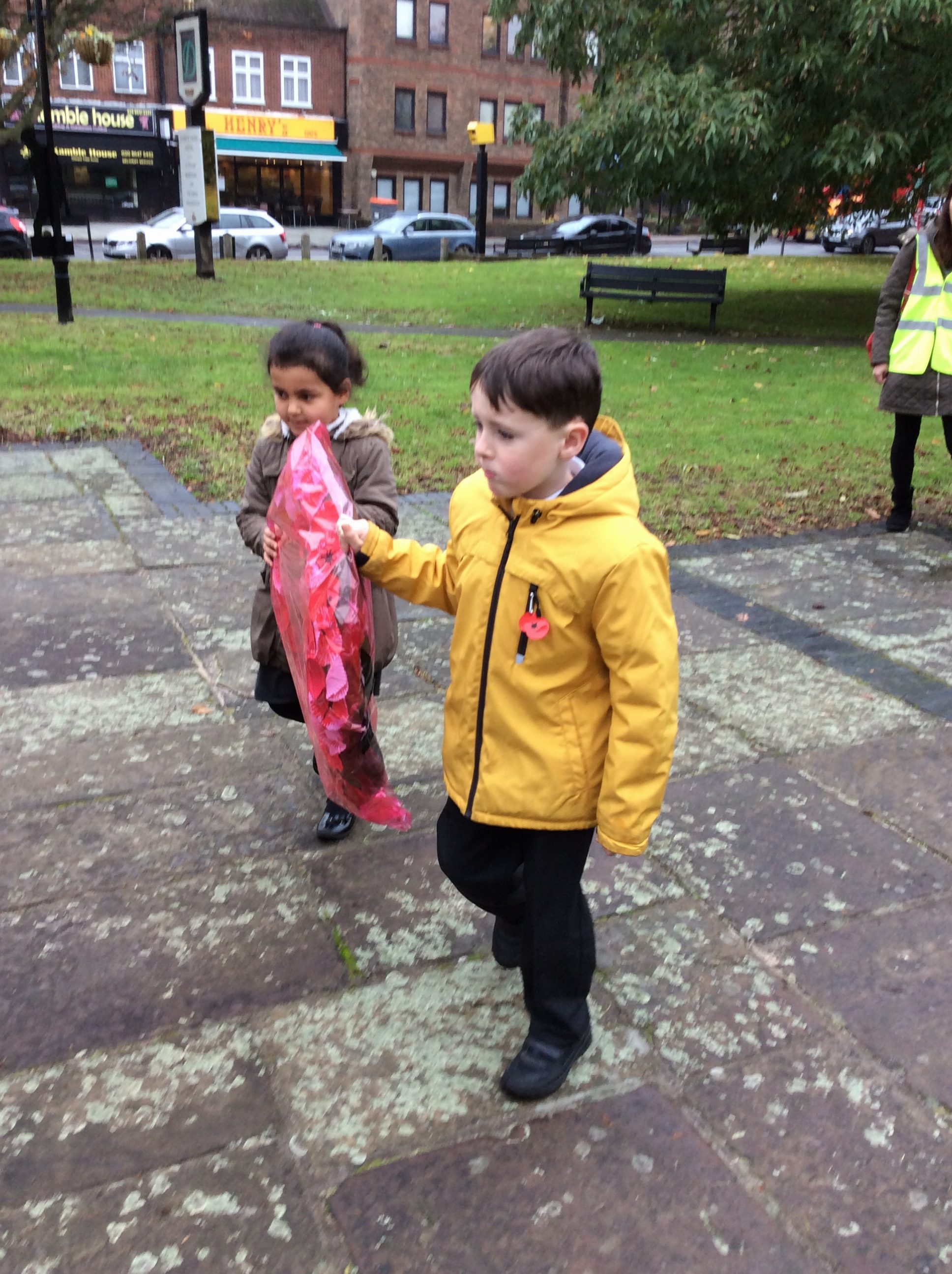 To mark the 100th anniversary of the end of World War One, every child in the school made a poppy. Mrs Hall combined all the poppies to make two very special handmade wreaths. Year 2 have learned about how communities mark Remembrance Day using landmarks such as War Memorials. The Year 2 children took the wreaths to the War Memorial in Wallington on behalf of the whole school.