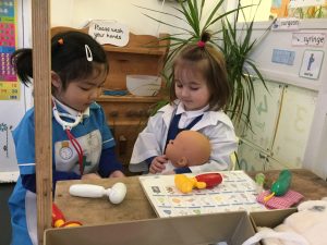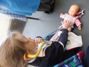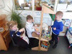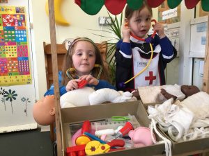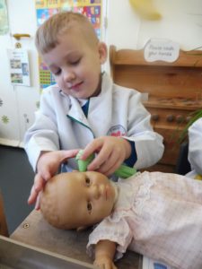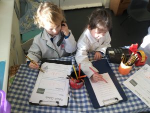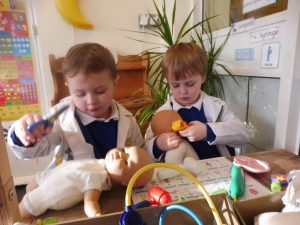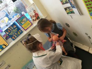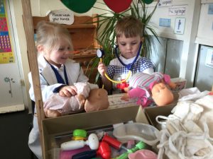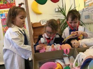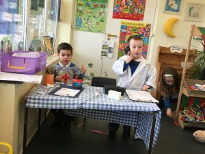 We had lots of fun converting our role play area into a small hospital. We dressed up as doctors and nurses and pretended to take care of our patients. We used different equipment e.g. stethoscopes, injections, plasters, tweezers etc. We also explored the important role of a medical secretary and receptionist. We answered calls, arranged appointments, wrote down patients details and gave prescriptions for medicine.