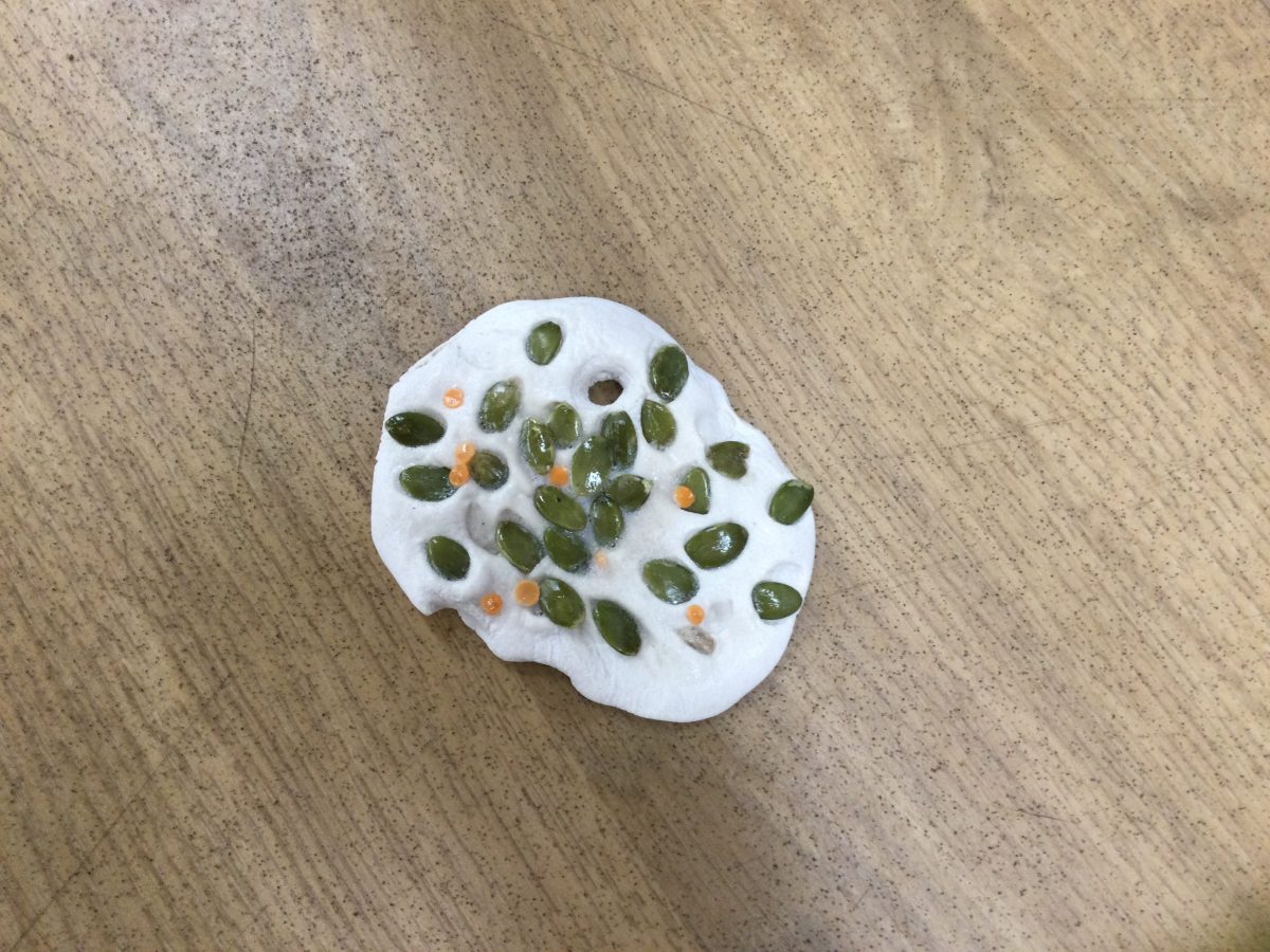 2. Next we rolled the dough into a sphere. We talked about how a sphere is a ball shape. It is a 3D shape.