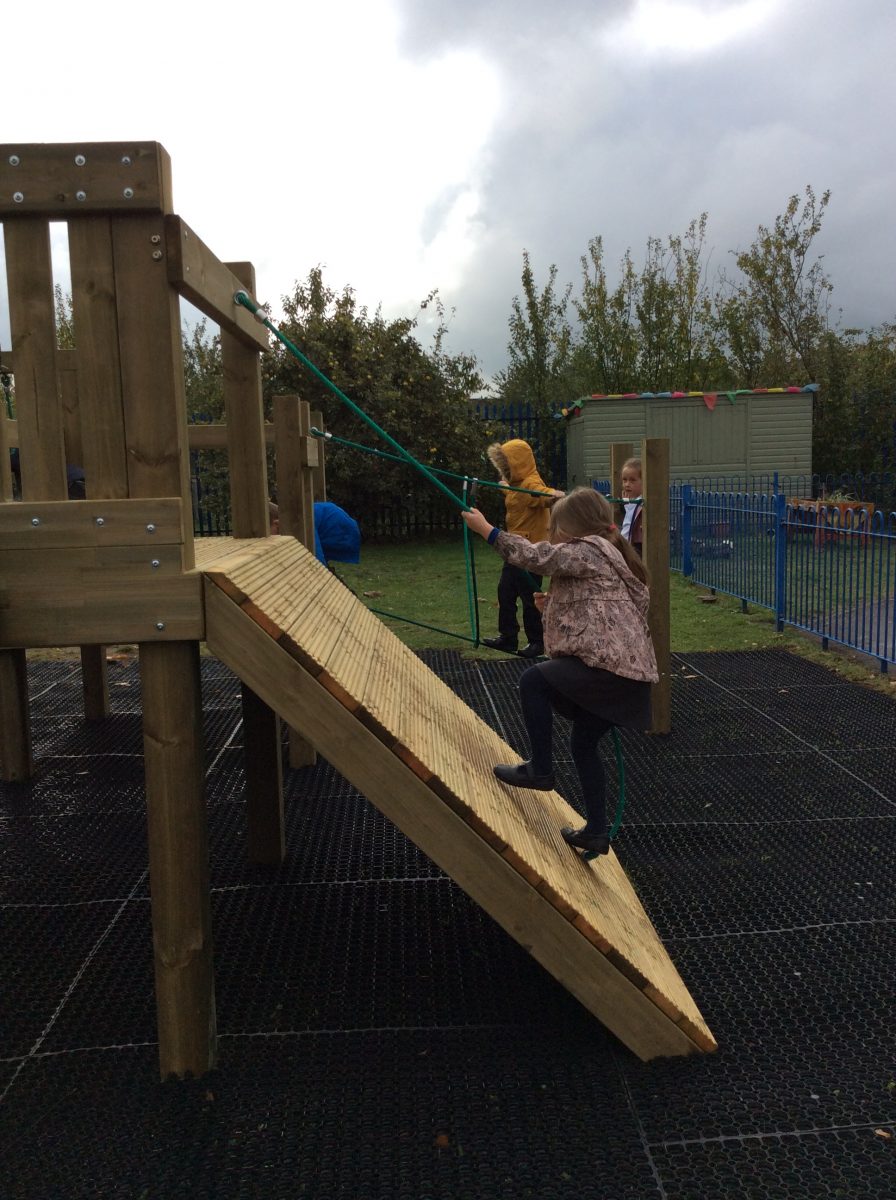 The children have enjoyed seeing the old climbing frame dismantled and the new climbing frame being constructed and are looking forward to exploring all the new features, especially the slide and larger climbing wall area.