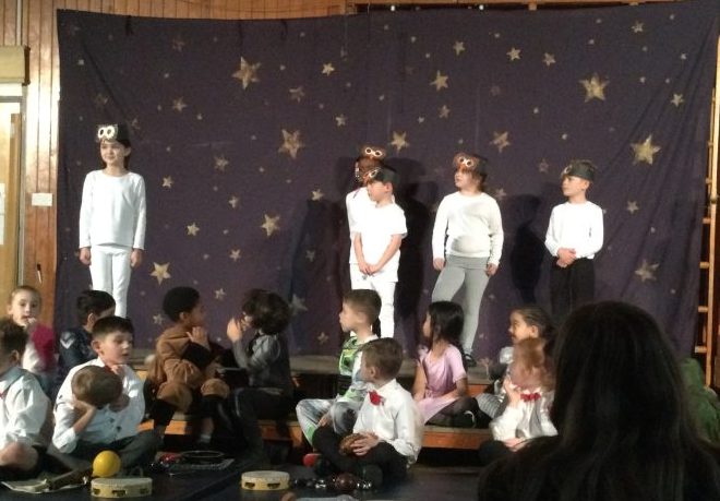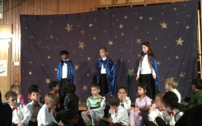 The Year 2 children proudly presented The Starcatchers and The Lost Toys. Each child chose their part in the play to tell the story of how three special Starcactchers helped a group of lost and frightened toys find a new home. The cast included Narrators, Toys, Stars, Owls, Foxes, Badgers, Cats, Father Christmas, Mrs Christmas, Reindeer, The Nativity, The Band and of course the Starcatchers. The Year 2 cohort cooperated as one big ensemble saying their lines, moving on and off the stage and using their amazing singing voices to help the story come alive. The audience enjoyed the show very much! Well done everyone! Nursery’s show was amazing last week. We’re all looking forward to watching the Reception and Year 1 shows this week.