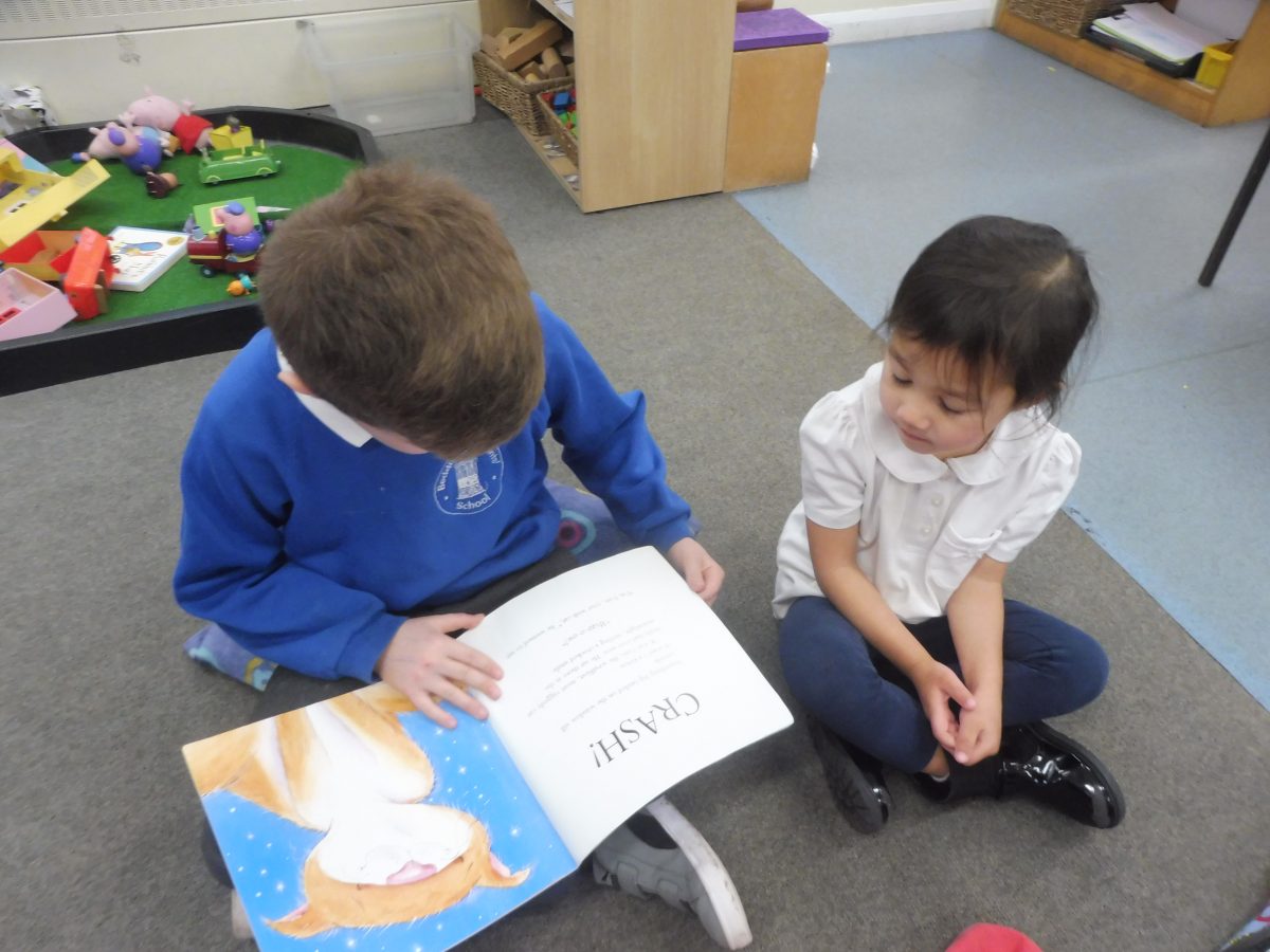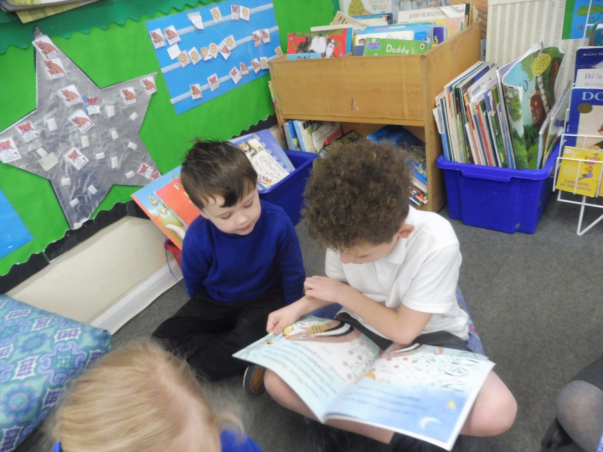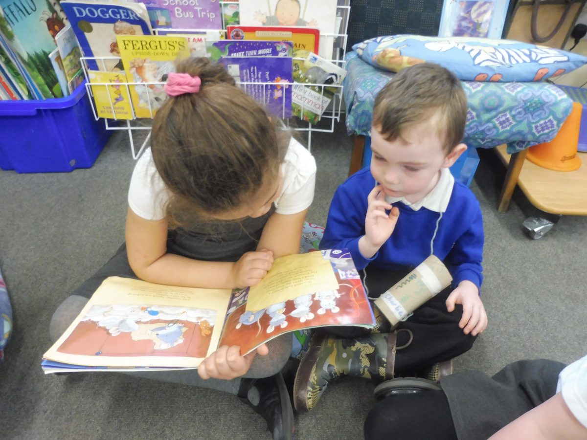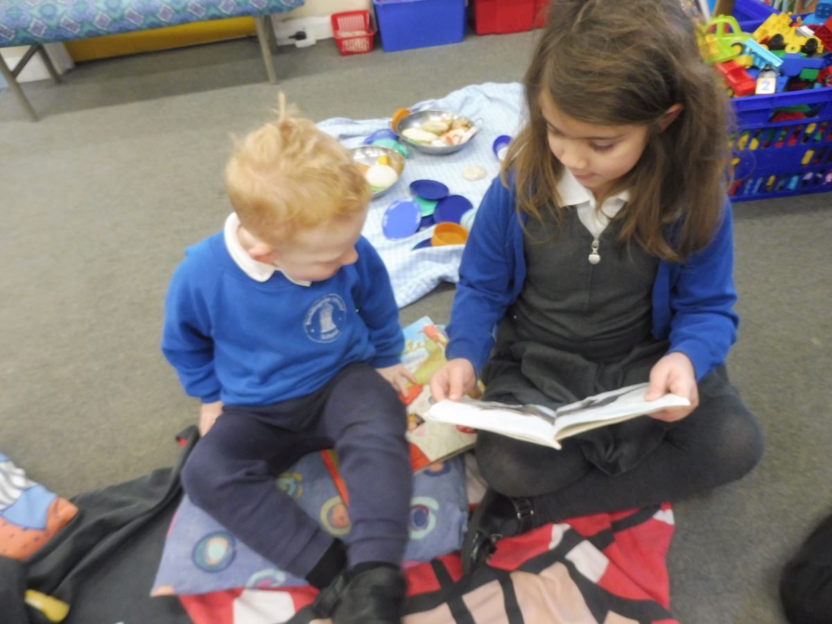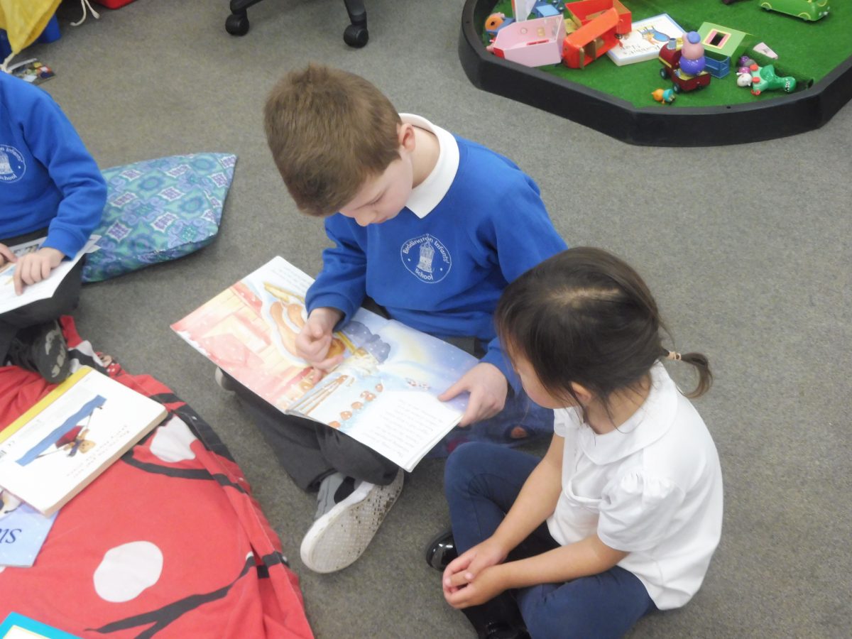 The children in Year 2 have been excited to visit the Nursery and read with the children in Nursery. Each pair of children chose a book they would like to share. The Year 2 children then read to their Nursery partner. The grown-ups in the Nursery were impressed by how confidently and professionally the Year 2 children read to their new friends. The Nursery children demonstrated their amazing listening and attention skills, thoroughly enjoying the whole experience. All the other children in Year 2 and the Nursery are really looking forward to when it is their turn. How lucky we are to be part of such a great learning community!