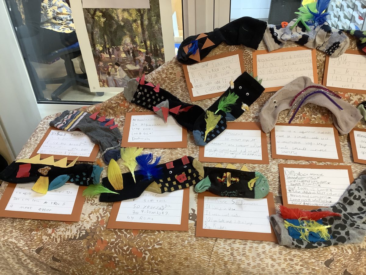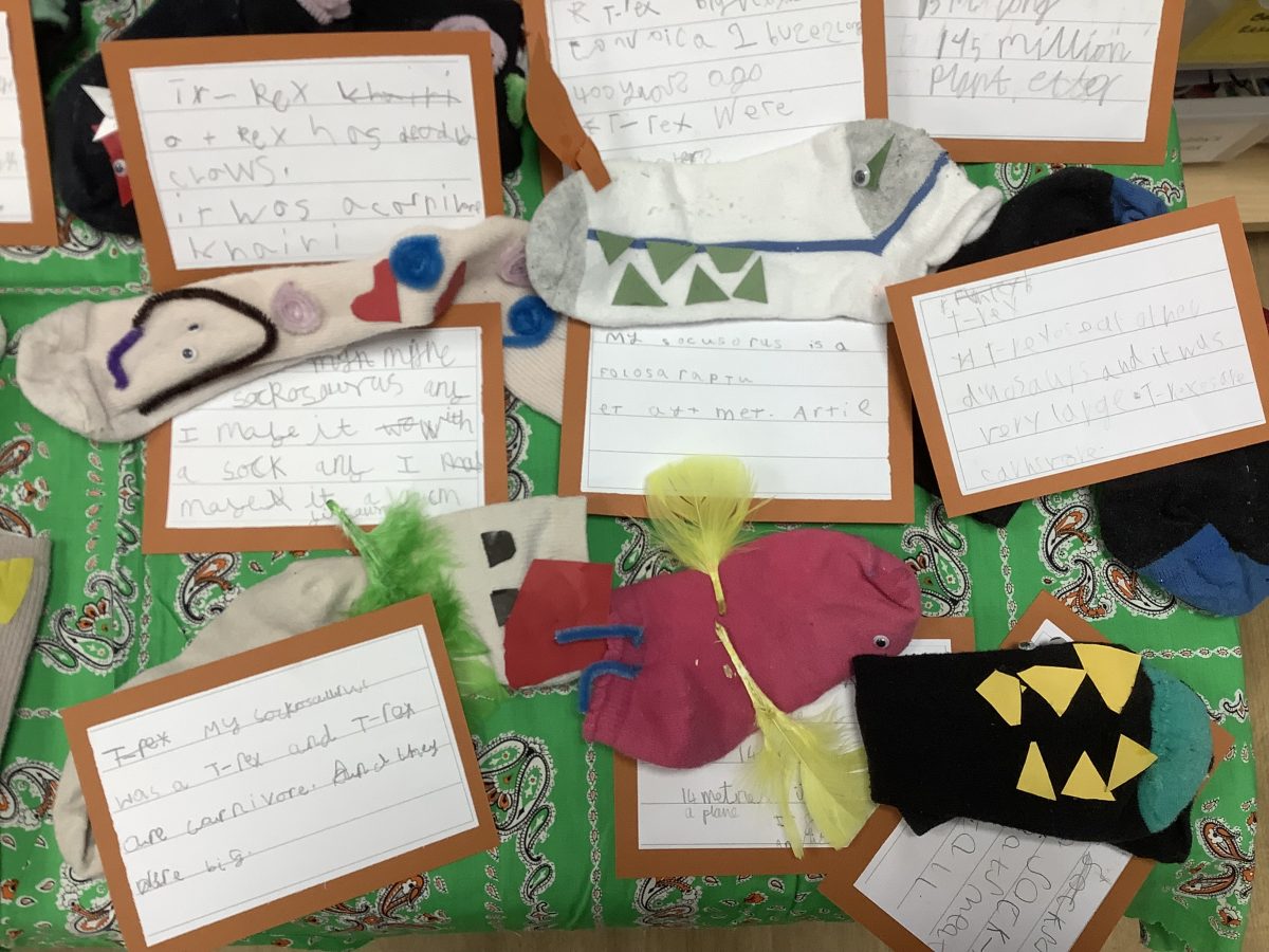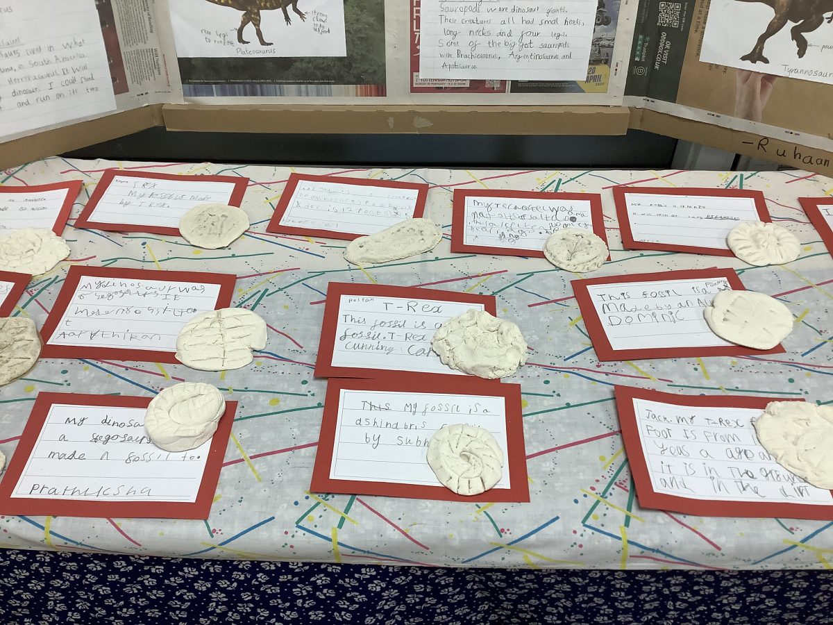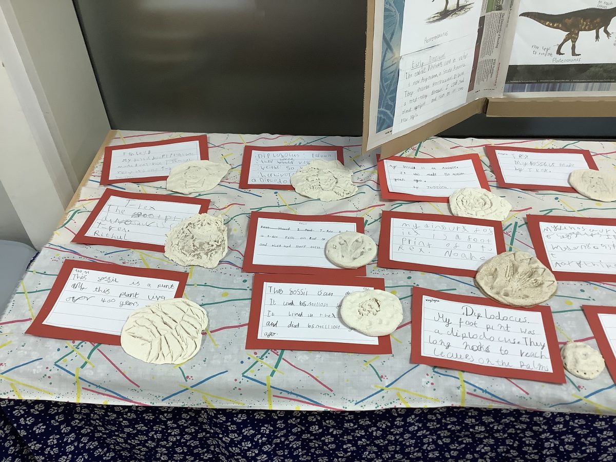 The children in Year 2 were delighted to set up their artifacts for their dinosaur museum. Each child created a salt dough fossil and sock puppet sockosaurus. The children made information labels about their exhibits so visitors would learn lots of new facts about dinosaurs. They invited their family and friends and were delighted when the museum finally opened.