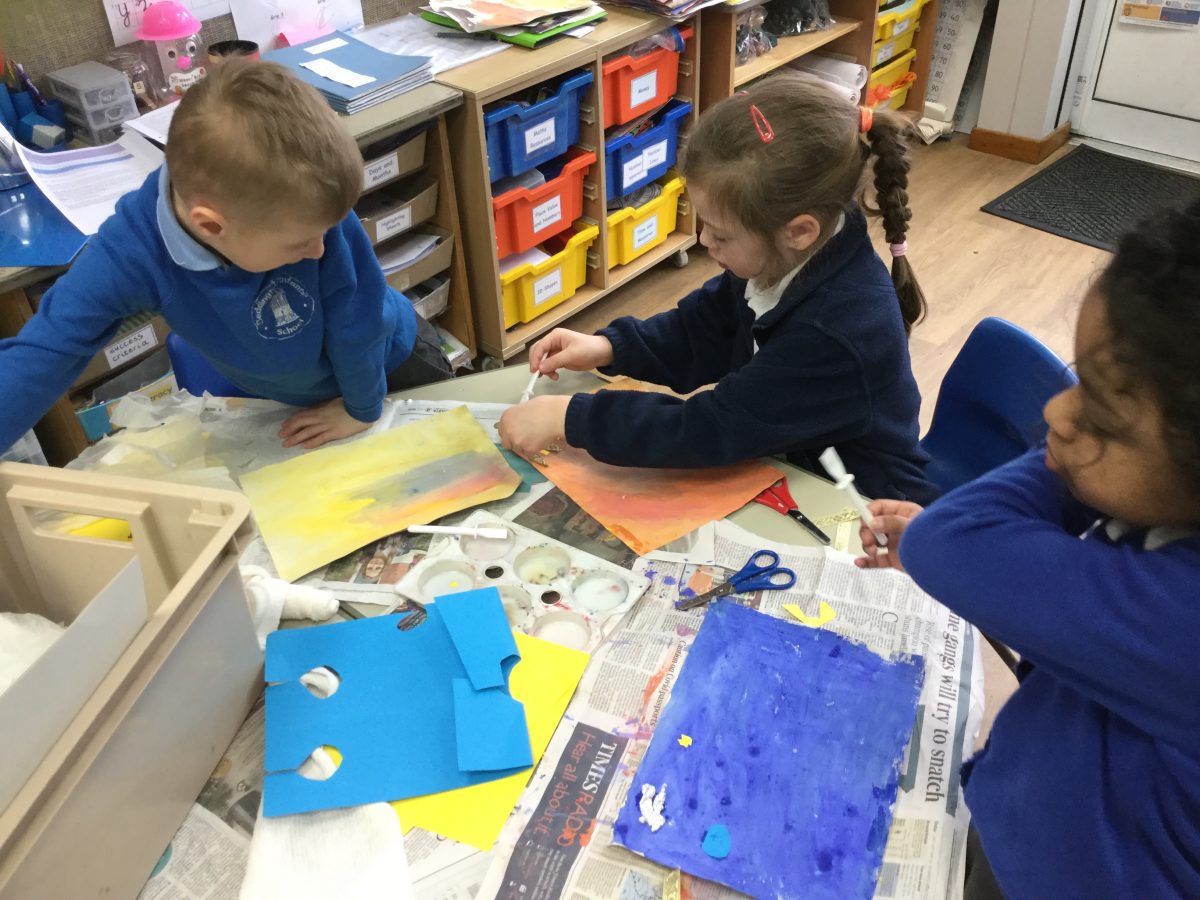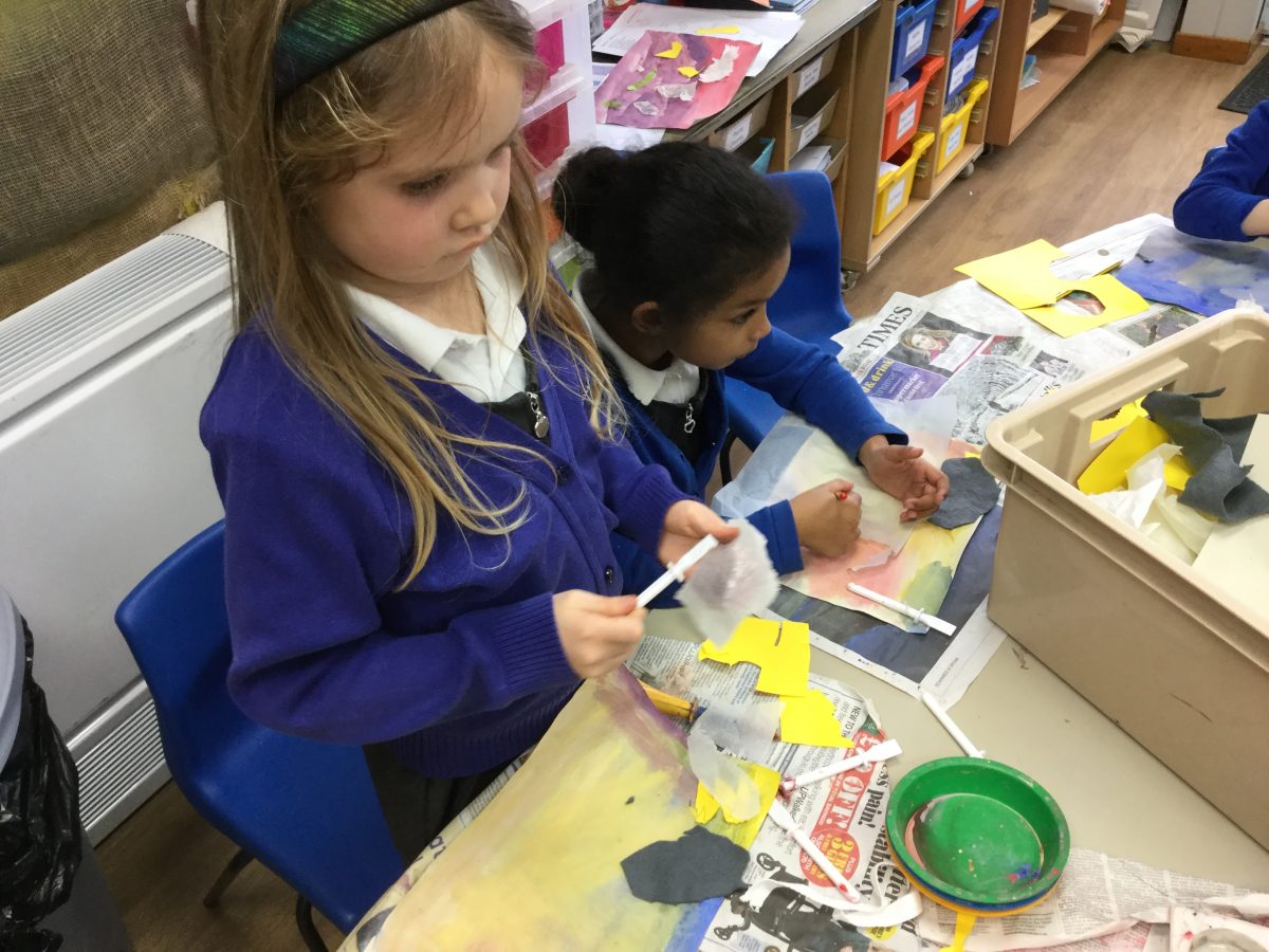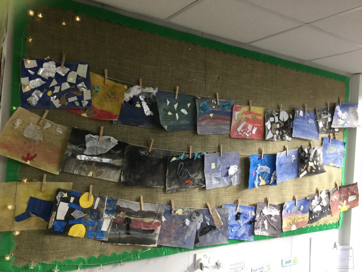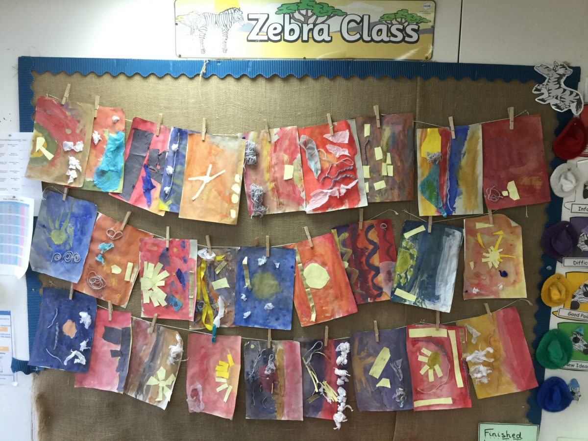 Children in Year One have been investigating the beauty that can be observed in seasons and weather. We used this knowledge and creativity to create mixed media sky art.