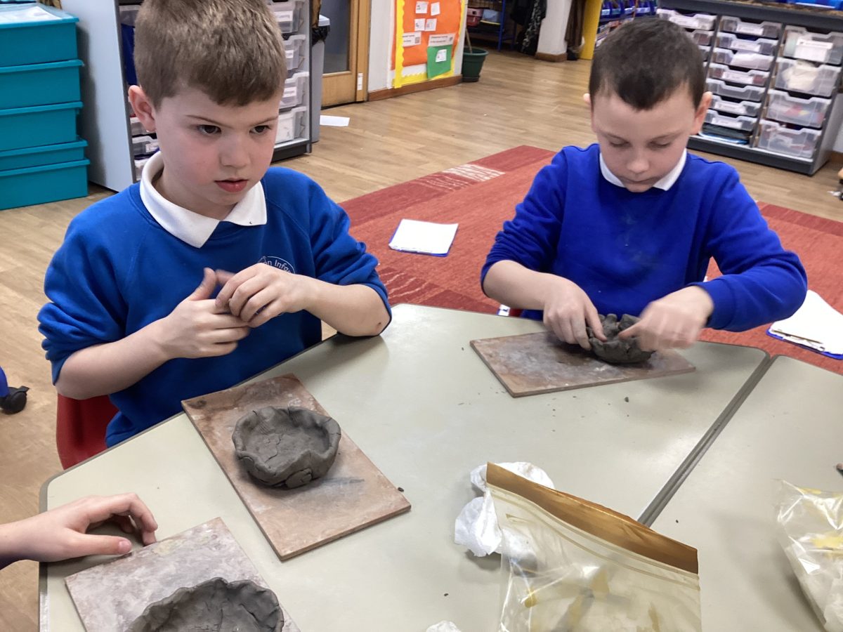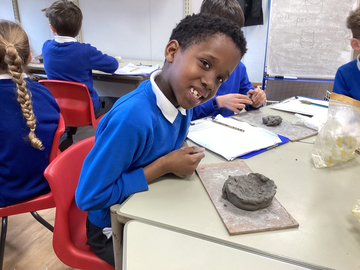 As part of their topic Muck, Mess and Mixtures the children in Year 2 have been learning about famous artists. They have explored the mediums of clay, charcoal and paint, whilst learning new techniques. The used clay to make a pinch pot and coil pot. They also explored images of sculptures created by Barbara Hepworth. They used the familiar medium of paint to explore printing patterns like Alma Thomas. The children learned new techniques to use when drawing with charcoal, such as cross hatching and smudging. They also enjoyed looking at the very detailed pictures Lowry drew using charcoal.