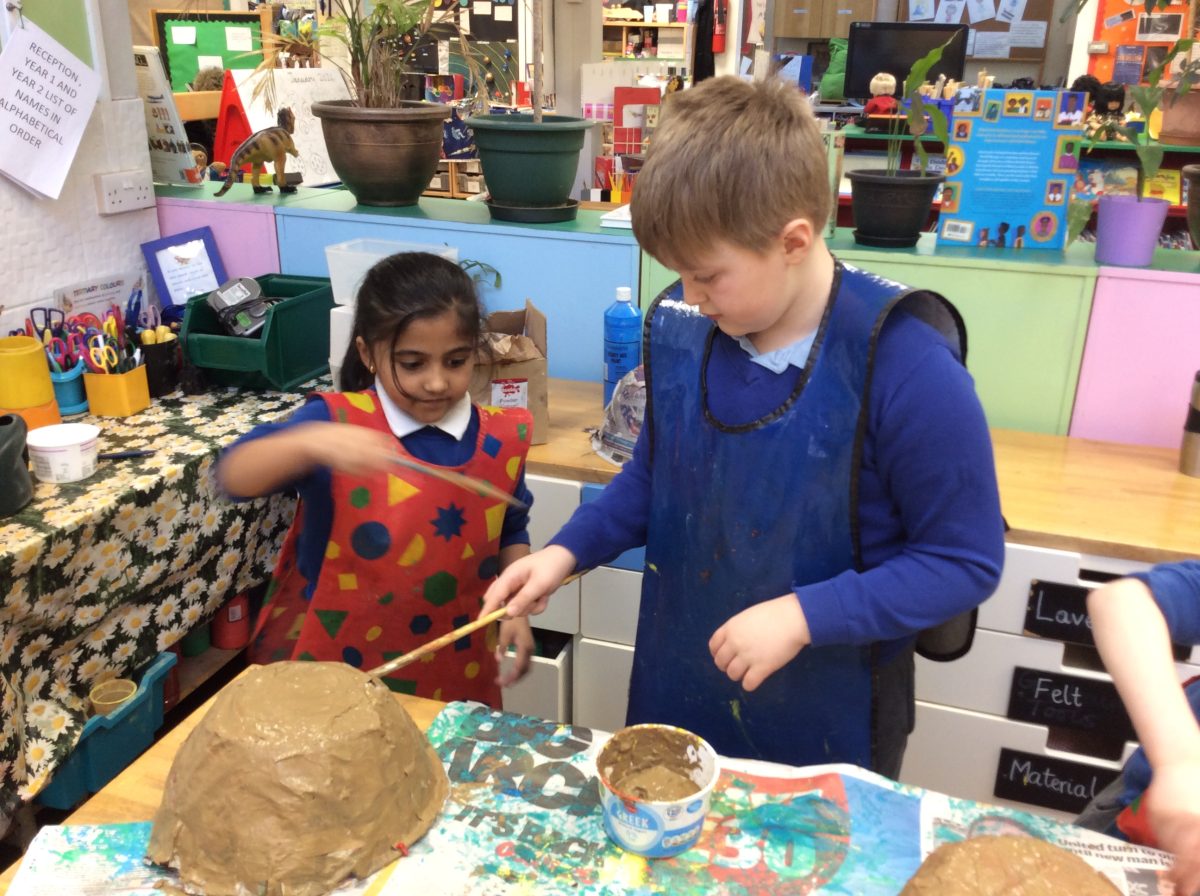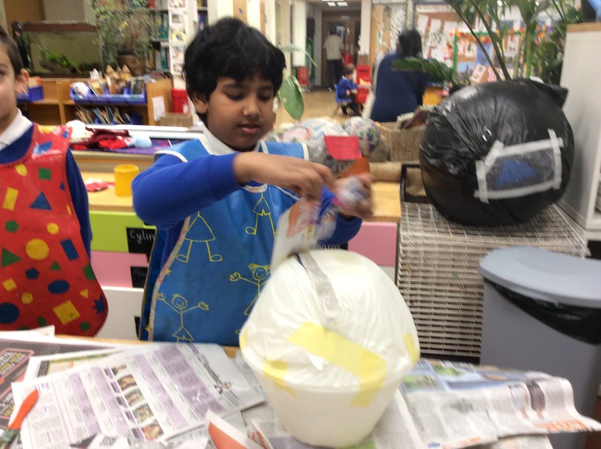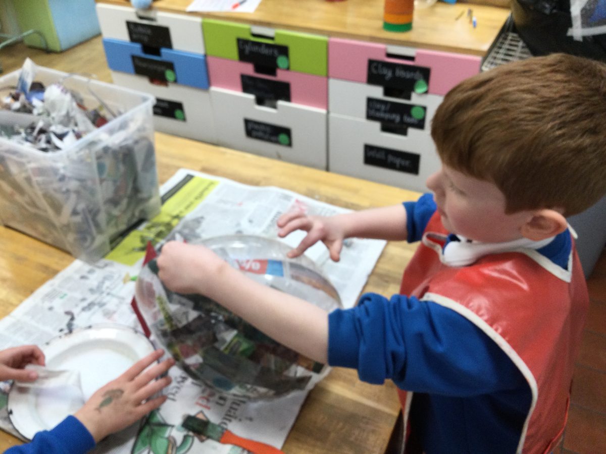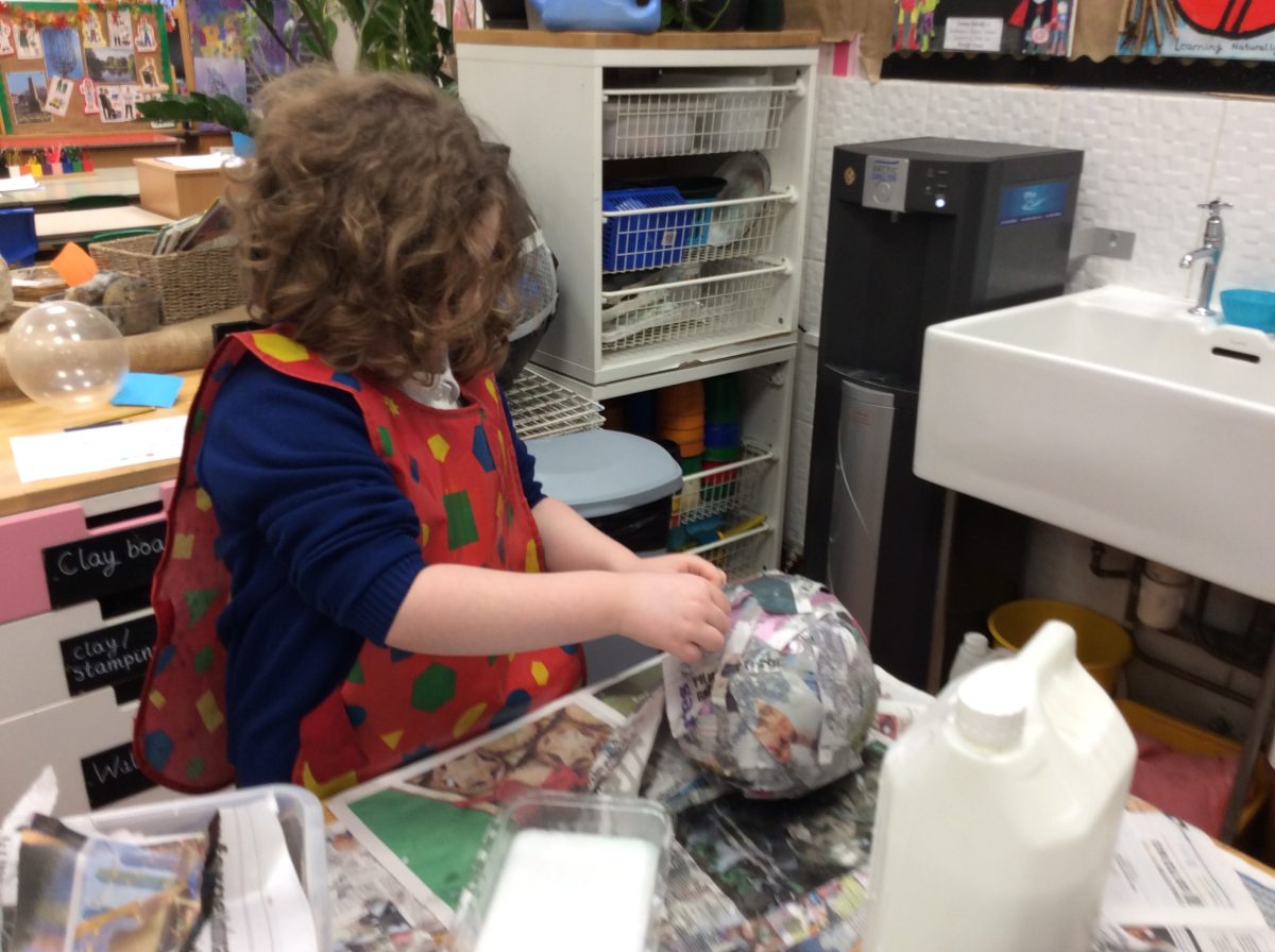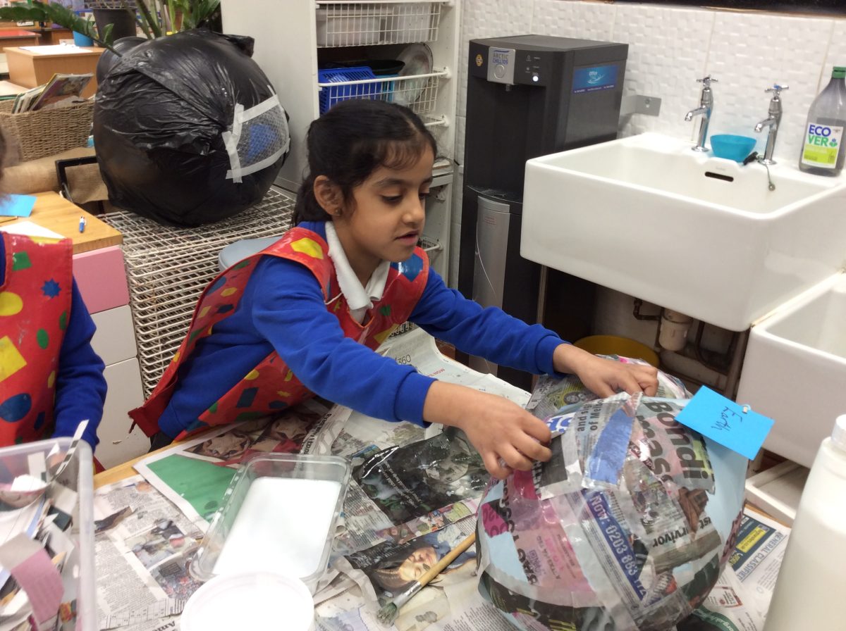 Having explored how the planets orbit the sun, the children in Year 2 co-operated as a year group, using the technique of papier mache to create their own Solar System.