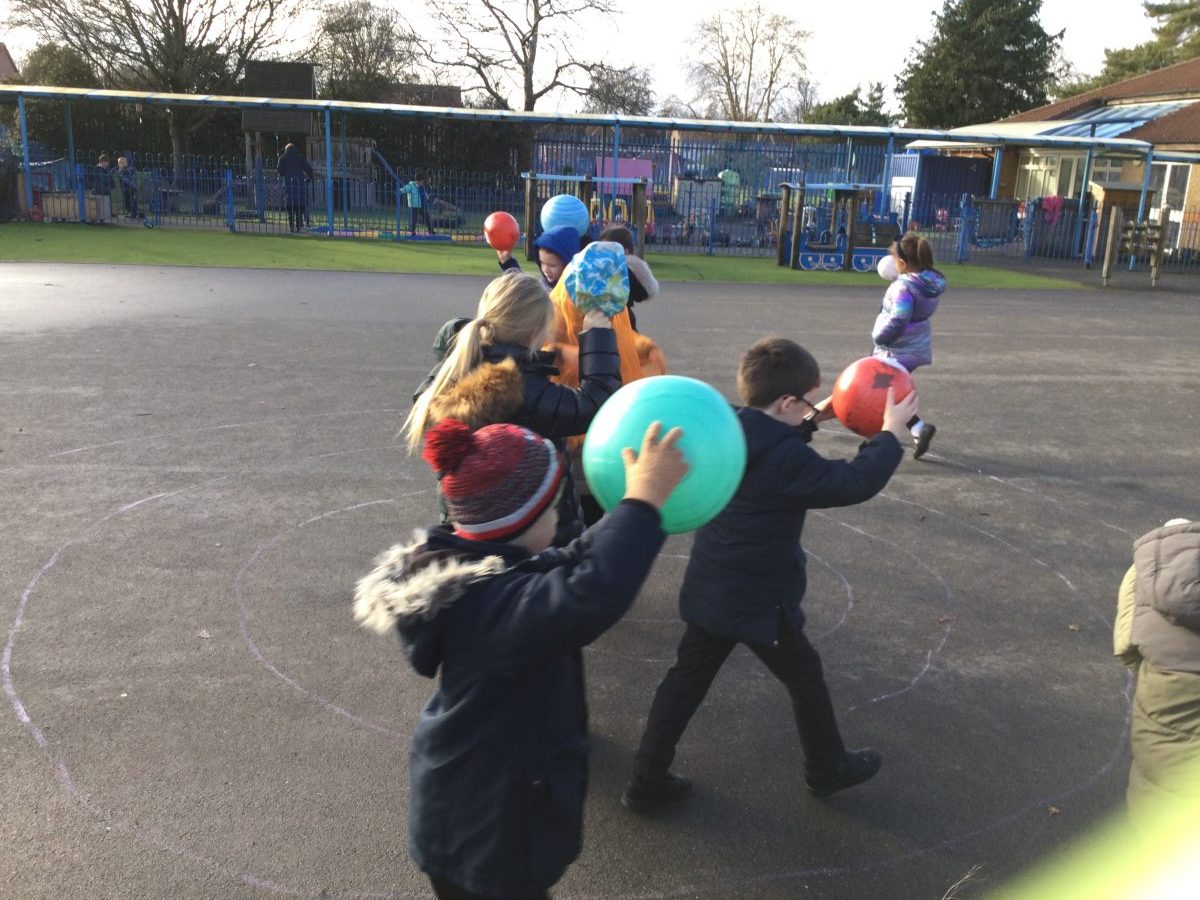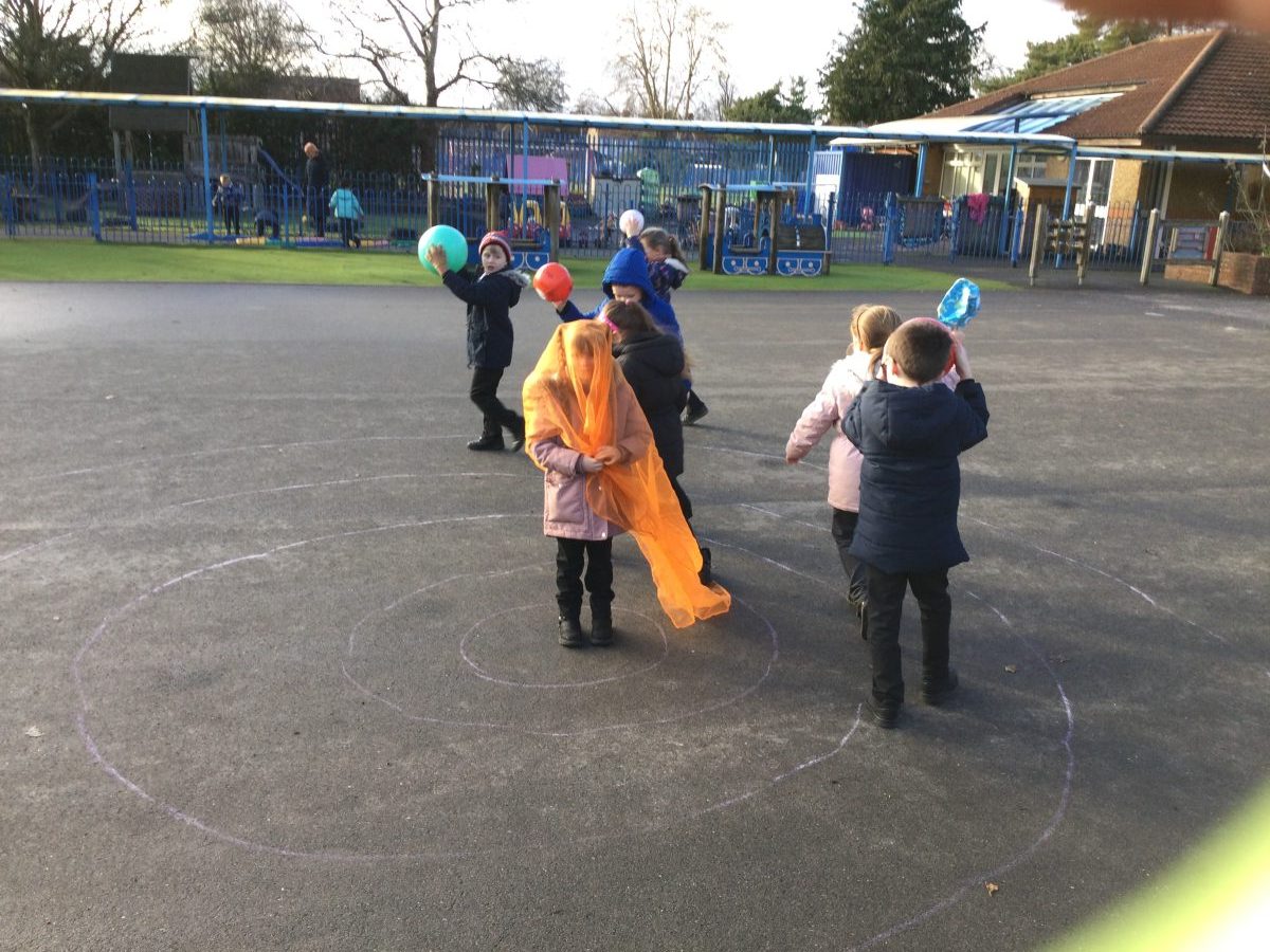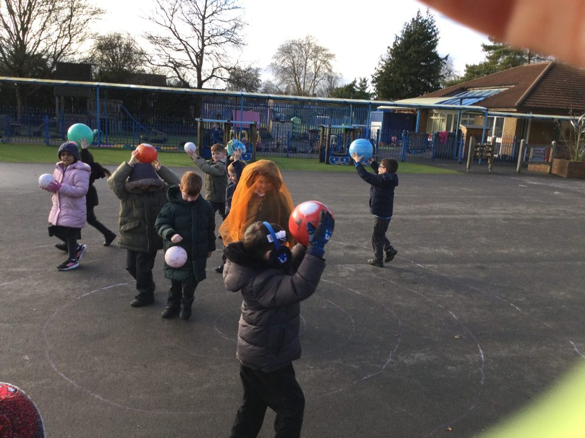 The children used inflatable planets to explore how the distance from the Sun affects how long it takes the planet to orbit the sun.