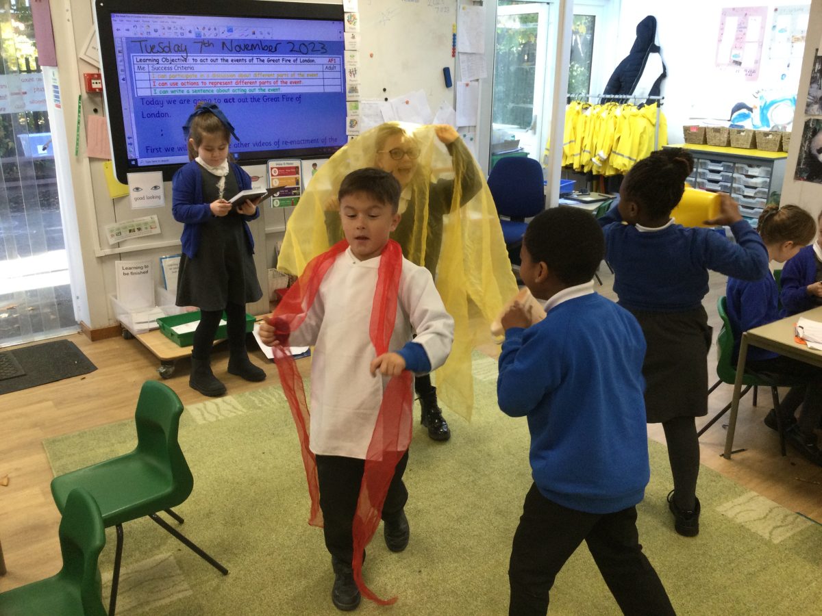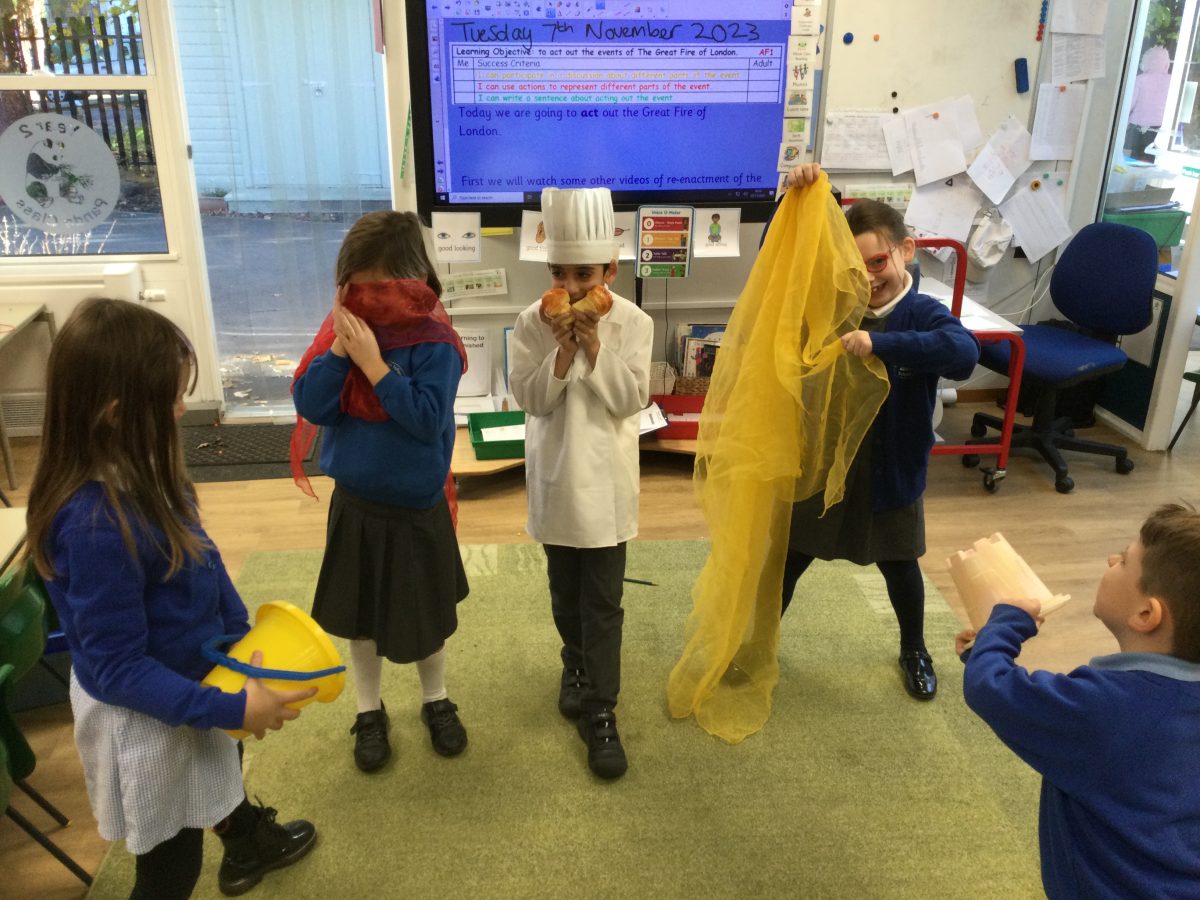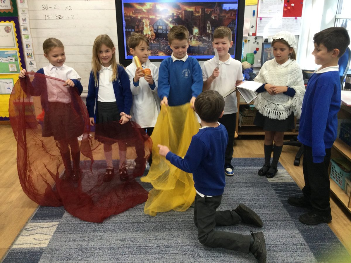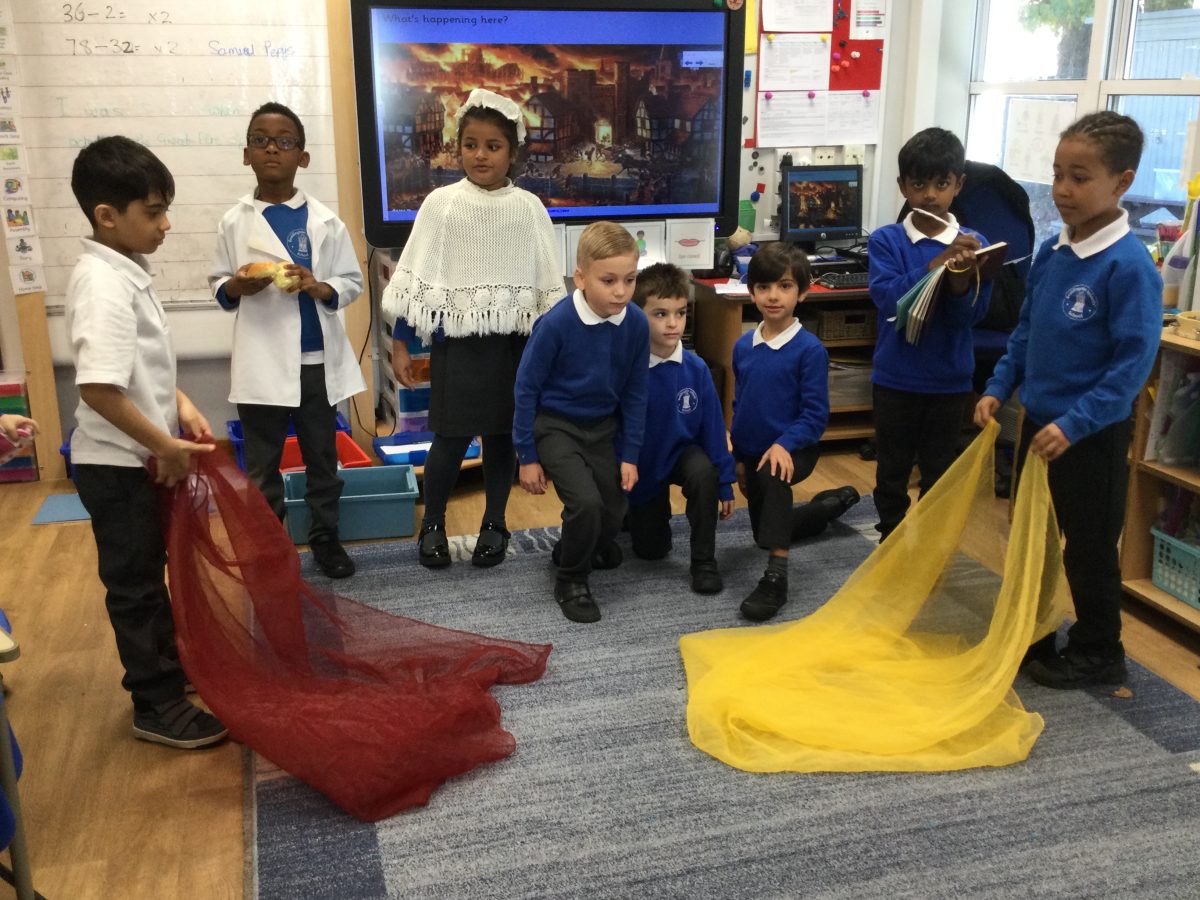 The children in Year 2 have enjoyed being historians, learning about London in the past. They read lots of books and watched short clips to learn about The Great Fire of London. In small groups, they used role play to show how the fire started and how people responded to the fire in 1666. The children looked at the sources of evidence we have about The Great Fire of London, such as artwork and Samuel Pepys diary. They then created their own Great Fire of London inspired artwork using a range of techniques, such as paint wash and collage. Finally they used all their new knowledge to write a diary just like Samuel Pepys!