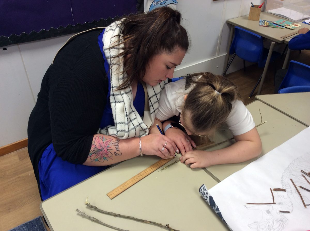 Measuring in this way helps the children to understand how to use and apply measuring. Rather than measuring a line on a piece of paper they are having conversations about how best to measure a twig that may not be completely straight. The artwork is great to look at and is a subliminal reminder in the learning environment of how to measure accurately and why it is a useful skill. Working in this way leads to deeper learning that stays with the child – and it’s fun for everyone involved!