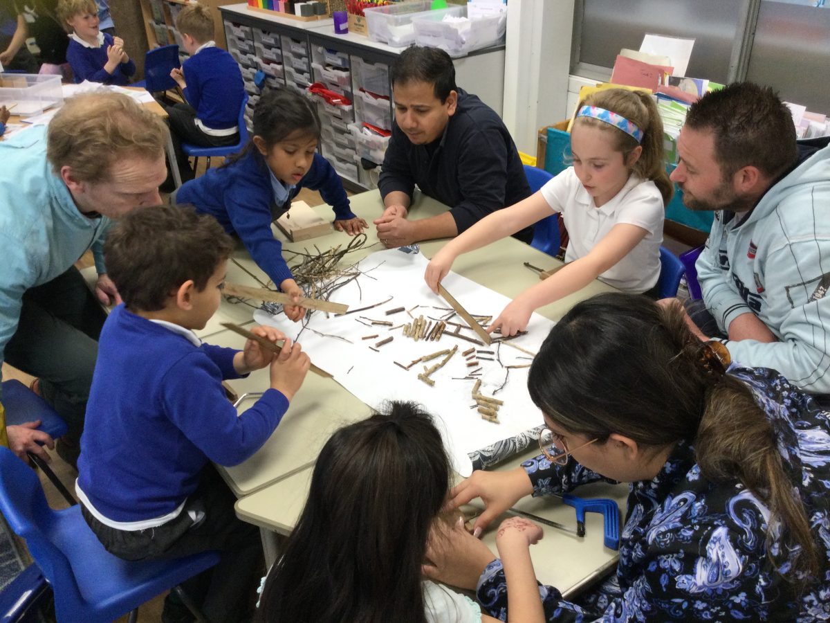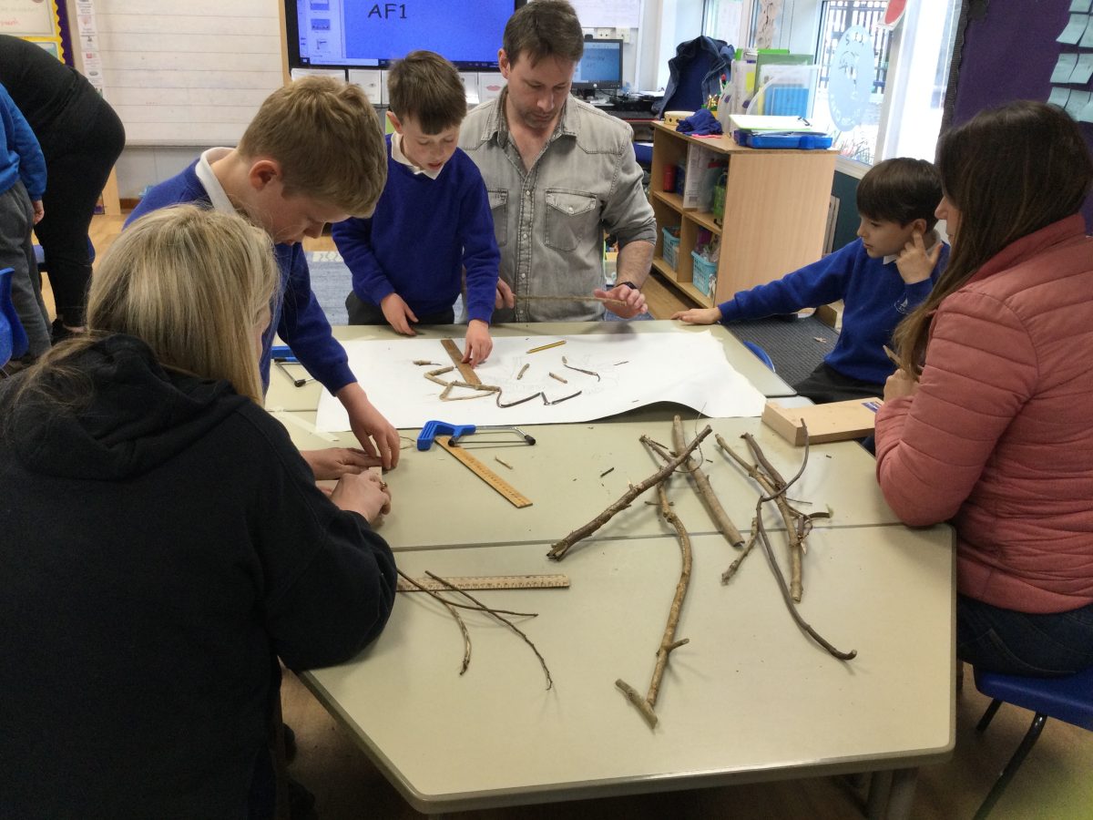 One parent commented: ‘The session was very useful to go over expectations for Maths and DT for Year 2. We both really enjoyed the activity together – lots of learning in a fun and creative way using natural materials.’
