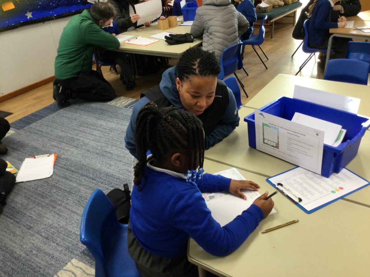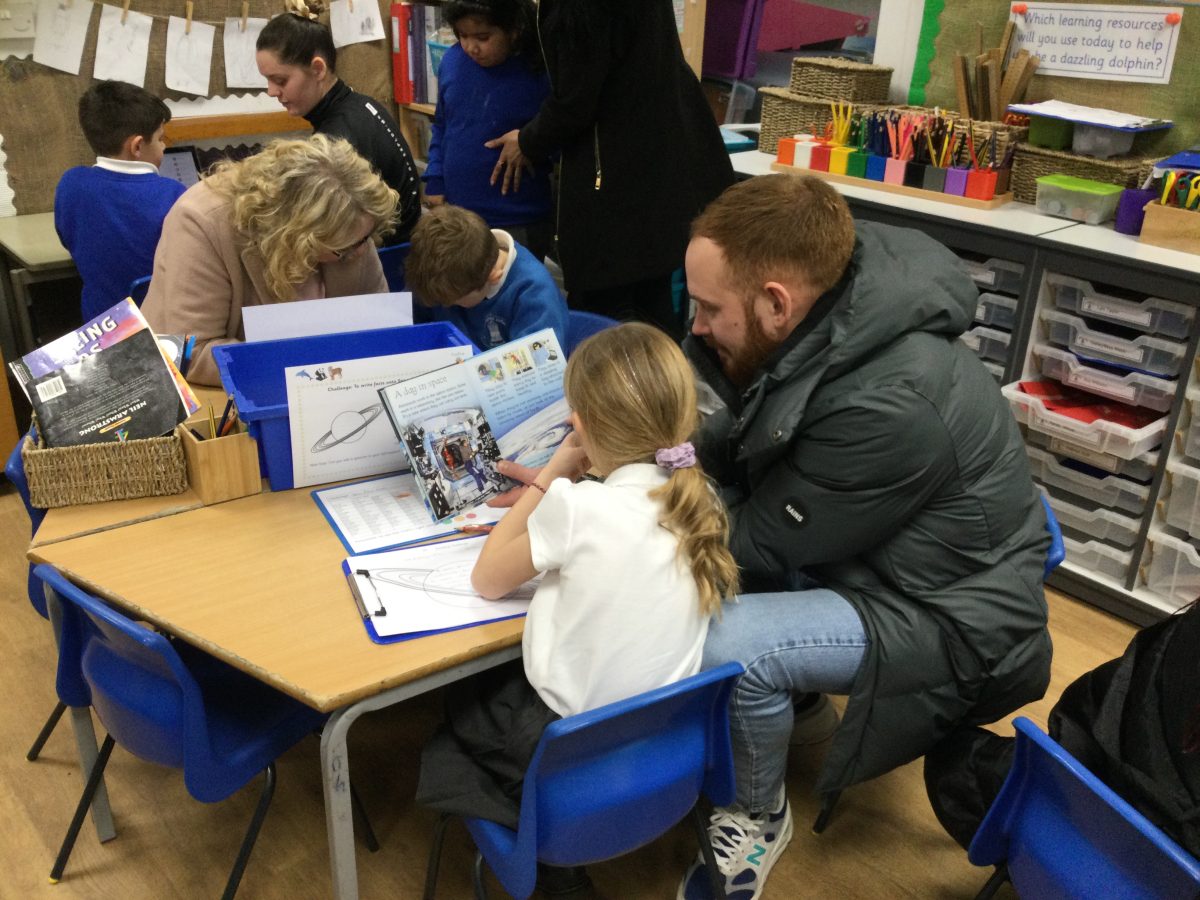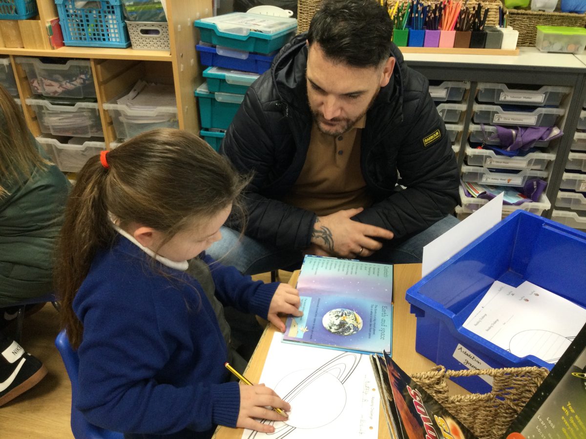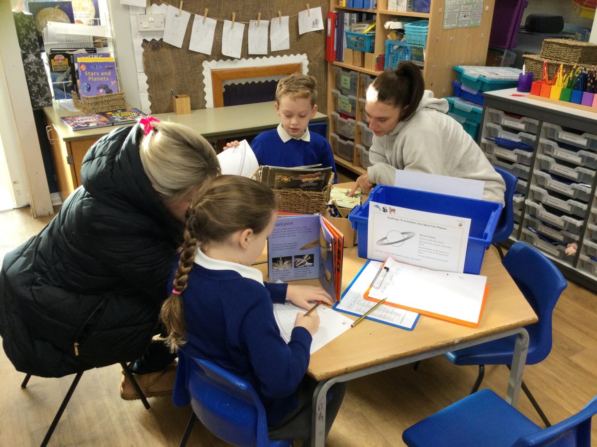 The children in Year 2 were excited to invite their grown-ups into school for the Space Reading Learning Together Session. The grown-ups learned about how reading skills are taught and developed in school. Then the grown-ups and children learned together to complete reading challenges all based on Space. Everyone really enjoyed developing their reading skills.