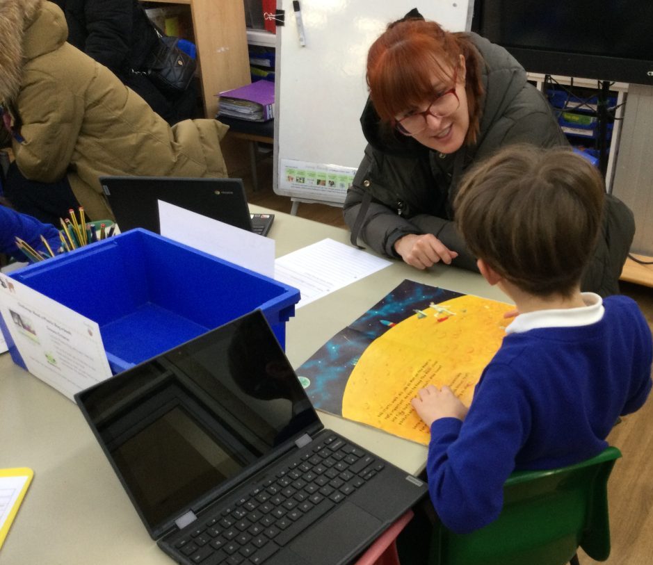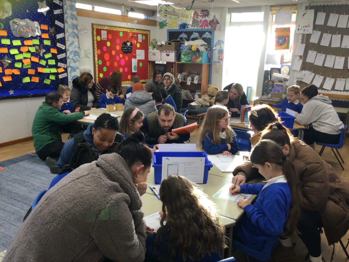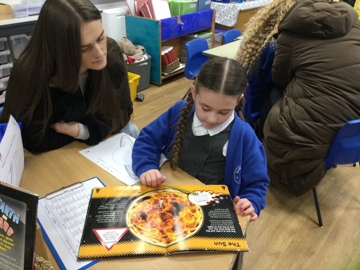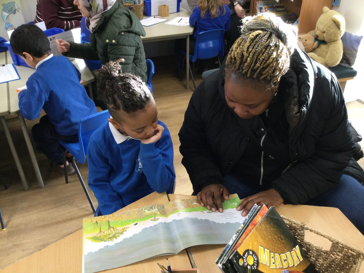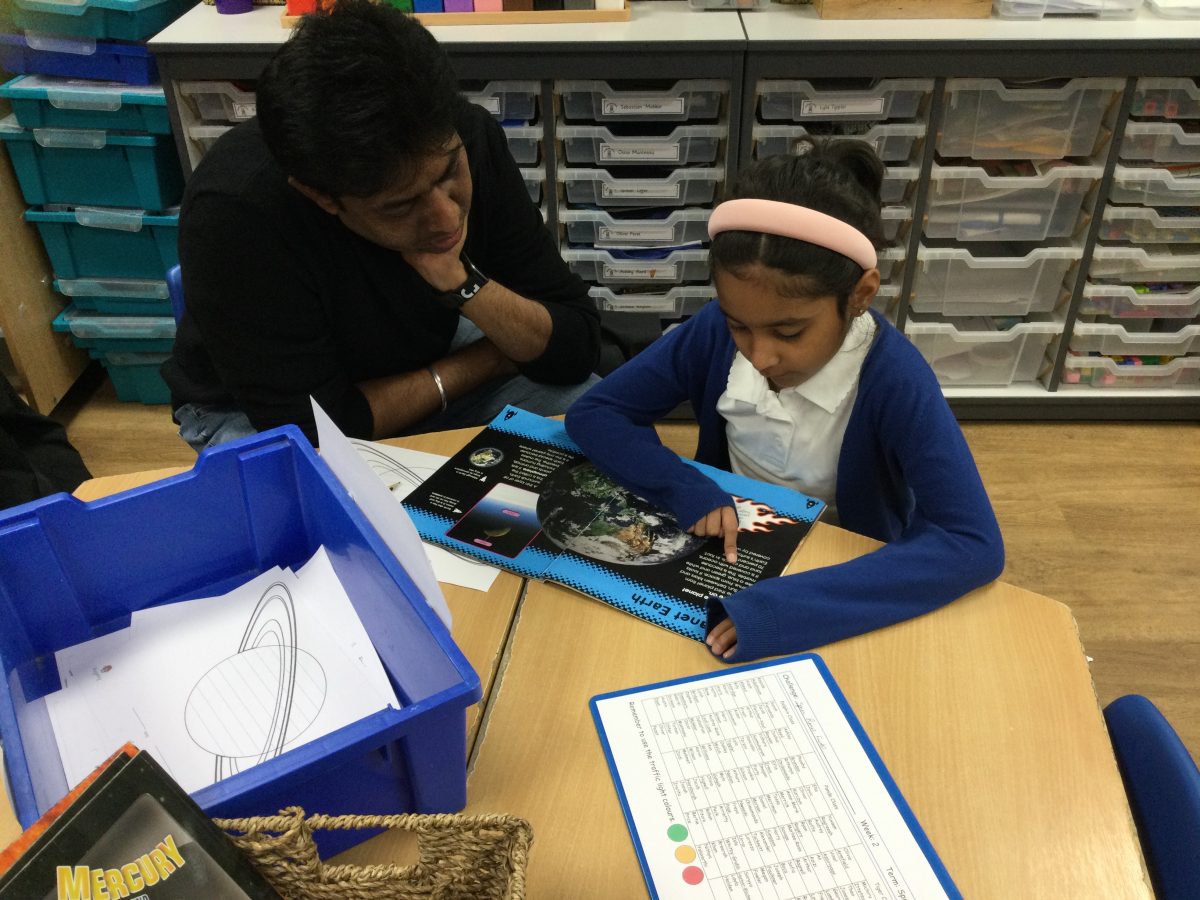 The children in Year 2 were excited to invite their grown-ups into school for the Space Reading Learning Together Session. The grown-ups learned about how reading skills are taught and developed in school. Then the grown-ups and children learned together to complete reading challenges all based on Space. Everyone really enjoyed developing their reading skills.
