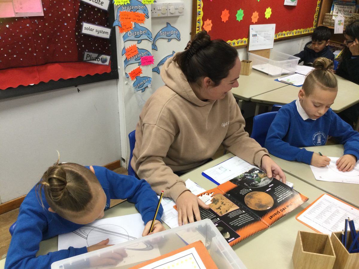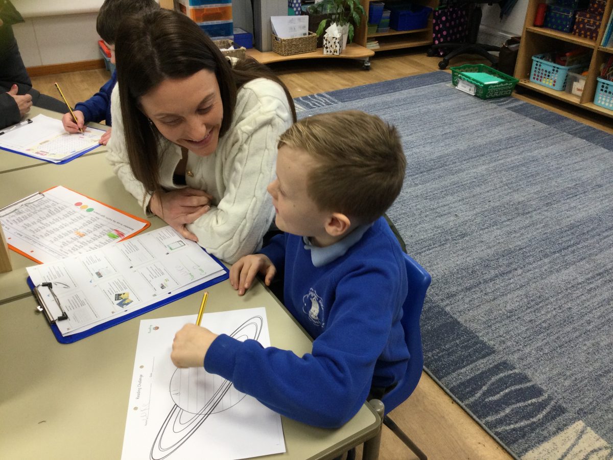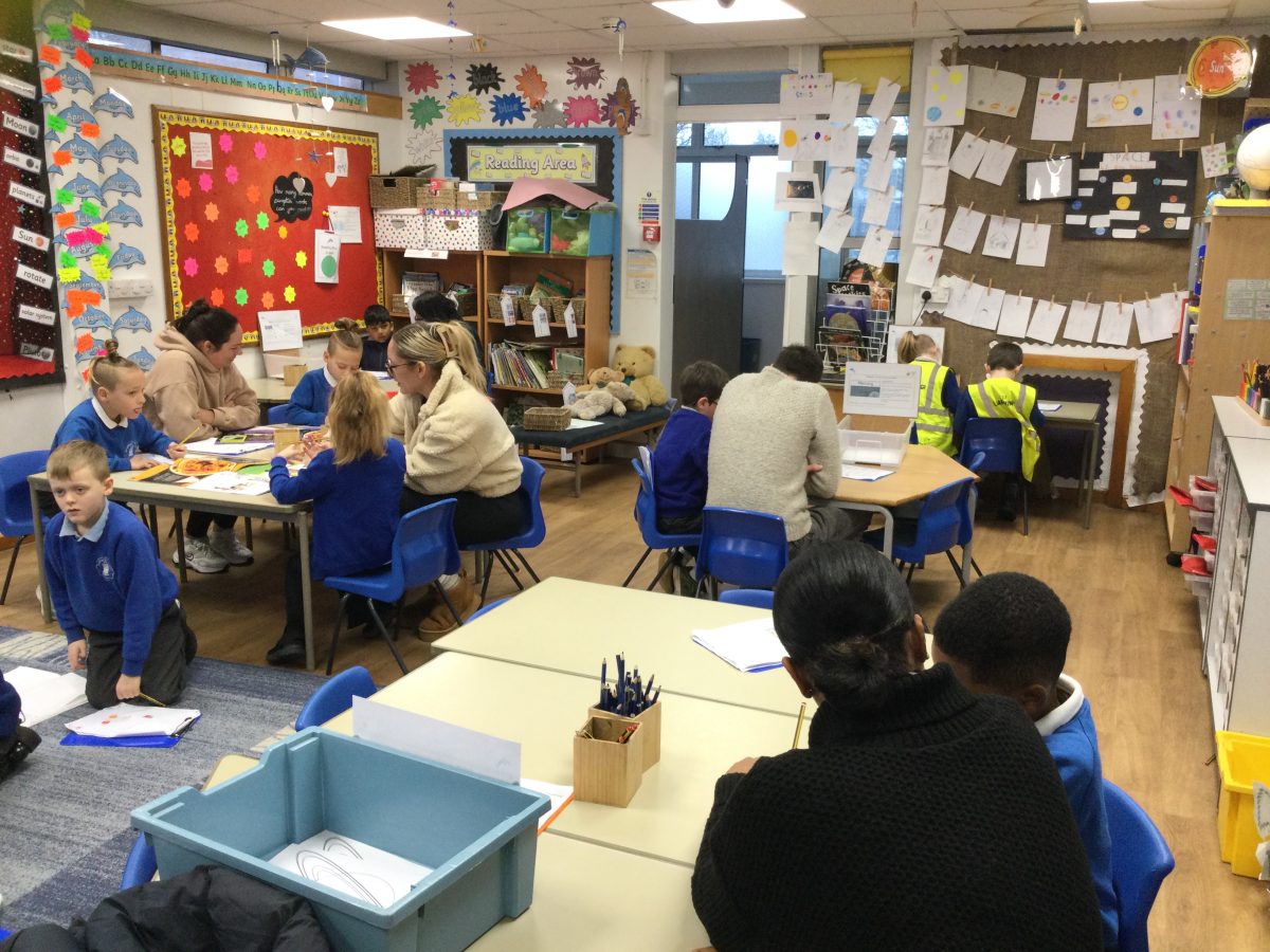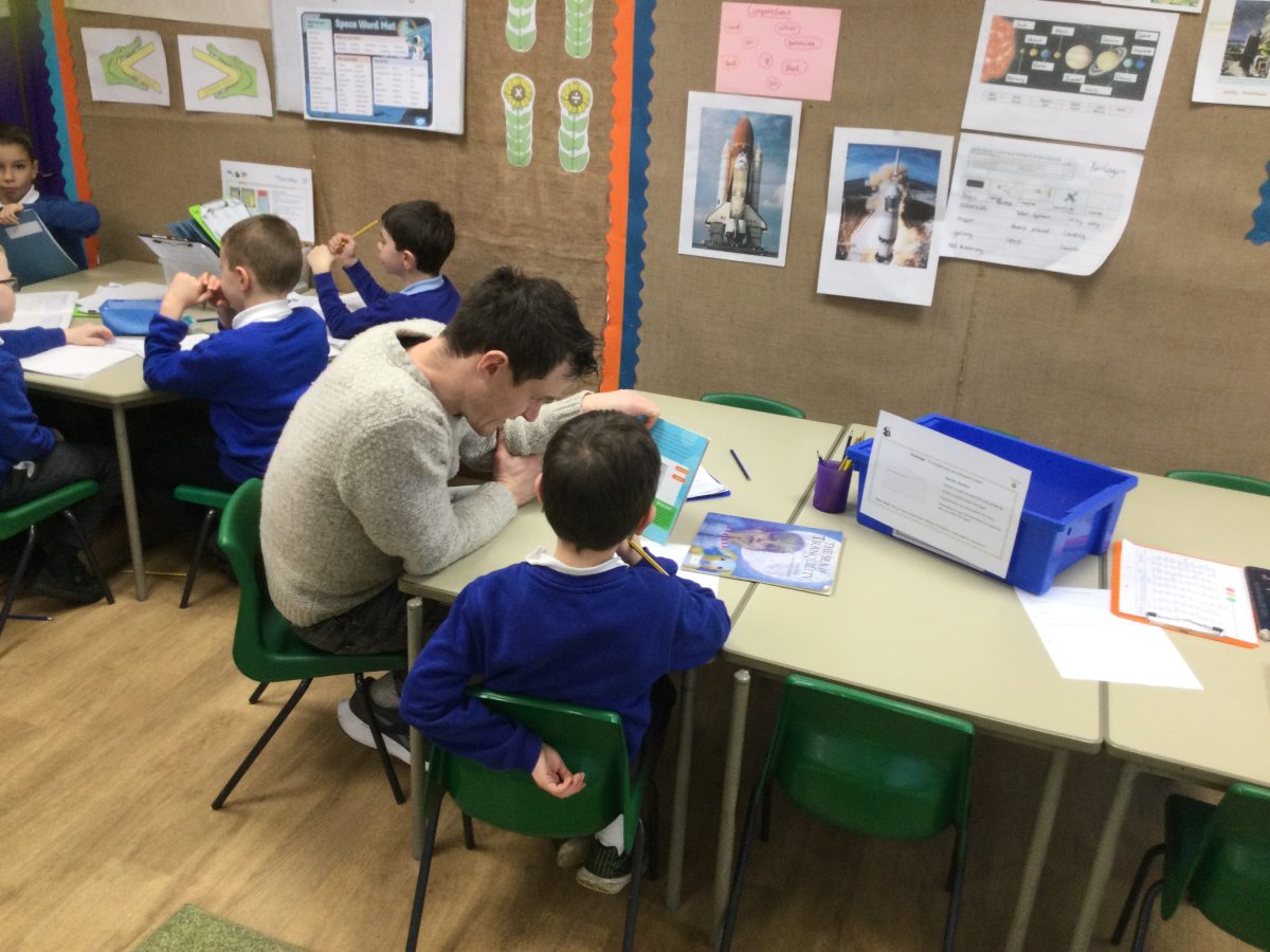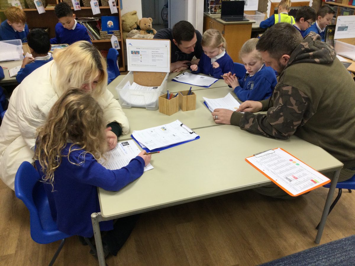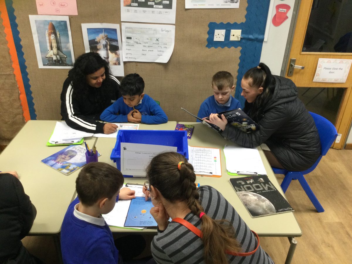 The children in Year 2 were excited to invite their grown-ups into school for the Space Reading Learning Together Session. The grown-ups learned about how reading skills are taught and developed in school. Then the grown-ups and children completed reading challenges together, all based on Space, across the Year 2 Learning Environment.
