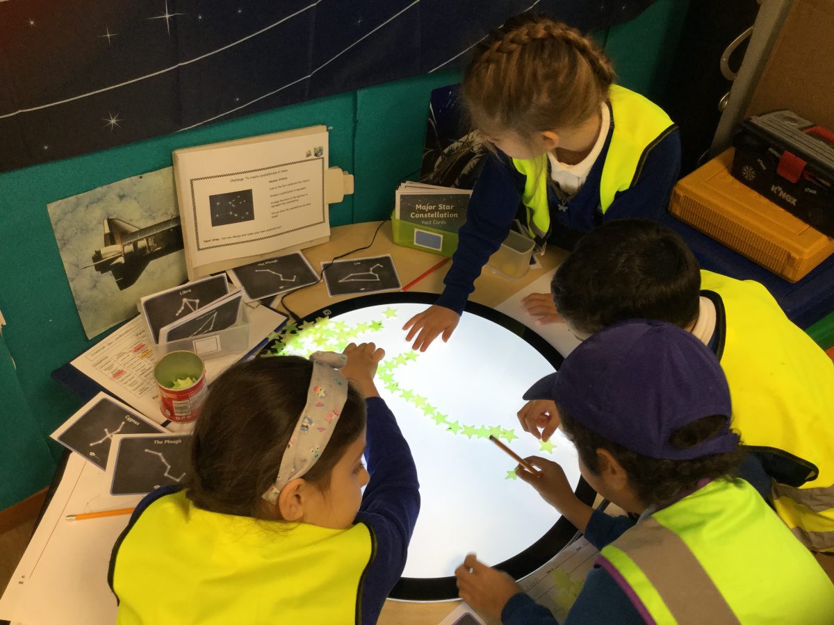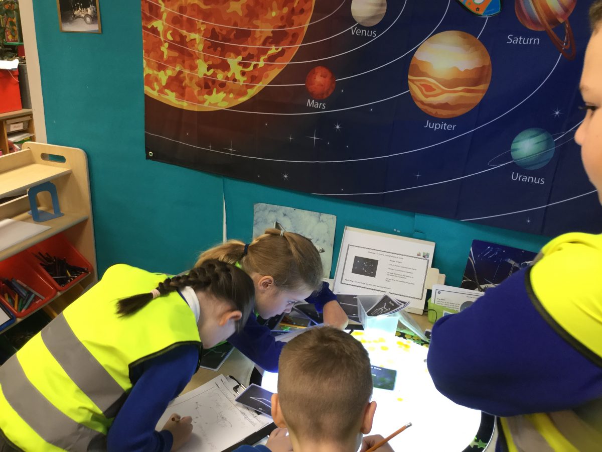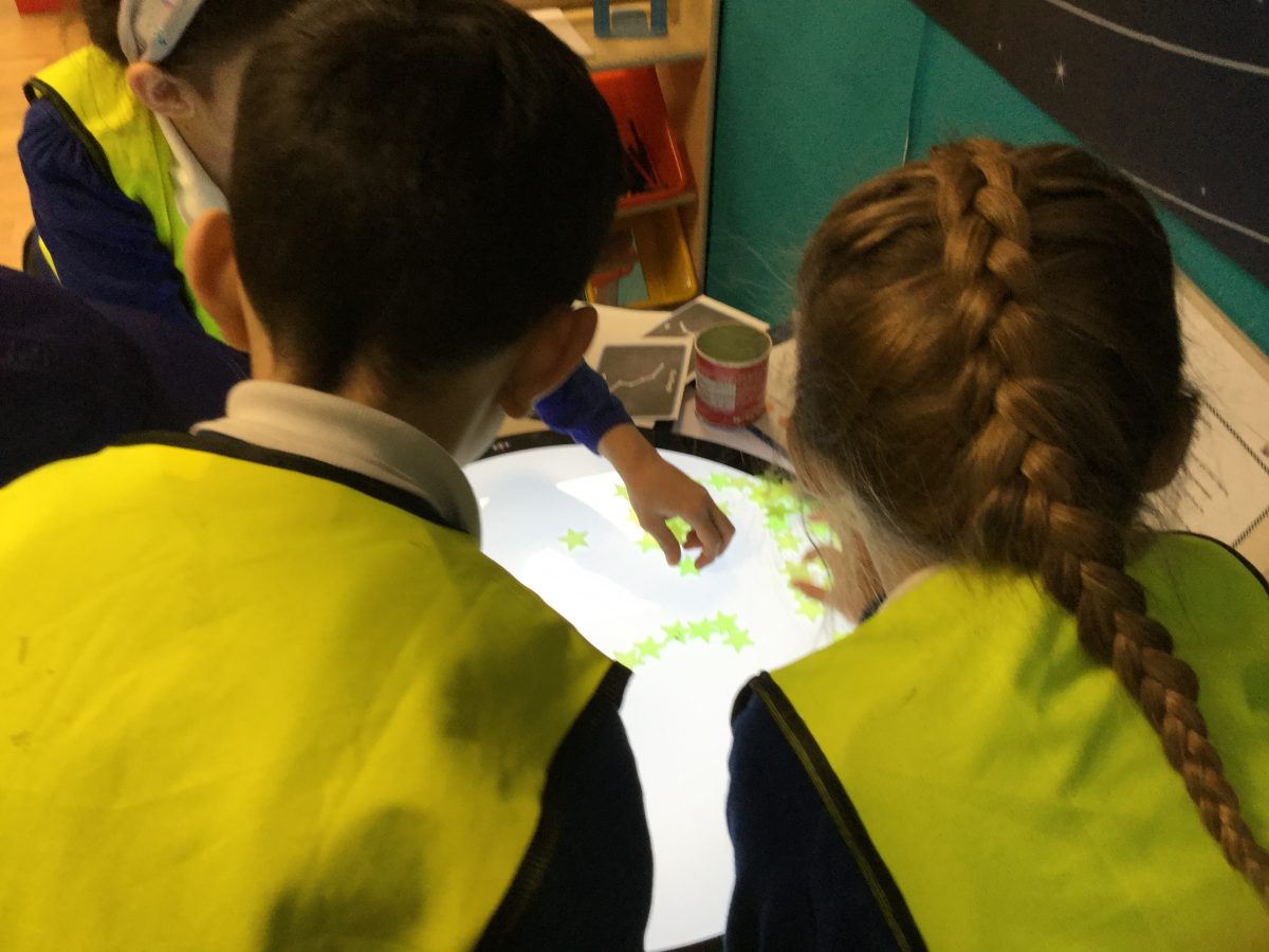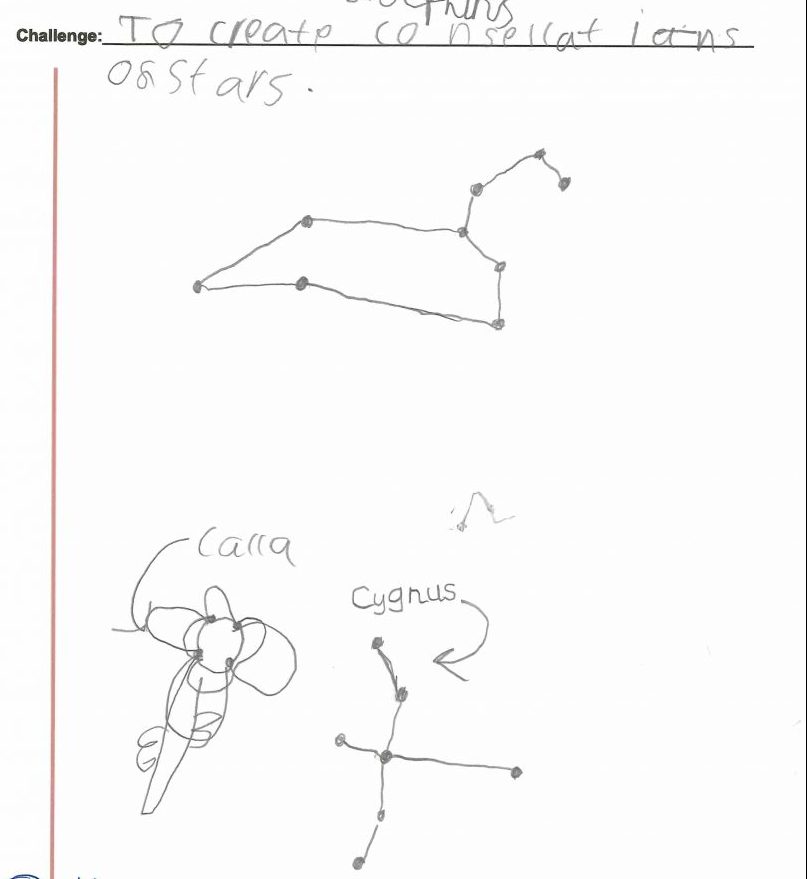 As part of our topic, Moon Zoom the children have been learning about star constellations. They explored the shape and name of each constellation using an app on an iPad. Then they looked at photos of the star constellations and used counters and stars to recreate them. Finally they developed their fine motor skills by carefully drawing the constellations. The children also created their own star constellations and named them!