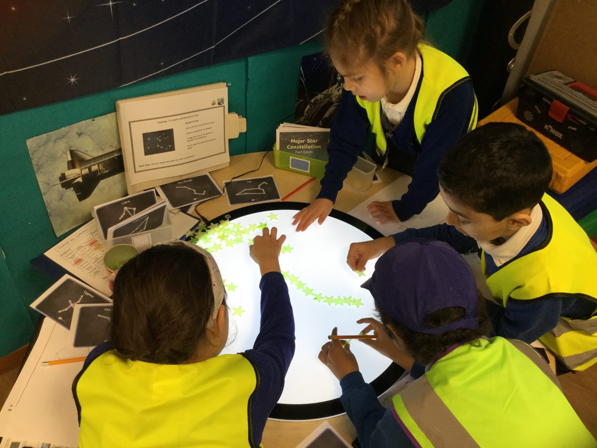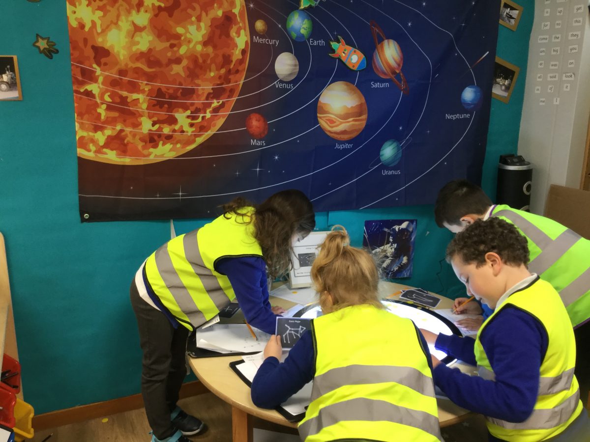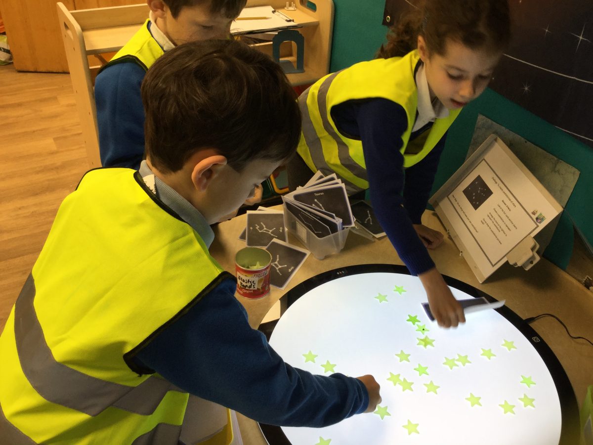 As part of our topic, Moon Zoom the children have been learning about star constellations. They explored the shape and name of each constellation using an app on an iPad. Then they looked at photos of the star constellations and used counters and stars to recreate them. Finally they developed their fine motor skills by carefully drawing the constellations. The children also created their own star constellations and named them!