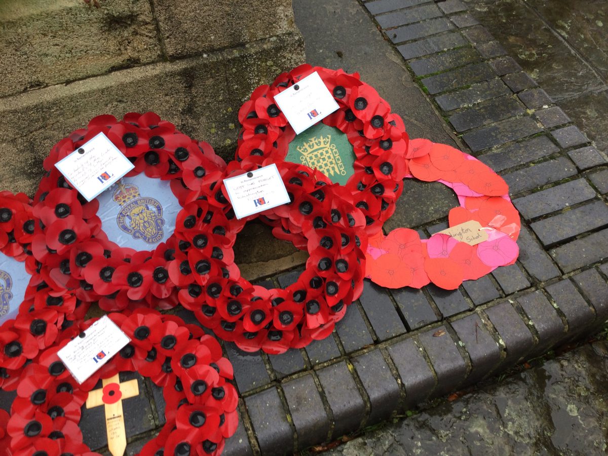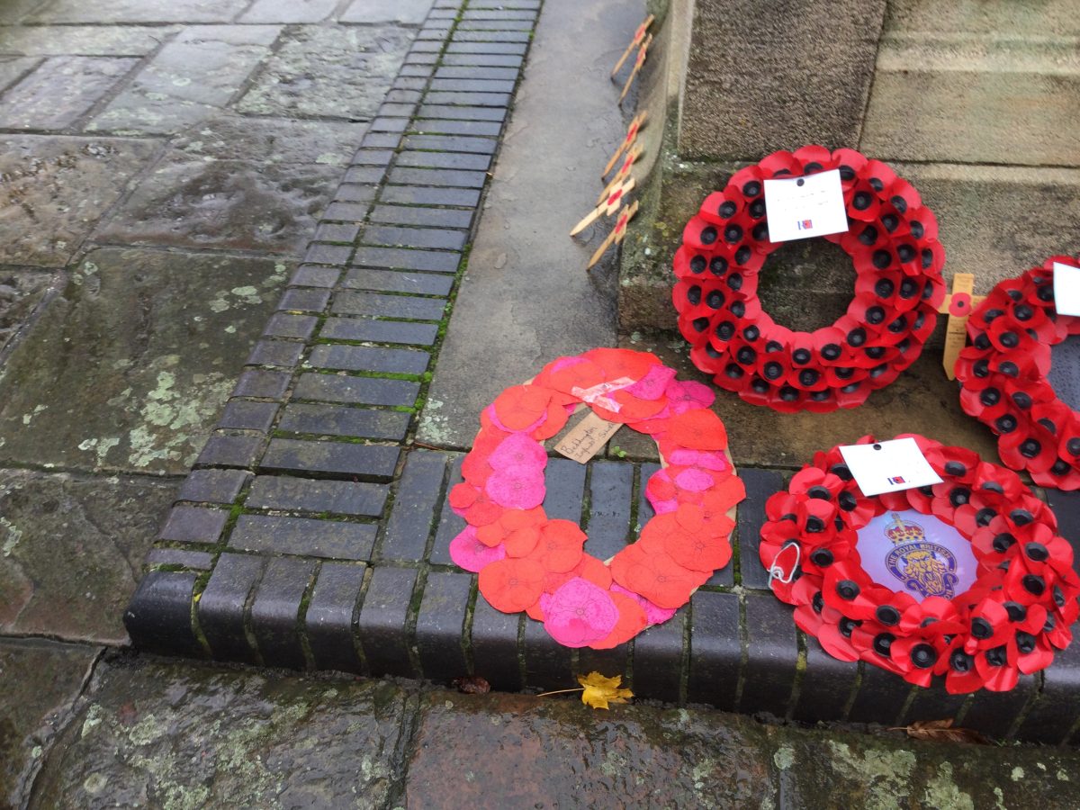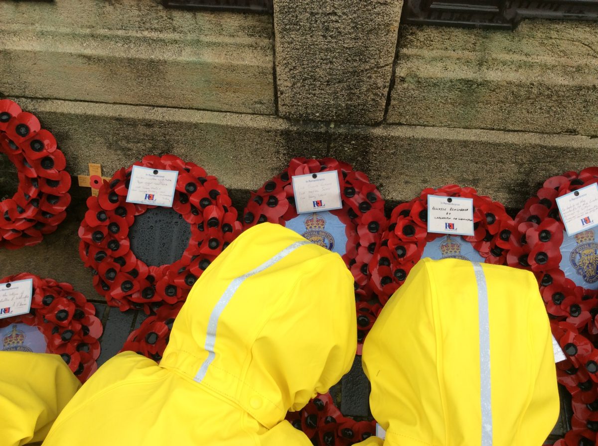 The children looked carefully at the symbols on the war memorial, the names of those who died in World War One and World War Two and who from the local community had laid wreathes. The children then laid wreaths that the children in Year 2 had made as part of their independent learning last week.